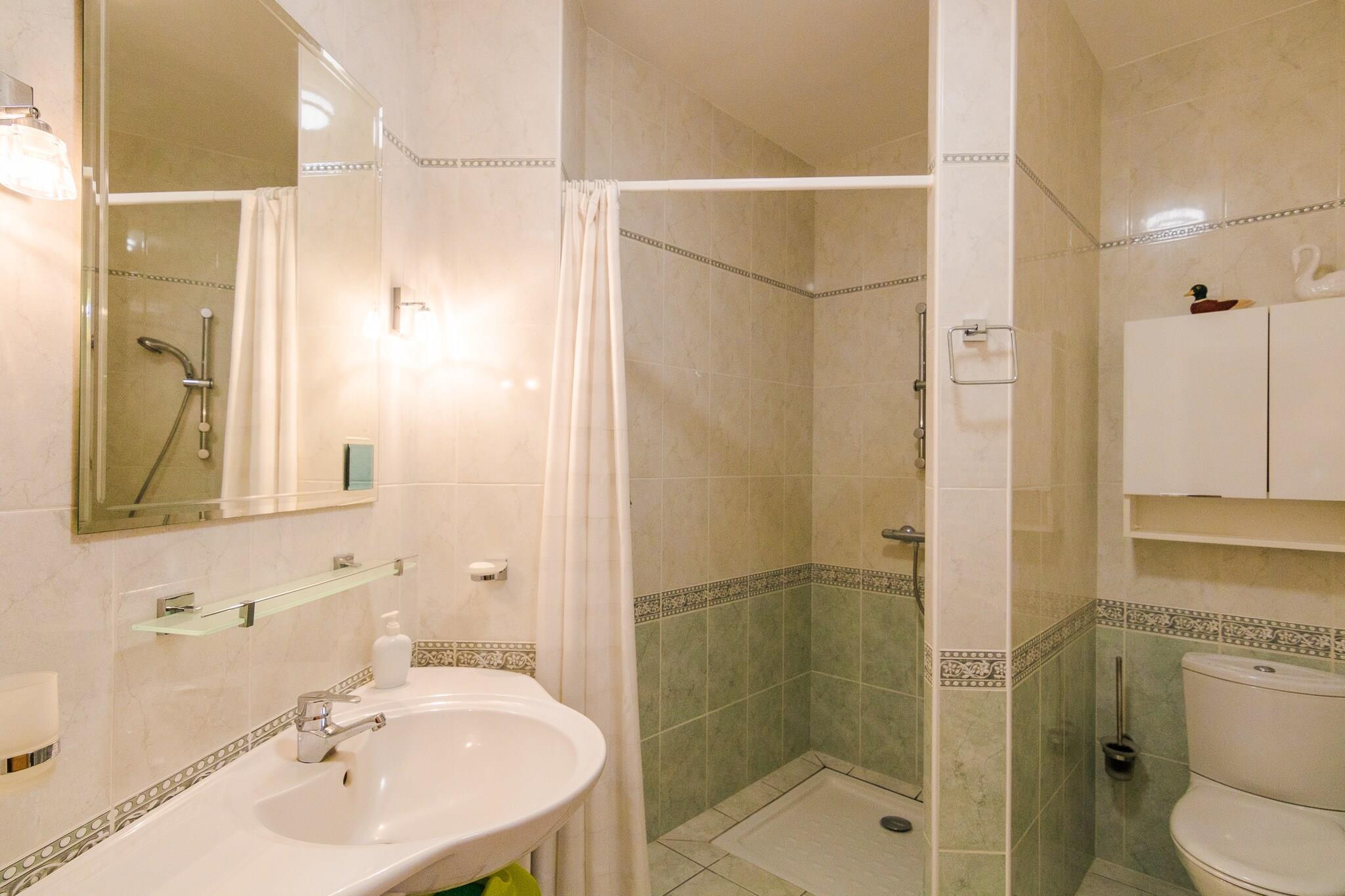 Parterre: (Wohnzimmer(TV(Flatscreen, Antenne), Sitzecke(6 Personen)), Wohnküche(Esstisch(8 Personen), Esstisch(4 Personen), Wasserkocher, Toaster, Kochherd(4 Kochplatten, Gas), Dunstabzugshaube, Kaffeemaschine(Filter, pads), Backofen, Mikrowelle, Spülmaschine, Kühl-/Gefrierkombination, Waschmaschine, Zitruspresse), Schlafzimmer(Einzelbett(Synthetikbettdecke, 110 x 180 cm), Doppelbett(Doppelsynthetikbettdecke, 140 x 190 cm)), Badezimmer(Dusche, Waschbecken, Toilette)) In der 1. Etage: (Schlafzimmer(Doppelbett(Doppelsynthetikbettdecke, 140 x 190 cm)), Schlafzimmer(Doppelbett(Doppelsynthetikbettdecke, 140 x 190 cm), Doppelbett(Doppelsynthetikbettdecke, 140 x 190 cm)), Badezimmer(Badewanne, Waschbecken), Toilette, Freizeitraum) Heizung(elektrisch), Terrasse(alleinige Nutzung, überdacht), Terrasse(alleinige Nutzung), Garten(Gemeinschaftliche Nutzung mit dem Eigentümer, 10 hm2), Gartenmöbel, Grill(Holzkohle), Liegestühle, Sonnenschirm, Pool(alleinige Nutzung, erwärmt, innen, 12 x 5 m.), Spielgeräte, Kinderbett, Hochstuhl, Bügelbrett, Bügeleisen, Föhn, Gesellschaftsspiele