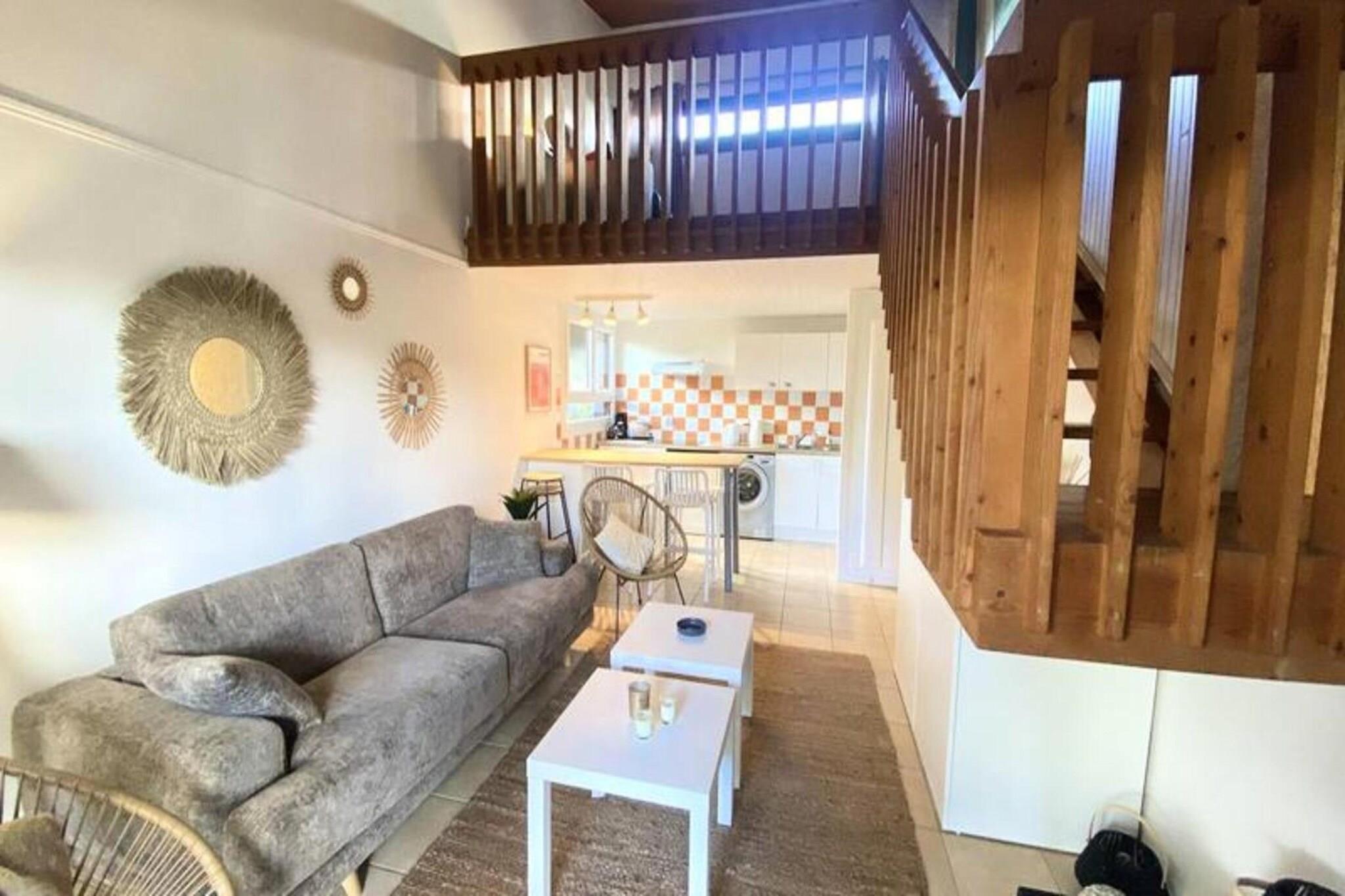 Dieses Maisonette-Apartment in Seignosse Le Penon bietet einen komfortablen Aufenthalt mit einem Balkon mit Blick auf die Grünfläche der Residenz. Es bietet Platz für bis zu sechs Gäste mit zwei 140-cm-Betten (eines in einem Schlafzimmer, eines im Zwischengeschoss) und einem 140-cm-Schlafsofa im Zwischengeschoss. Richtlinien für Haustiere sind nicht angegeben. Öffentliche Parkplätze stehen vor der Residenz zur Verfügung. Der Zugang zum Tennisplatz der Residenz ist im Preis inbegriffen. Die Unterkunft ist für Personen mit eingeschränkter Mobilität nicht zugänglich. Die Beliebtheit der Wohnung beruht auf ihrer großzügigen Raumaufteilung und der Nähe zum Strand, zu Geschäften und einer großen Grünfläche mit Pinien. Dieser Ort ist ideal für Strandurlaube und Outdoor-Aktivitäten. Die Wohnung verfügt über einen Eingang, ein Wohnzimmer/Lounge/Küche (ca. 22 m²), das auf eine überdachte Terrasse führt, ein Schlafzimmer (ca. 9,6 m²), das ebenfalls auf die Terrasse führt, ein Duschbad, ein WC und ein großes Zwischengeschoss (ca. 10,5 qm) mit Schlafbereich und Schlafsofa. Die Einbauküche verfügt über einen Kühlschrank mit Gefrierfach, eine Waschmaschine, einen Geschirrspüler, ein Cerankochfeld und einen Backofen. Bettwäsche ist nicht im Preis inbegriffen, kann aber gemietet werden. Heizung ist vorhanden.
