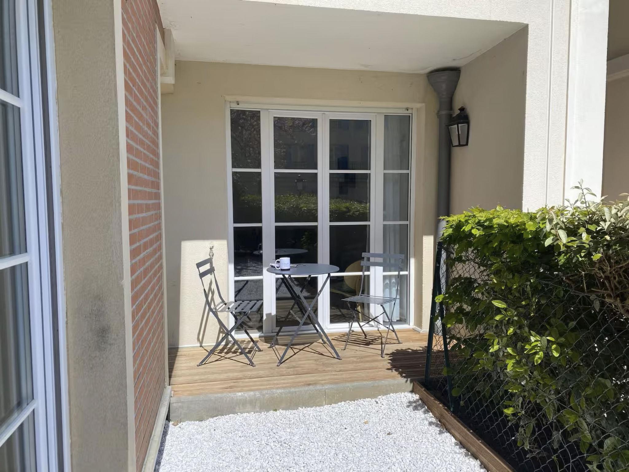 Da sich die Wohnung im Erdgeschoss befindet, ist es einfach zu kommen und zu gehen. Obwohl die Beschreibung der Außenbereiche nicht zentral ist, wird das Genießen der friedlichen Umgebung von Serris nicht an Charme und Bequemlichkeit für diejenigen fehlen, die sich nach einem Tag voller Erkundungen oder Einkäufe entspannen möchten.