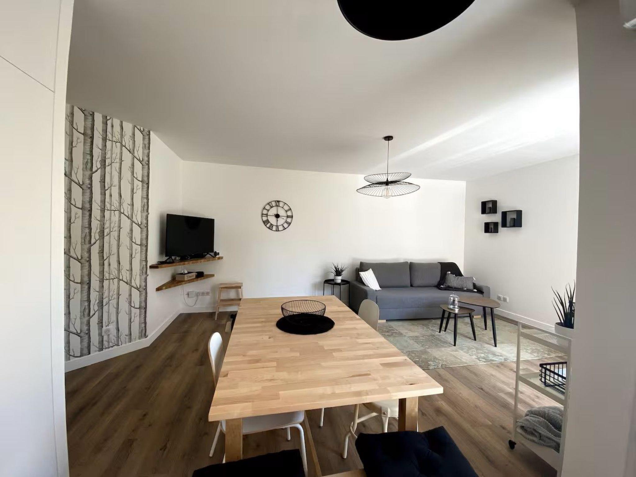 Das Innere der Wohnung ist so ausgestattet, dass alle Ihre Bedürfnisse während Ihres Aufenthalts erfüllt werden. Sie finden zwei komfortable Schlafzimmer und zwei voll ausgestattete Badezimmer, eines mit Dusche und das andere mit Badewanne, die allen Bewohnern Privatsphäre und Bequemlichkeit bieten. Die Küche ist gut ausgestattet mit einem Induktionskochfeld, einer Kaffeepadmaschine, einem Geschirrspüler und einem Wasserkocher - perfekt, um Mahlzeiten wie zu Hause zuzubereiten.
