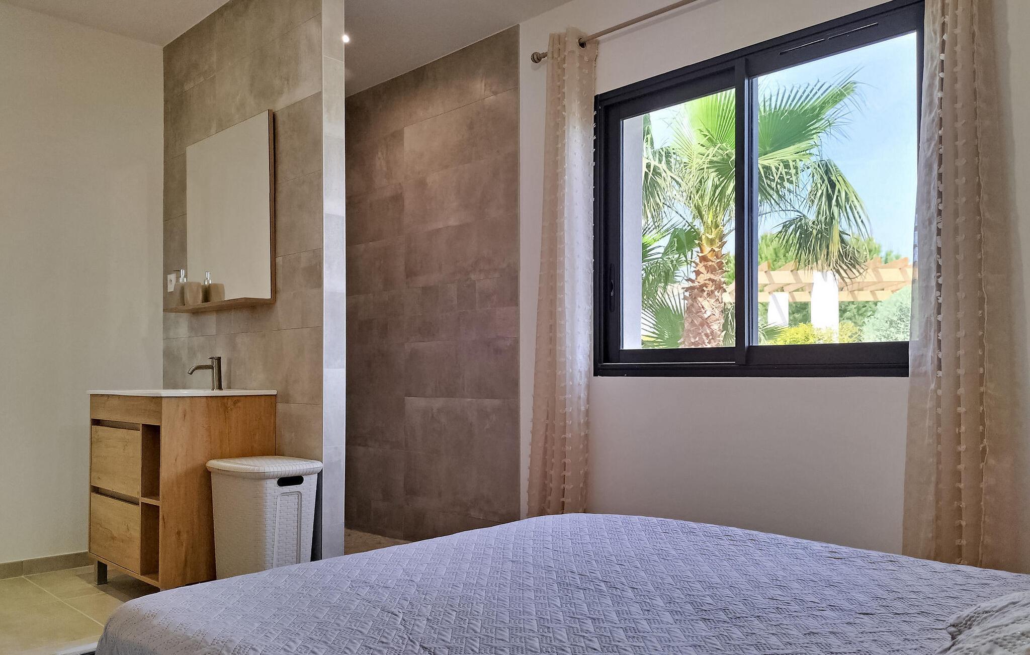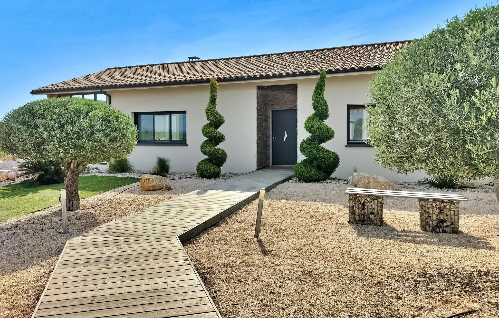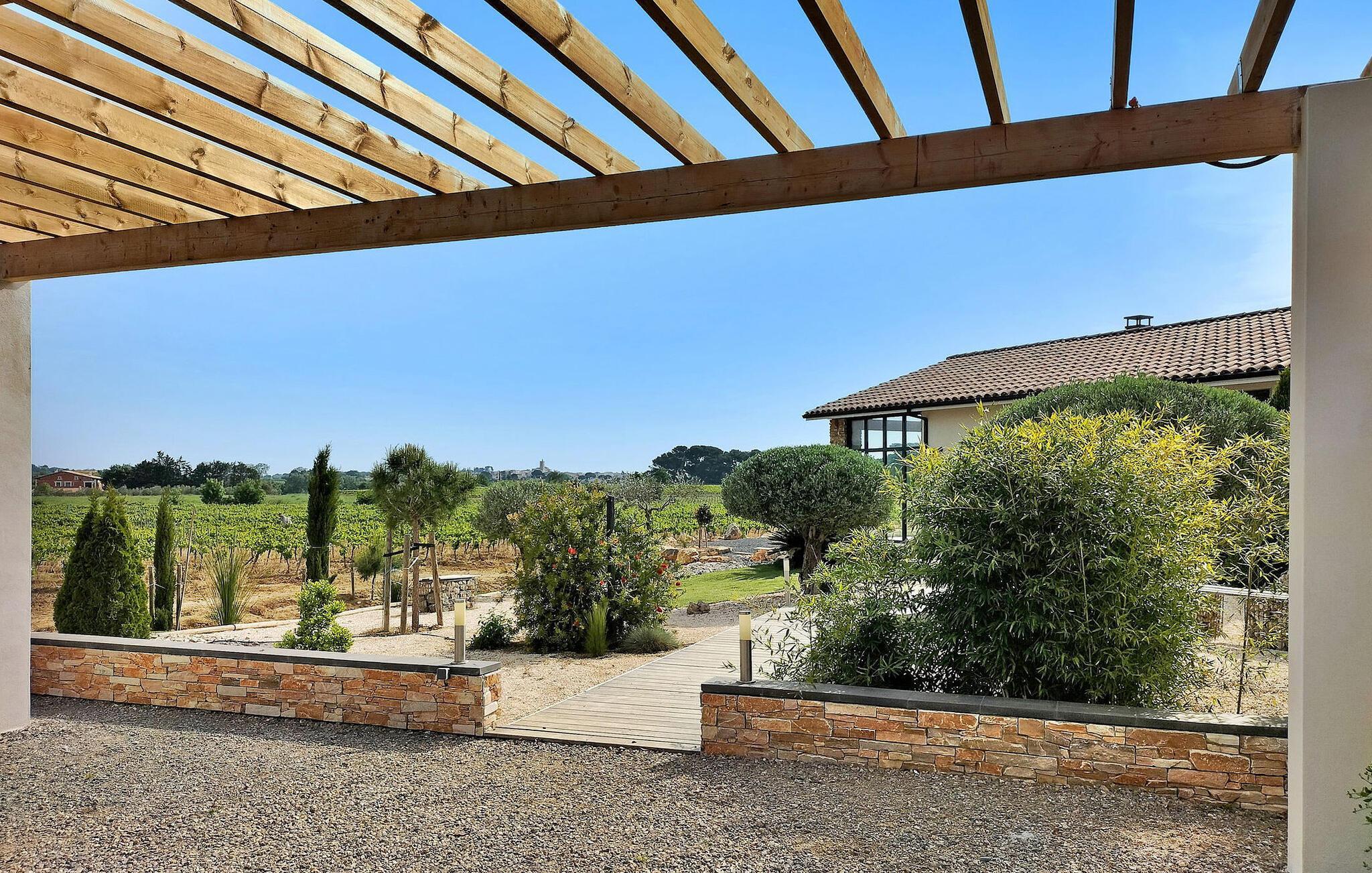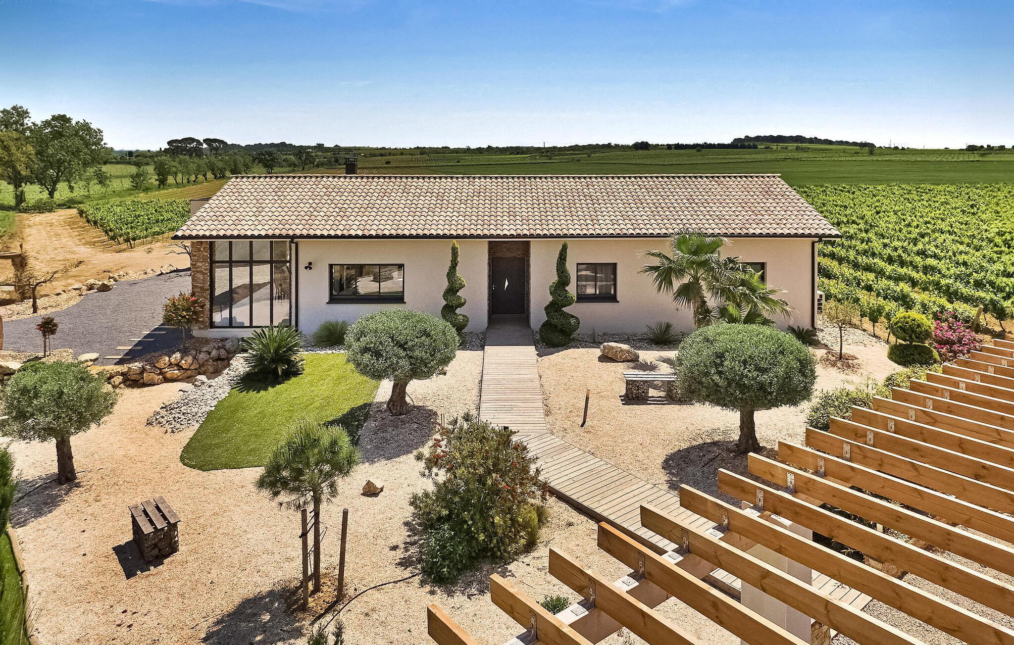 Erleben Sie eine moderne Ferienvilla auf einem Weingut in der Nähe des Dorfes Servian mit bezauberndem Blick auf die Weinberge. Diese Villa verfügt über einen geräumigen Wohnbereich, der durch ein Erkerfenster mit Blick auf den einladenden Pool ergänzt wird. Entdecken Sie drei Schlafzimmer in der Villa, darunter eine luxuriöse Master-Suite mit ebenerdiger Dusche, freistehender Badewanne und begehbarem Kleiderschrank. Die umkehrbare Klimaanlage sorgt für Komfort in allen Räumen. Ein unabhängiges Nebengebäude, das über den Garten zugänglich ist, verfügt über ein zusätzliches Schlafzimmer mit eigenem Bad. Draußen genießen Sie einen einladenden, beheizten Infinity-Pool, der mit einer Alarmanlage gesichert ist, einen entspannenden Whirlpool und eine möblierte Terrasse mit Blick auf die Weinberge des Anwesens. Bitte beachten Sie: Ein kleiner Bach grenzt an den nördlichen Rand des Grundstücks und erfordert bei kleinen Kindern Vorsicht. Diese Villa bietet einen ruhigen Rückzugsort inmitten malerischer Weinberge und verspricht Entspannung, Komfort und atemberaubende Ausblicke für einen unvergesslichen Aufenthalt im Herzen des Weinlandes. Etwa 3 Autominuten entfernt finden Sie das Dorf Servian mit allen Annehmlichkeiten (Apotheke, Bäckerei, Bar, Restaurant, Lebensmittelgeschäft, Supermarkt, Hallenbad, Stadion, Tennisplatz...). Sie sind etwa 25 Autominuten von den Stränden von Vias, Valras, Marseillan, Cap d'Agde und Agde entfernt.