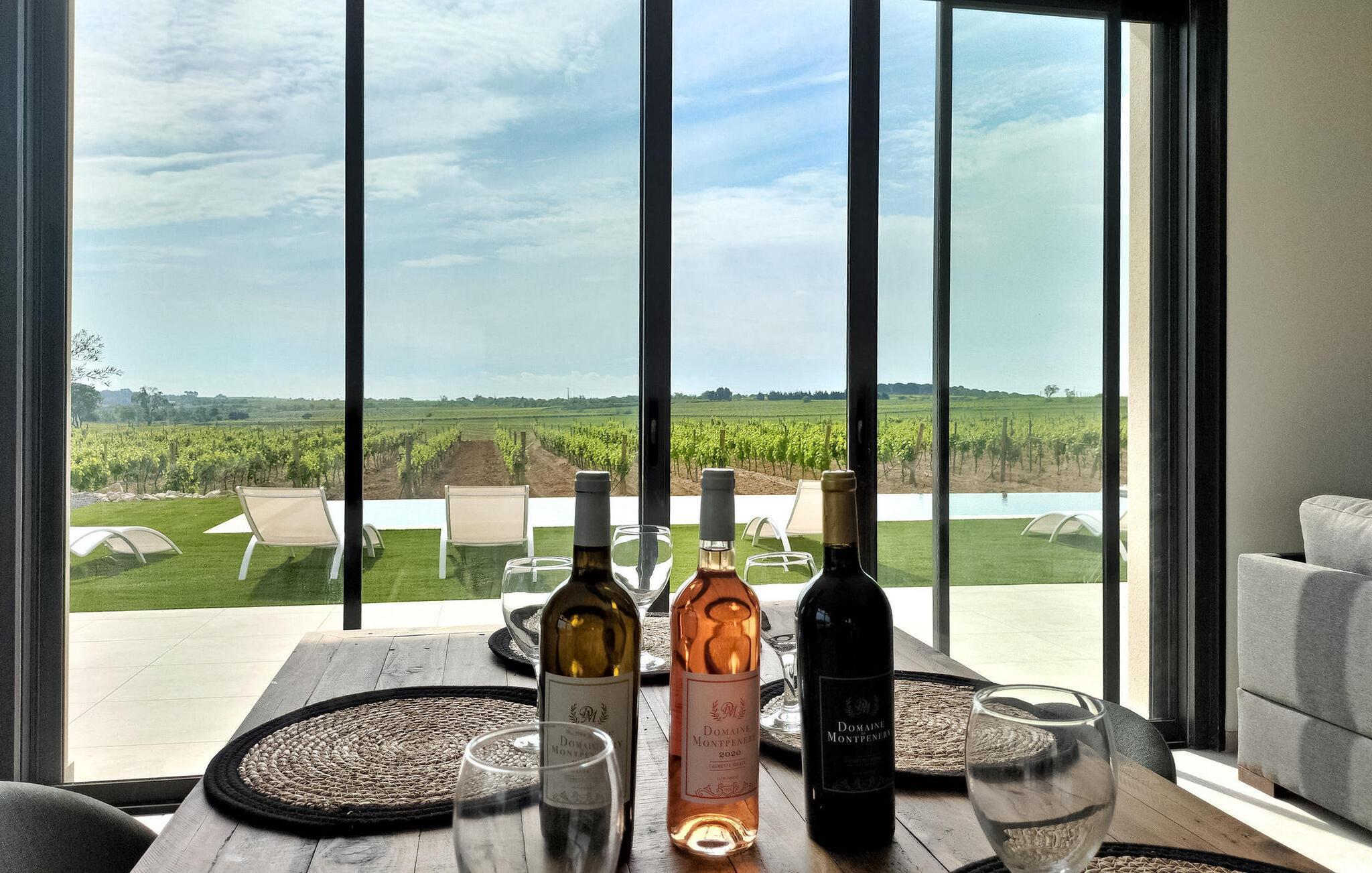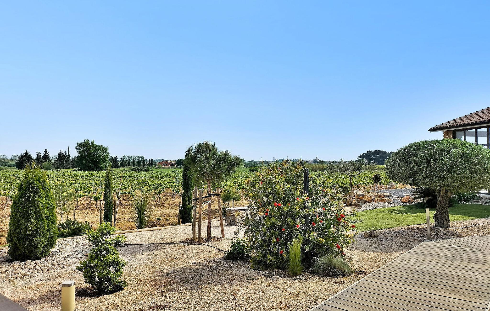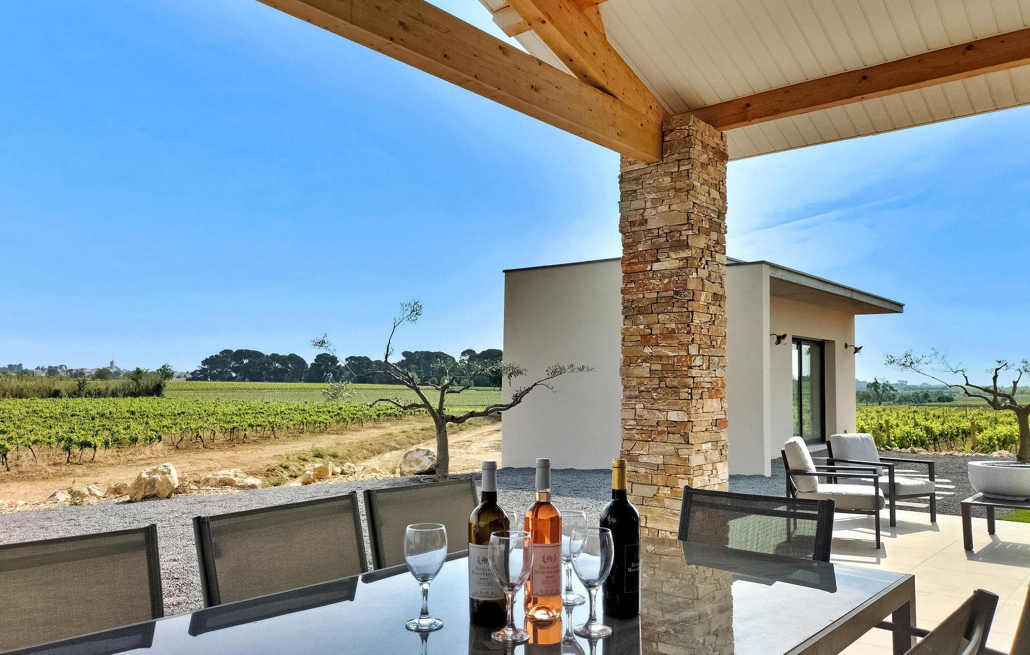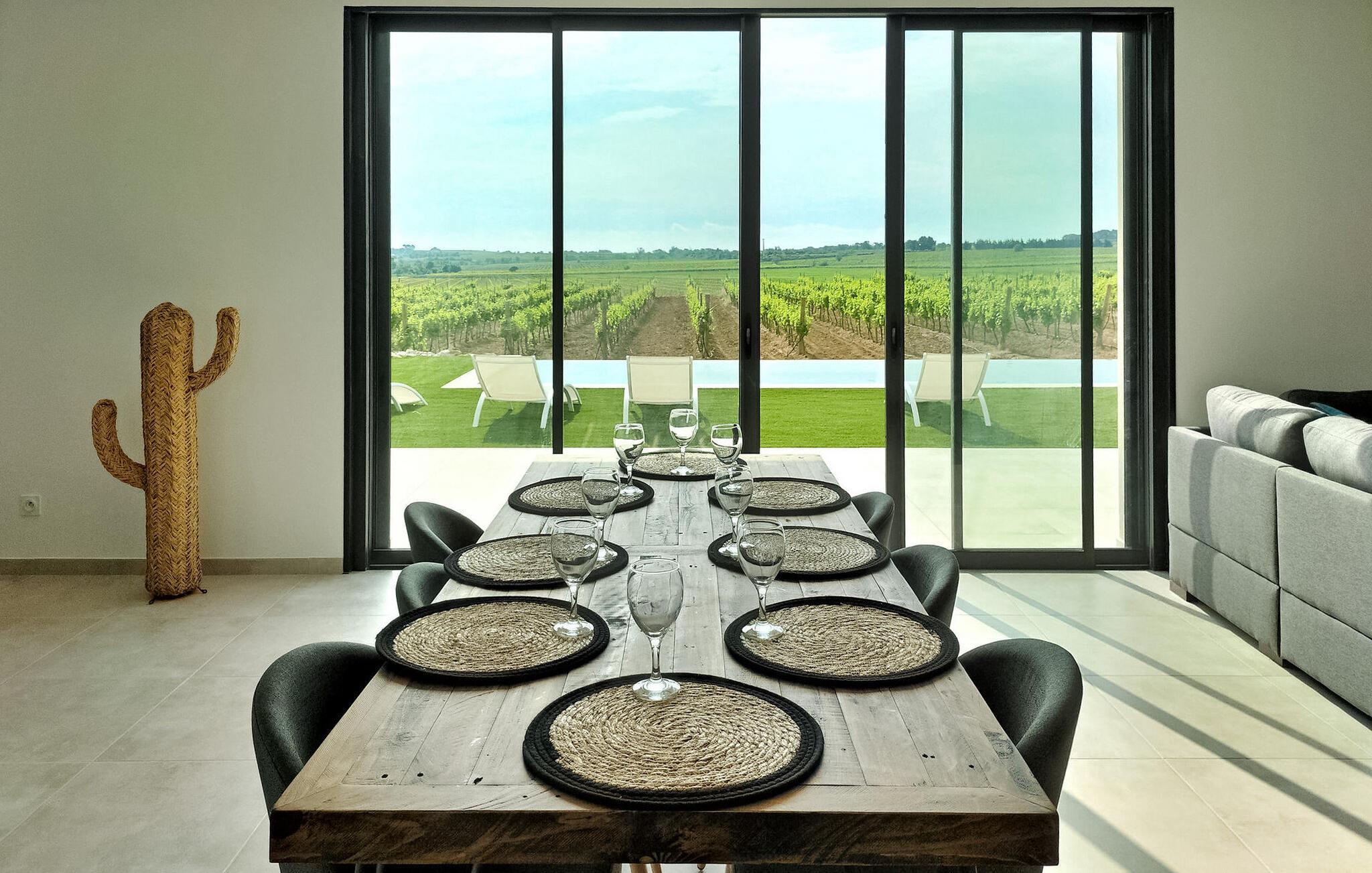 Erleben Sie eine moderne Ferienvilla auf einem Weingut in der Nähe des Dorfes Servian mit bezauberndem Blick auf die Weinberge. Diese Villa verfügt über einen geräumigen Wohnbereich, der durch ein Erkerfenster mit Blick auf den einladenden Pool ergänzt wird. Entdecken Sie drei Schlafzimmer in der Villa, darunter eine luxuriöse Master-Suite mit ebenerdiger Dusche, freistehender Badewanne und begehbarem Kleiderschrank. Die umkehrbare Klimaanlage sorgt für Komfort in allen Räumen. Ein unabhängiges Nebengebäude, das über den Garten zugänglich ist, verfügt über ein zusätzliches Schlafzimmer mit eigenem Bad. Draußen genießen Sie einen einladenden, beheizten Infinity-Pool, der mit einer Alarmanlage gesichert ist, einen entspannenden Whirlpool und eine möblierte Terrasse mit Blick auf die Weinberge des Anwesens. Bitte beachten Sie: Ein kleiner Bach grenzt an den nördlichen Rand des Grundstücks und erfordert bei kleinen Kindern Vorsicht. Diese Villa bietet einen ruhigen Rückzugsort inmitten malerischer Weinberge und verspricht Entspannung, Komfort und atemberaubende Ausblicke für einen unvergesslichen Aufenthalt im Herzen des Weinlandes. Etwa 3 Autominuten entfernt finden Sie das Dorf Servian mit allen Annehmlichkeiten (Apotheke, Bäckerei, Bar, Restaurant, Lebensmittelgeschäft, Supermarkt, Hallenbad, Stadion, Tennisplatz...). Sie sind etwa 25 Autominuten von den Stränden von Vias, Valras, Marseillan, Cap d'Agde und Agde entfernt.