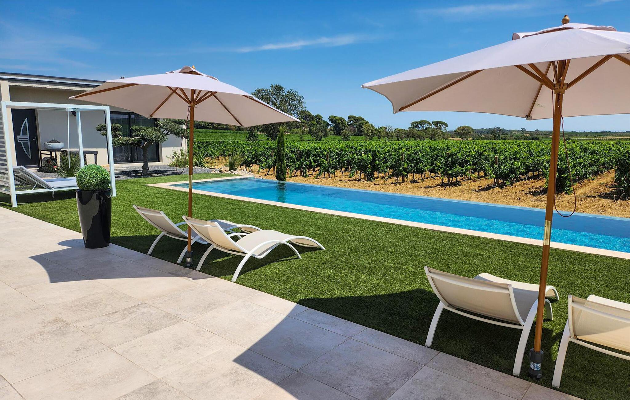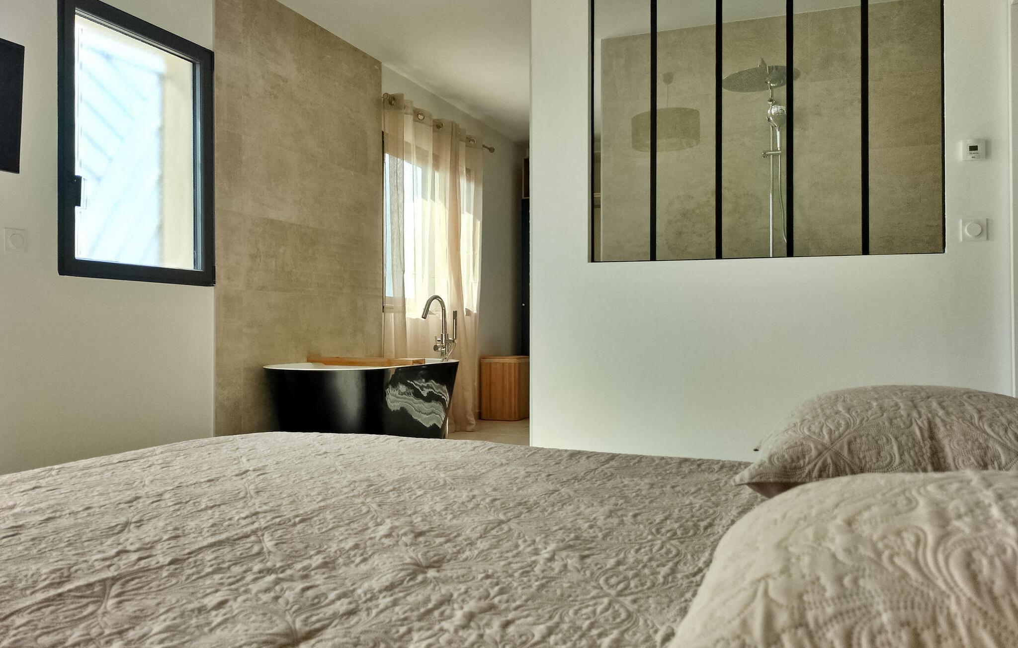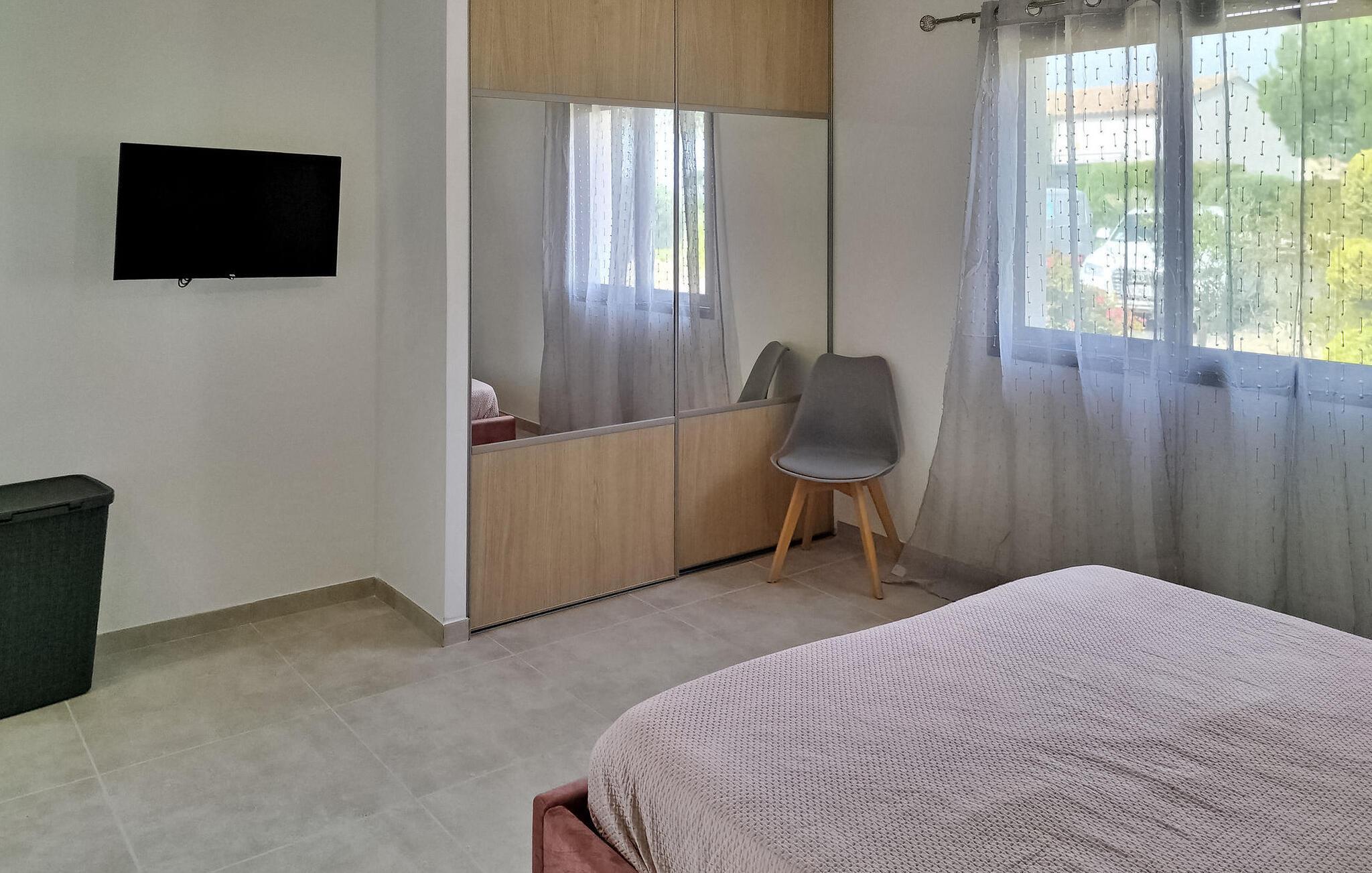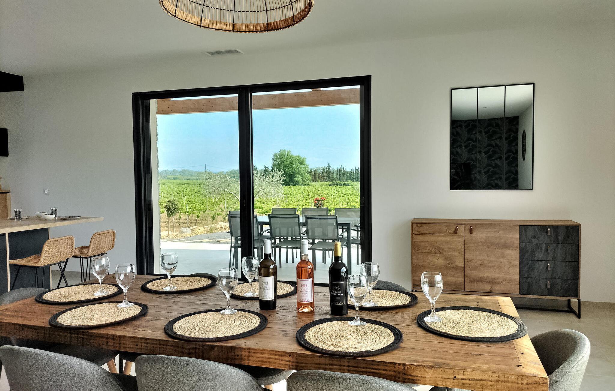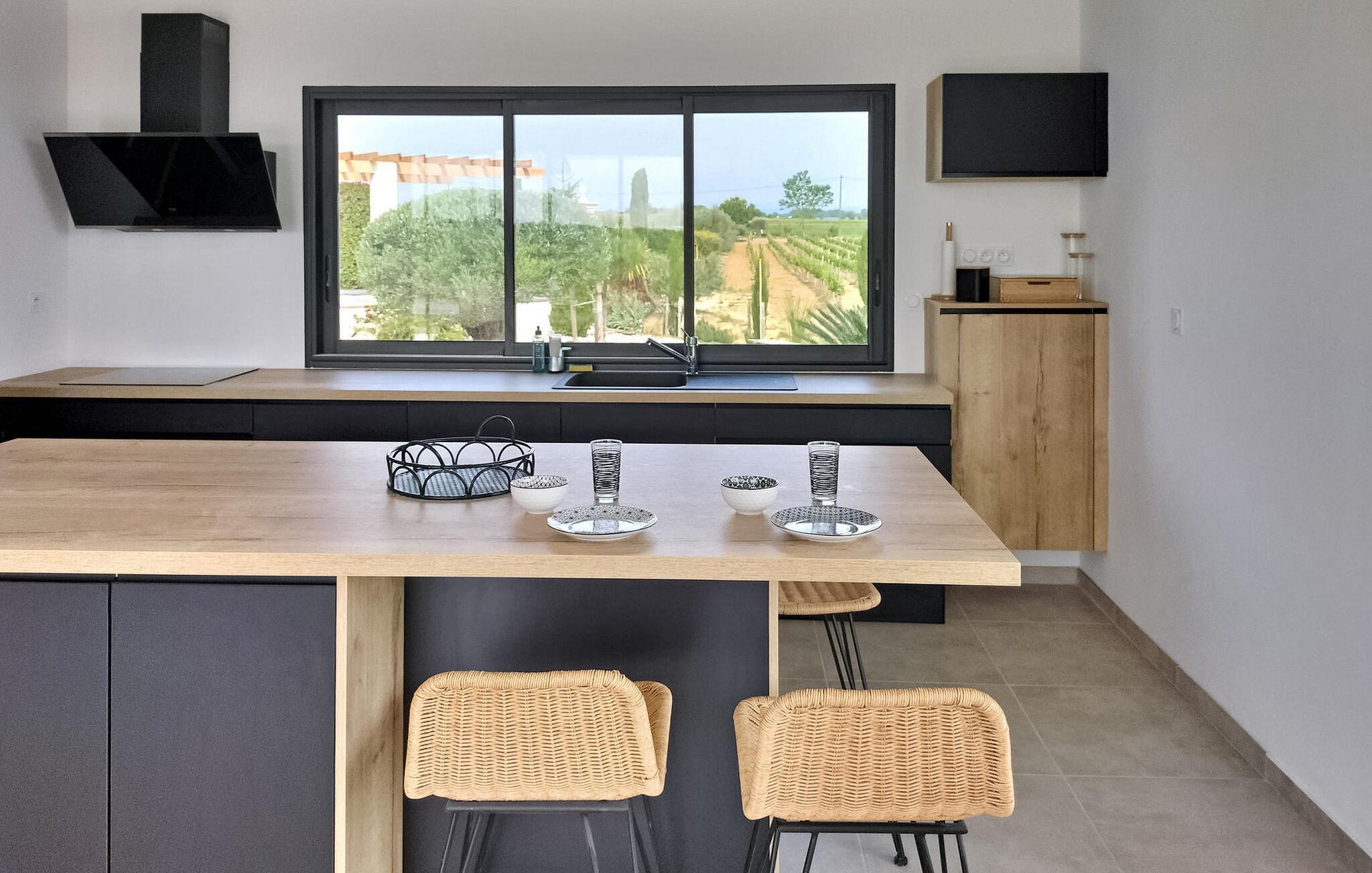 Erleben Sie eine moderne Ferienvilla auf einem Weingut in der Nähe des Dorfes Servian mit bezauberndem Blick auf die Weinberge. Diese Villa verfügt über einen geräumigen Wohnbereich, der durch ein Erkerfenster mit Blick auf den einladenden Pool ergänzt wird. Entdecken Sie drei Schlafzimmer in der Villa, darunter eine luxuriöse Master-Suite mit ebenerdiger Dusche, freistehender Badewanne und begehbarem Kleiderschrank. Die umkehrbare Klimaanlage sorgt für Komfort in allen Räumen. Ein unabhängiges Nebengebäude, das über den Garten zugänglich ist, verfügt über ein zusätzliches Schlafzimmer mit eigenem Bad. Draußen genießen Sie einen einladenden, beheizten Infinity-Pool, der mit einer Alarmanlage gesichert ist, einen entspannenden Whirlpool und eine möblierte Terrasse mit Blick auf die Weinberge des Anwesens. Bitte beachten Sie: Ein kleiner Bach grenzt an den nördlichen Rand des Grundstücks und erfordert bei kleinen Kindern Vorsicht. Diese Villa bietet einen ruhigen Rückzugsort inmitten malerischer Weinberge und verspricht Entspannung, Komfort und atemberaubende Ausblicke für einen unvergesslichen Aufenthalt im Herzen des Weinlandes. Etwa 3 Autominuten entfernt finden Sie das Dorf Servian mit allen Annehmlichkeiten (Apotheke, Bäckerei, Bar, Restaurant, Lebensmittelgeschäft, Supermarkt, Hallenbad, Stadion, Tennisplatz...). Sie sind etwa 25 Autominuten von den Stränden von Vias, Valras, Marseillan, Cap d'Agde und Agde entfernt.