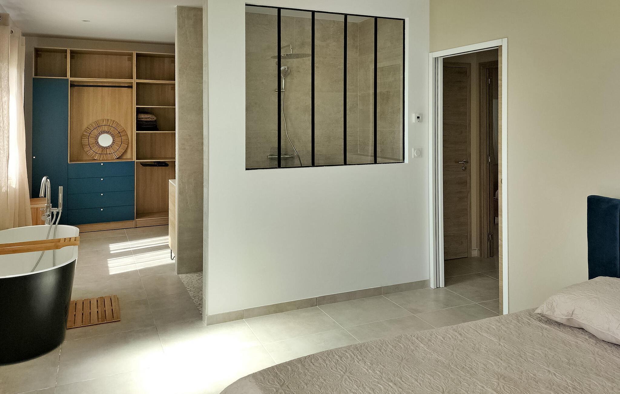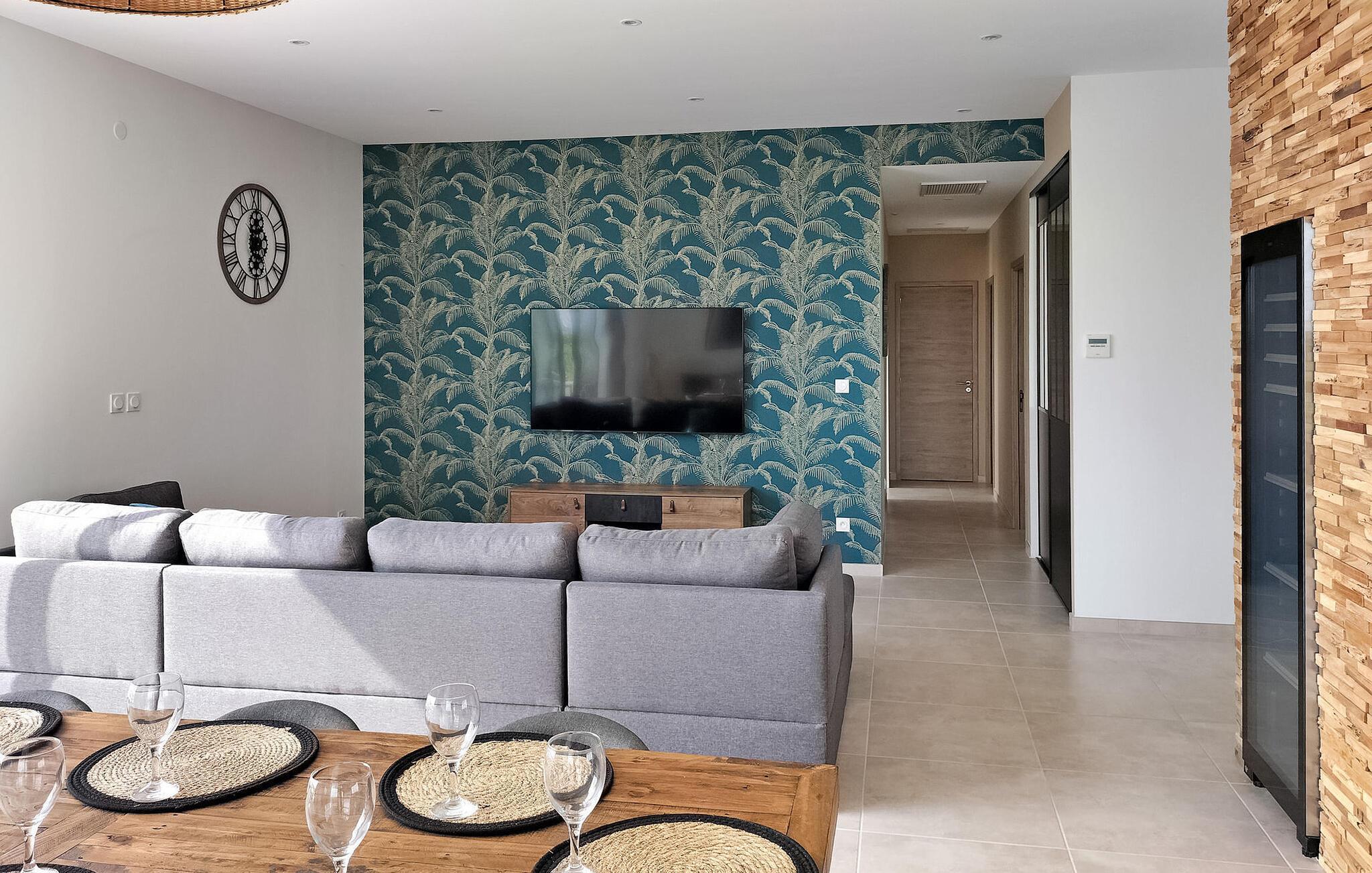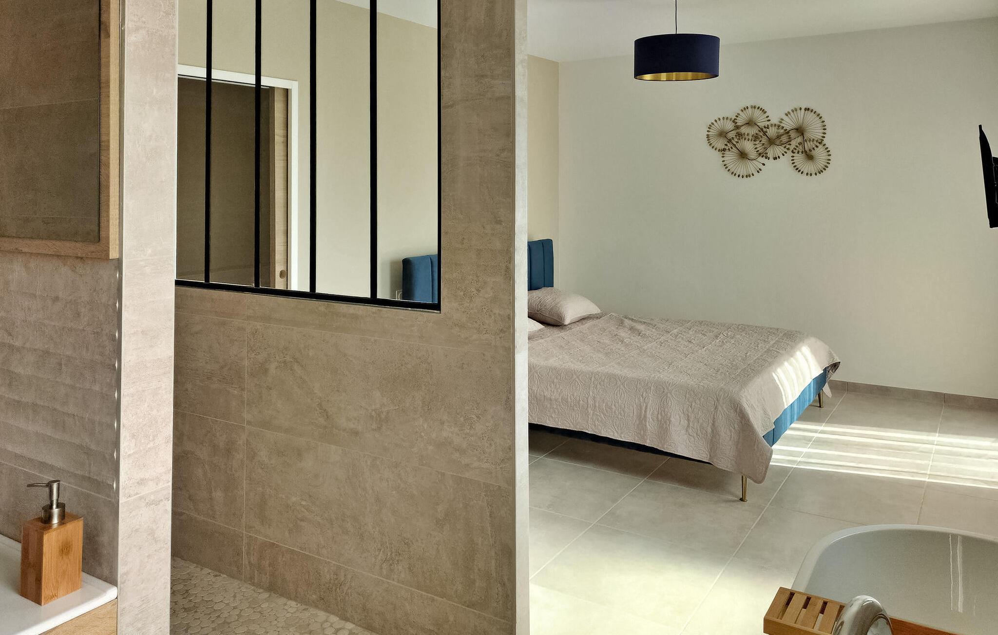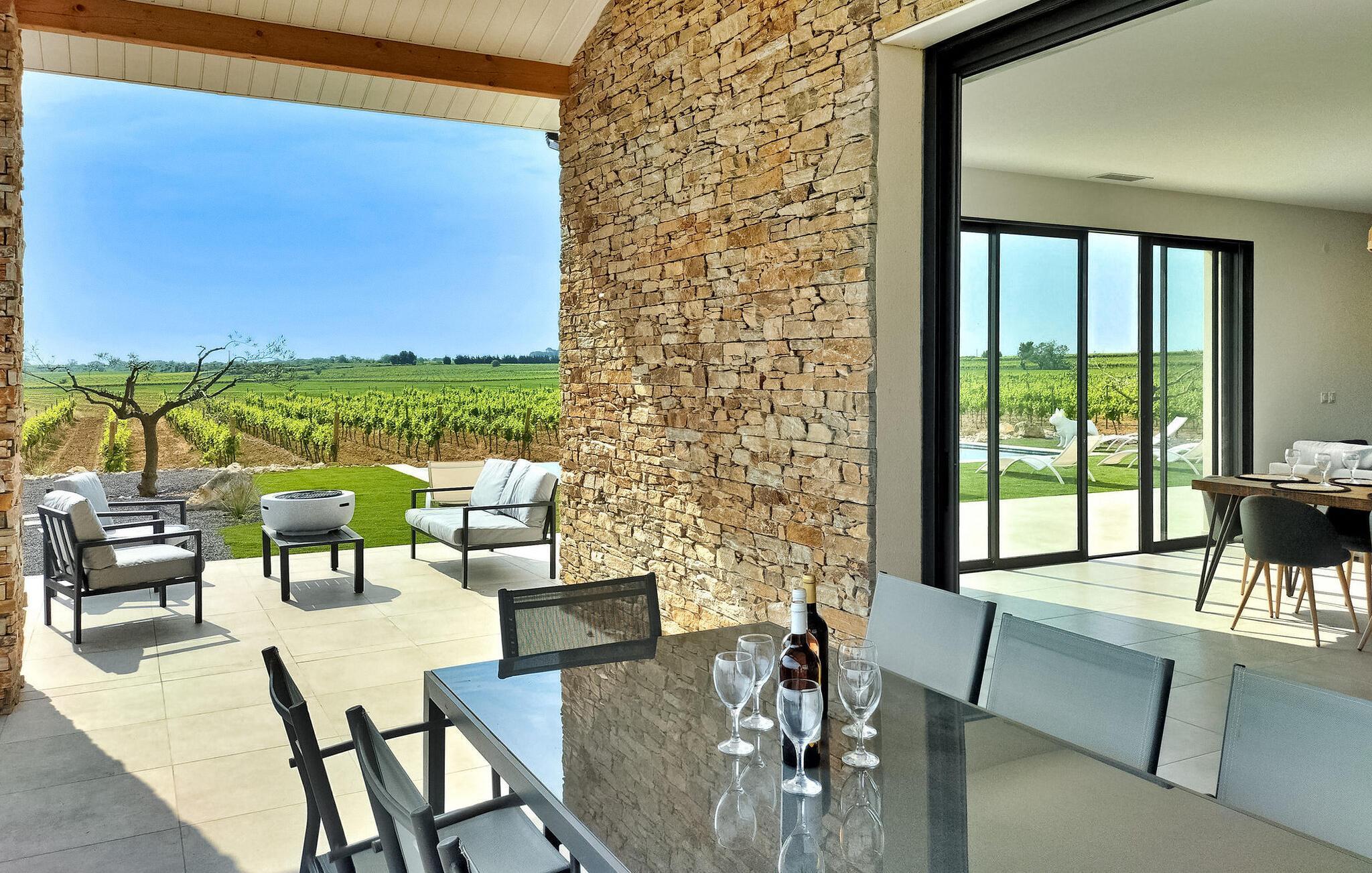 Erleben Sie eine moderne Ferienvilla auf einem Weingut in der Nähe des Dorfes Servian mit bezauberndem Blick auf die Weinberge. Diese Villa verfügt über einen geräumigen Wohnbereich, der durch ein Erkerfenster mit Blick auf den einladenden Pool ergänzt wird. Entdecken Sie drei Schlafzimmer in der Villa, darunter eine luxuriöse Master-Suite mit ebenerdiger Dusche, freistehender Badewanne und begehbarem Kleiderschrank. Die umkehrbare Klimaanlage sorgt für Komfort in allen Räumen. Ein unabhängiges Nebengebäude, das über den Garten zugänglich ist, verfügt über ein zusätzliches Schlafzimmer mit eigenem Bad. Draußen genießen Sie einen einladenden, beheizten Infinity-Pool, der mit einer Alarmanlage gesichert ist, einen entspannenden Whirlpool und eine möblierte Terrasse mit Blick auf die Weinberge des Anwesens. Bitte beachten Sie: Ein kleiner Bach grenzt an den nördlichen Rand des Grundstücks und erfordert bei kleinen Kindern Vorsicht. Diese Villa bietet einen ruhigen Rückzugsort inmitten malerischer Weinberge und verspricht Entspannung, Komfort und atemberaubende Ausblicke für einen unvergesslichen Aufenthalt im Herzen des Weinlandes. Etwa 3 Autominuten entfernt finden Sie das Dorf Servian mit allen Annehmlichkeiten (Apotheke, Bäckerei, Bar, Restaurant, Lebensmittelgeschäft, Supermarkt, Hallenbad, Stadion, Tennisplatz...). Sie sind etwa 25 Autominuten von den Stränden von Vias, Valras, Marseillan, Cap d'Agde und Agde entfernt.