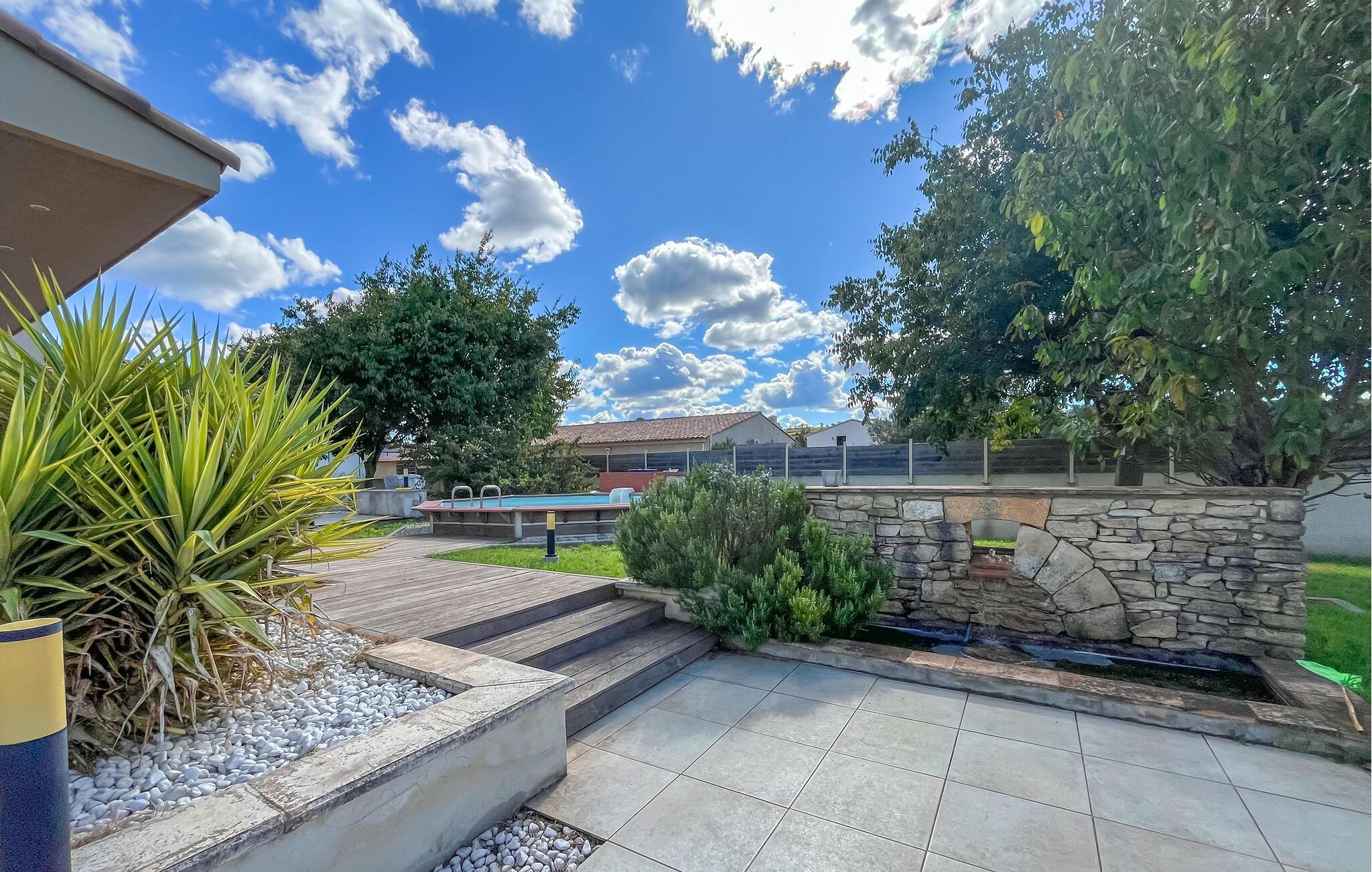 Genießen Sie sonnige Stunden auf der Terrasse oder ein erfrischendes Bad im Pool, während die Zypressen leise im Wind rauschen. Im gepflegten Garten finden Sie sowohl sonnige als auch schattige Plätze – ideal zum Lesen, Entspannen oder für ein Kaffeetrinken im Freien. Wenn abends die Sonne untergeht, taucht das warme Licht Haus und Garten in eine besonders stimmungsvolle Atmosphäre.