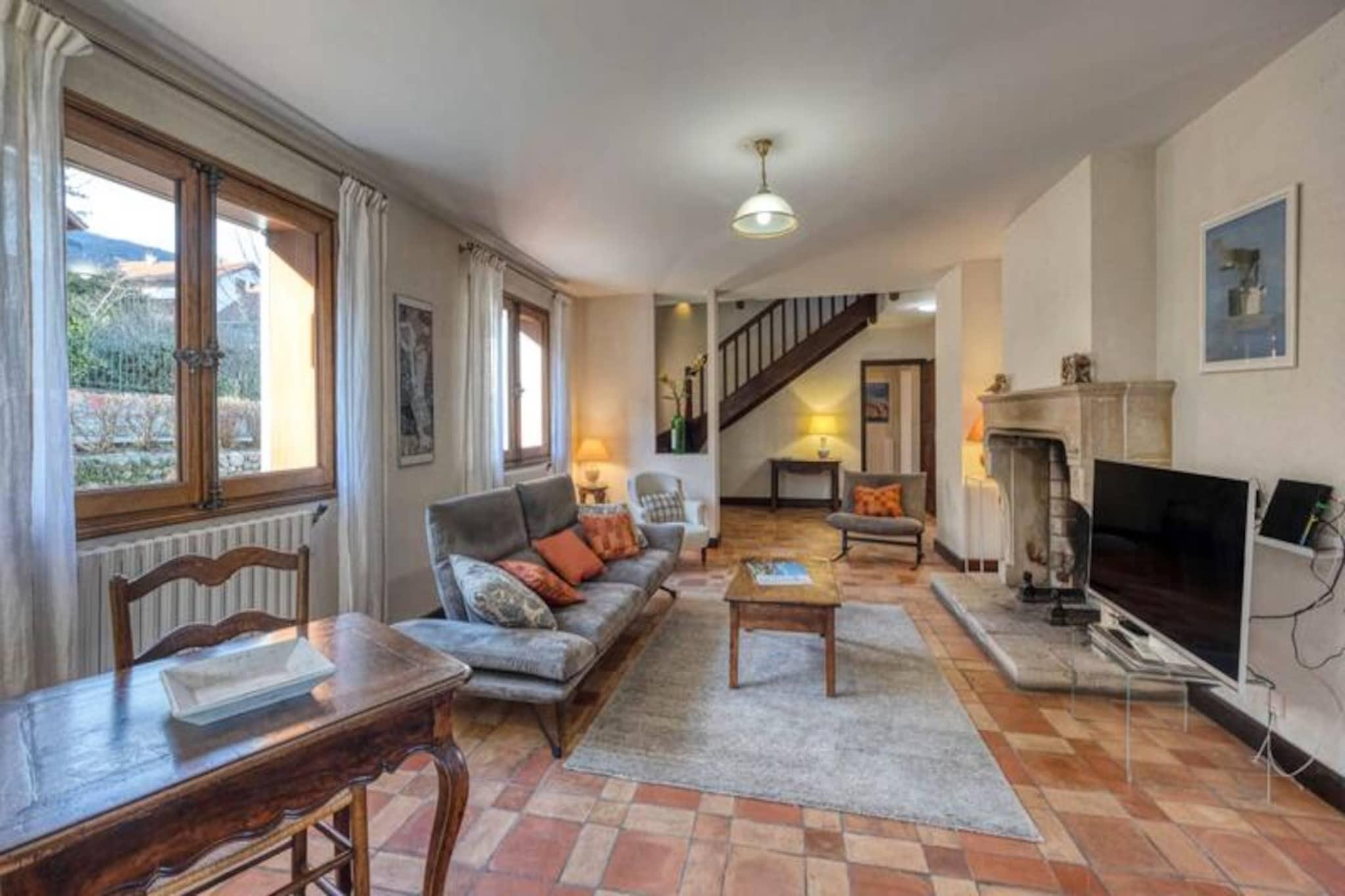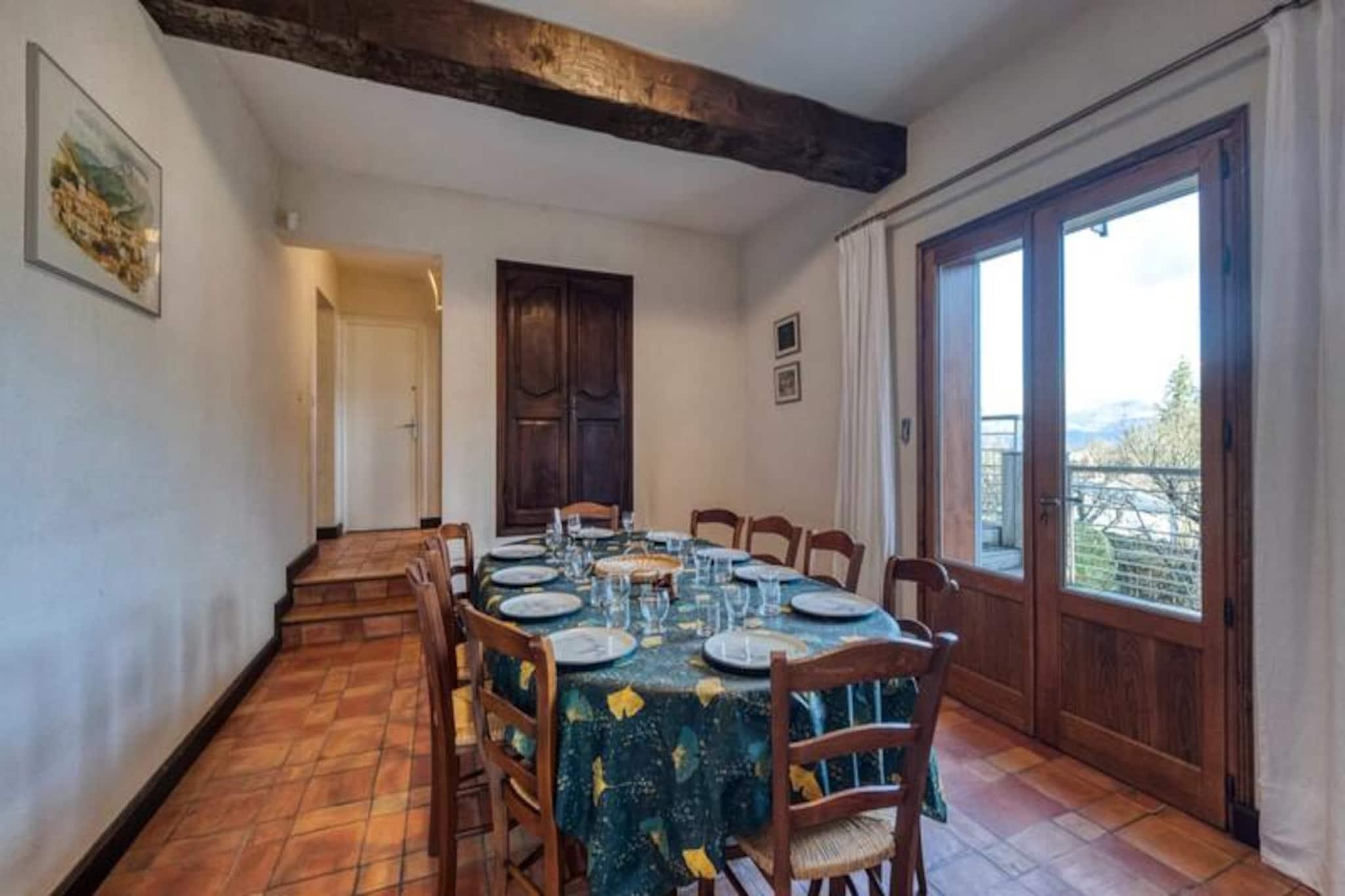 Im malerischen Städtchen Seyssins, am Fuße des majestätischen Vercors-Massivs gelegen, bietet dieses geräumige, 210 m² große Haus einen idyllischen Rückzugsort für bis zu 12 Gäste. Umgeben von atemberaubender Bergkulisse und nur eine kurze Fahrt von Grenoble entfernt, vereint dieses Anwesen die Ruhe der Natur mit den Annehmlichkeiten der Stadt und ist somit der ideale Ausgangspunkt für Familien oder Gruppen, die einen unvergesslichen Urlaub verbringen möchten. Der weitläufige, 1500 m² große Garten lädt zum Entspannen in ruhiger Atmosphäre ein – perfekt für Mahlzeiten im Freien oder einfach zum Genießen der frischen Alpenluft. Im Inneren ist das Haus durchdacht gestaltet und bietet Komfort und Entspannung. Das Erdgeschoss verfügt über ein großes Wohnzimmer mit gemütlichen Sitzgelegenheiten, Fernseher und Internetzugang sowie einen Essbereich mit einem Tisch für 12 Personen. Die voll ausgestattete Küche bietet moderne Geräte wie Backofen, Geschirrspüler und Kaffeemaschine, sodass die Zubereitung von Mahlzeiten zum Kinderspiel wird. Die fünf Schlafzimmer verteilen sich auf zwei Etagen und bieten flexible Schlafmöglichkeiten. Zwei der Schlafzimmer verfügen über ein eigenes Badezimmer, die anderen teilen sich ein komfortables Verbindungsbad. Bettwäsche und Handtücher werden für alle Gäste bereitgestellt und garantieren einen unbeschwerten Aufenthalt. Seyssins ist der ideale Ausgangspunkt für Outdoor-Abenteuer: Wander- und Mountainbike-Strecken schlängeln sich durch die atemberaubende Landschaft des Vercors. Golfliebhaber werden den nahegelegenen, renommierten Golfplatz zu schätzen wissen, und die lebendige Stadt Grenoble mit ihren kulturellen Attraktionen, Einkaufsmöglichkeiten und Restaurants ist nur wenige Kilometer entfernt. Ob Sie die Berge erkunden oder den lokalen Charme genießen möchten – von hier aus sind Sie mittendrin. Mit seiner gelungenen Kombination aus modernem Komfort, natürlicher Schönheit und der Nähe zu wichtigen Sehenswürdigkeiten ist dieses Haus in Seyssins die perfekte Wahl für Ihren nächsten Urlaub. Schaffen Sie unvergessliche Erinnerungen in dieser bezaubernden Alpenoase.