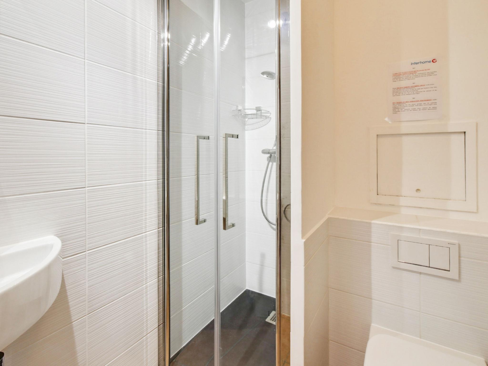 3-Zimmer-Wohnung 39 m2 im 2. Stock. Zweckmässig und komfortabel eingerichtet: Wohn-/Esszimmer mit 1 Bett (80 cm, Länge 190 cm), TV (Flachbildschirm). Ausgang zur Terrasse. Kabine mit 1 x 2 Etagenbetten (80 cm, Länge 190 cm). 1 Zimmer mit 1 franz. Bett (140 cm, Länge 190 cm). Kochnische (Geschirrspüler, 4 Glaskeramikplatten, Toaster, Wasserkocher, Mikrowelle, elektrische Kaffeemaschine). Bad, Dusche/WC. E-Heizung. Terrasse 7 m2, Westlage. Terrassenmöbel. Schöne Sicht auf das Meer. Zur Verfügung: Internet (Wireless LAN, extra). Parkplatz Nr. 468 (niveau 1) (überdacht), Höhe 190 cm, Breite 240 cm. Bitte beachten: Wohnung auf Strassenseite. TV nur FR. Rauchmelder. Anstelle eines abgeschlossenen Schlafzimmers befinden sich manche Schlafplätze in einem offenen Bereich (Galerie, Nische etc.).