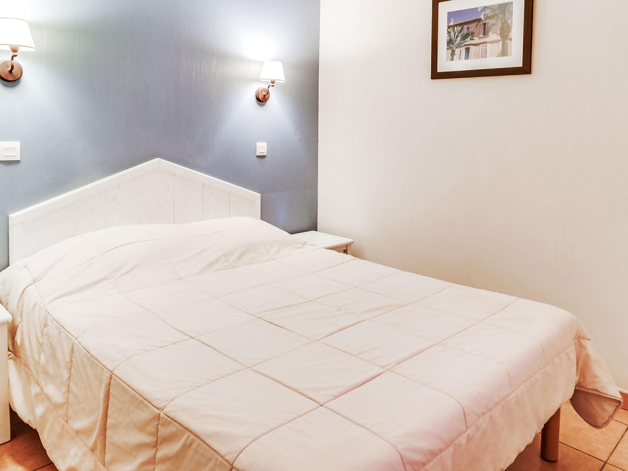 2-Zimmer-Wohnung 32 m2 im 1. Stock. Schön eingerichtet: Wohn-/Esszimmer mit 1 Doppeldiwanbett (140 cm, Länge 190 cm), TV (Flachbildschirm). Ausgang zur Terrasse. 1 Zimmer mit 1 franz. Bett (140 cm, Länge 190 cm). Kochnische (Geschirrspüler, 4 Glaskeramikplatten, Toaster, Wasserkocher, Mikrowelle, Tiefkühler, elektrische Kaffeemaschine). Bad, sep. WC. E-Heizung. Terrasse 9 m2, überdacht, Westlage. Terrassenmöbel. Herrliche Sicht auf das Meer und das Schwimmbad. Zur Verfügung: Waschmaschine. Internet (Wireless LAN, extra). Parkplatz Nr. 454 (Niveau 1) (überdacht), Höhe 190 cm, Breite 232 cm. Bitte beachten: Maximal 1 Haustier/Hund erlaubt. TV nur FR. Rauchmelder.