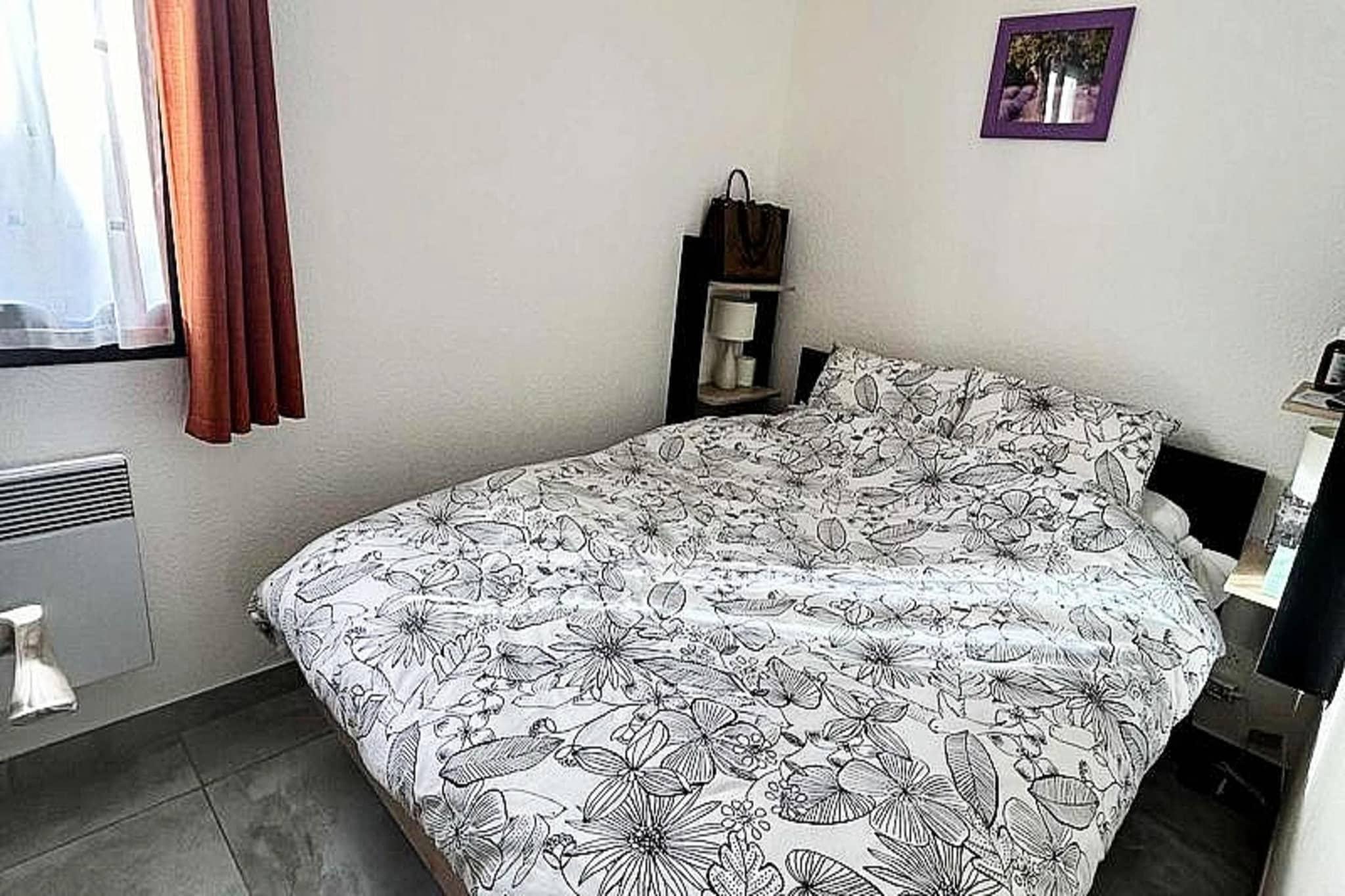 This air-conditioned 3-bedroom apartment offers a comfortable stay for up to 6 guests. It features a spacious living and dining area with a 2-seater convertible sofa bed, two bedrooms with double beds, and a well-equipped kitchen. The apartment also includes a bathroom and a private parking space. Bed linen and towels are not provided, but can be arranged for an additional charge. Tourist taxes and a credit card deposit are to be paid on-site upon arrival. The property is not pet-friendly. Located just 100 meters from the sea, the apartment provides direct access to the beach and is ideally situated near the picturesque villages of Sanary, Bandol, and Le Castelet. Explore the stunning coves, and enjoy easy access to the beautiful Porquerolles, Embiez, and Bendor islands. Guests can also take advantage of the area’s many attractions, including nearby cafes, restaurants, and markets, offering authentic Mediterranean charm and local flavors. The apartment includes a fully equipped kitchen, allowing guests to prepare meals with ease. The bathroom is functional and well-maintained, and the private parking space ensures convenience during your stay. Additional services include optional Wi-Fi, boat rentals, and access to the on-site swimming pool and tennis courts (for an additional charge), making this apartment a great choice for a relaxing seaside getaway.