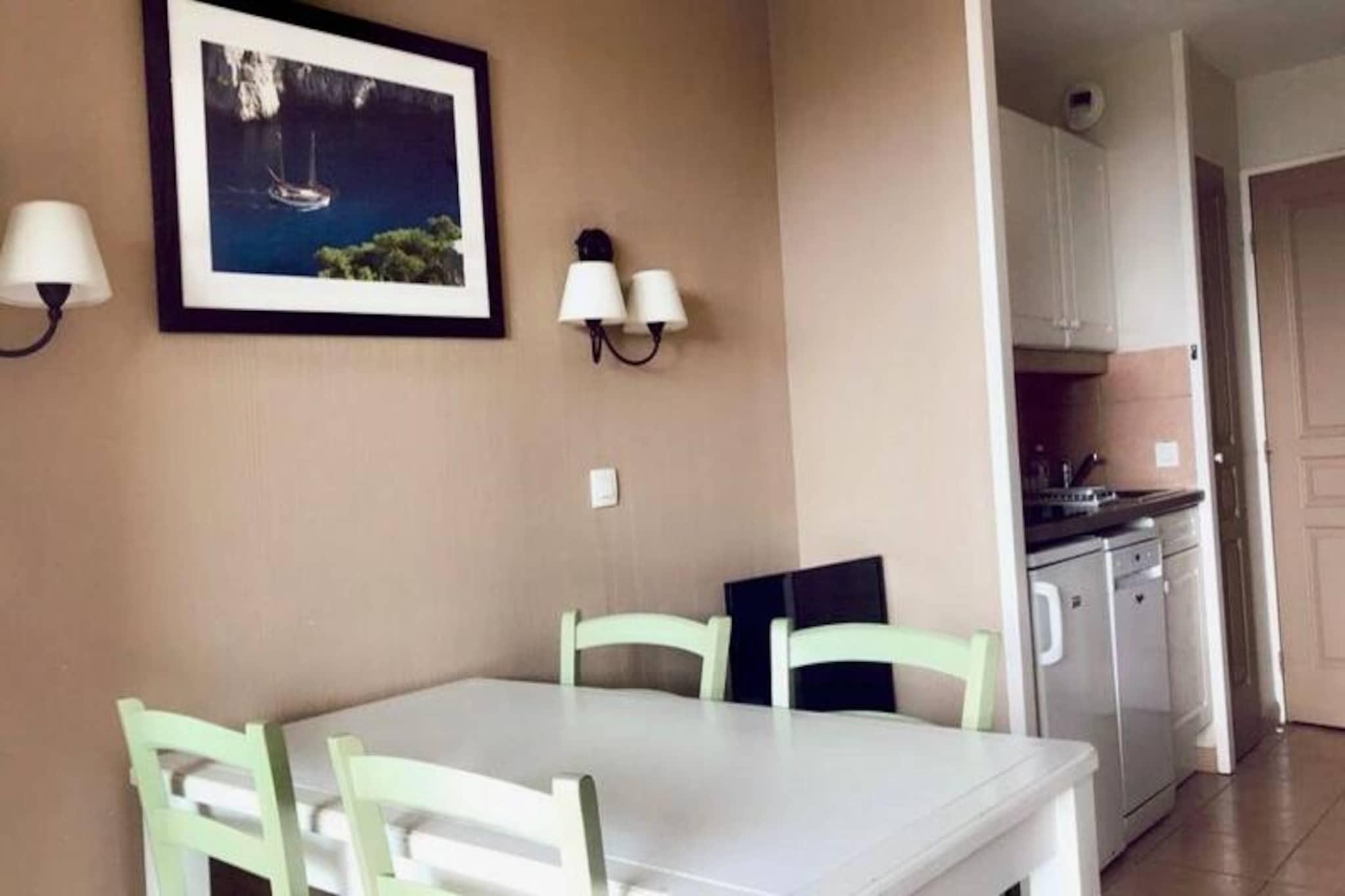 Set within a tranquil wooded estate, this charming ground-floor apartment offers a comfortable retreat for up to five guests. It features a living-dining room with a double sofa bed and a single bed, a bedroom with a double bed, a bathroom with a bathtub, and a separate toilet. The private terrace, complete with outdoor furniture, is perfect for relaxing or dining al fresco. Underground parking is available, though roof boxes are not permitted. Sheets and towels can be rented for an additional fee, and end-of-stay cleaning ensures a stress-free departure. Please note, pets are not allowed. Located in the scenic Coudoulière estate, the property is just 100 meters from the beach and offers direct sea access. Guests can explore nearby attractions such as Sanary-sur-Mer, Bandol, and Le Castellet, or enjoy nature trails, a Mediterranean park, and a peaceful lake within the estate. The beautiful islands of Porquerolles, Les Embiez, and Bendor are easily accessible, and local cafes, markets, and restaurants provide a delightful taste of Provence. The apartment is equipped with a fully functional kitchen, ideal for preparing meals, and includes amenities such as Wi-Fi available for a small daily fee. Hygiene extras like disposable pillowcases and underpads are provided for added comfort. Whether you’re seeking relaxation or adventure, this property offers an ideal seaside escape in a picturesque setting.