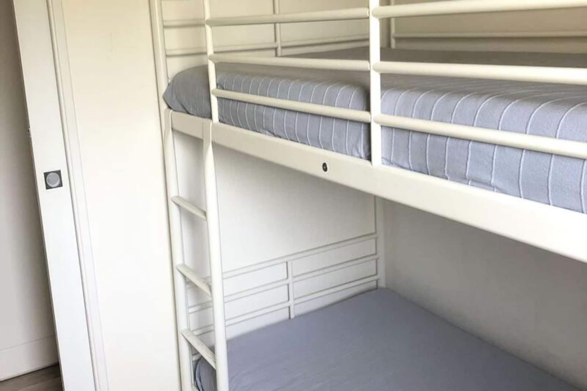 This comfortable apartment accommodates up to 6 guests, featuring a bedroom with a double bed, a second bedroom with bunk beds, and a living room with a convertible sofa. The apartment is not pet-friendly, and bed linen and towels are not provided, though they can be arranged for an additional cost. Tourist taxes and a credit card deposit will be collected upon arrival. Guests can also access a private swimming pool and tennis court, though these amenities come at an extra charge. Located in a peaceful, wooded area, the apartment offers direct access to the sea and is just 100 meters from the beach. Nearby attractions include the picturesque villages of Sanary, Bandol, and Le Castellet, as well as the stunning coves and islands of Porquerolles, Embiez, and Bendor. Enjoy outdoor activities such as hiking, cycling, and exploring the Mediterranean park, or visit the nearby fitness trail. Local cafes, markets, and amenities are easily accessible, ensuring a relaxing and convenient stay. The apartment includes a fully equipped kitchen and a bathroom, providing all the essentials for a comfortable stay. The loggia offers a serene space to unwind, while the heating ensures warmth on cooler days. End-of-stay cleaning is included for your convenience.