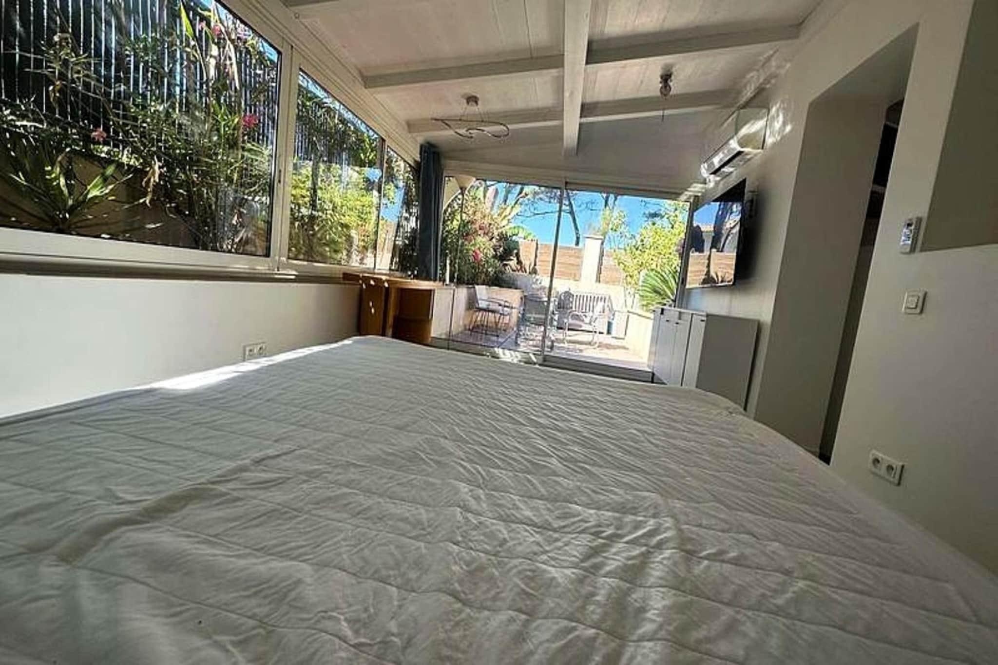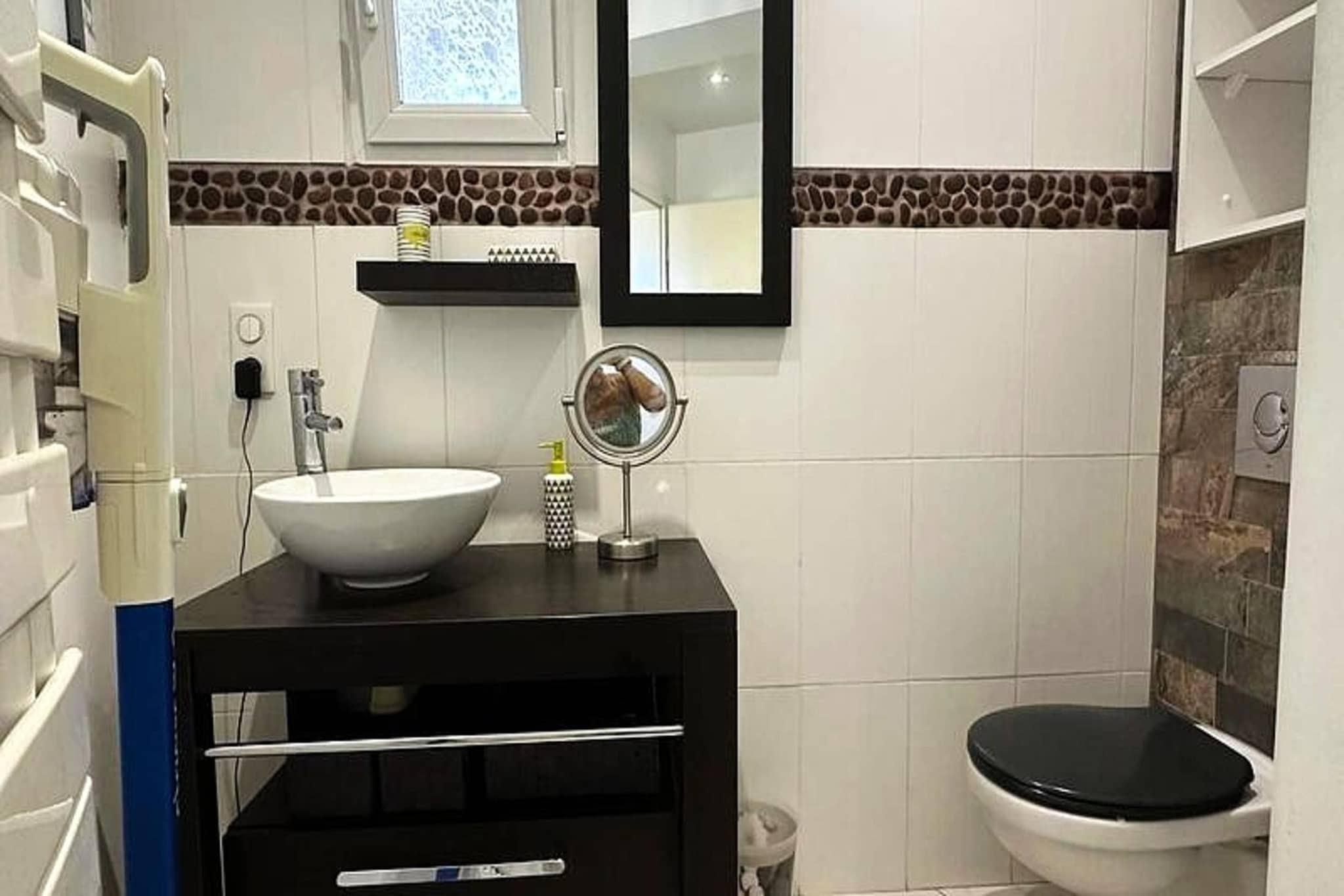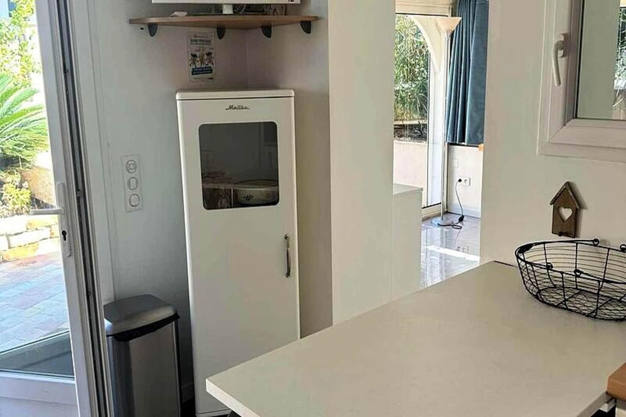 This charming apartment offers a comfortable stay for up to 4 people, featuring a living-dining room with a sofa bed, a double bedroom (160x200), and a bathroom. Located in a secure, peaceful residence, the apartment is perfect for a relaxing getaway. The garden is under surveillance for added security. Bed linen and towels are not provided but can be arranged for an additional charge. Tourist taxes and a credit card deposit are to be paid on arrival. The apartment is just 300 meters from Rayolet beach, offering easy access to beautiful coastlines. The surrounding area is perfect for outdoor exploration with the nearby island of Gaou, Embiez, the port of Brusc, and the forest of Six Fours beaches. Everything is within walking distance, including cafes and local markets for a true taste of the region. The apartment is equipped with a fully functional kitchen, ideal for preparing meals during your stay. The bathroom is conveniently designed, and the terrace offers a pleasant outdoor space. Enjoy the comfort of heating during your stay, and end-of-stay cleaning is included for a hassle-free experience. With all the necessary amenities, this apartment ensures a delightful seaside vacation.