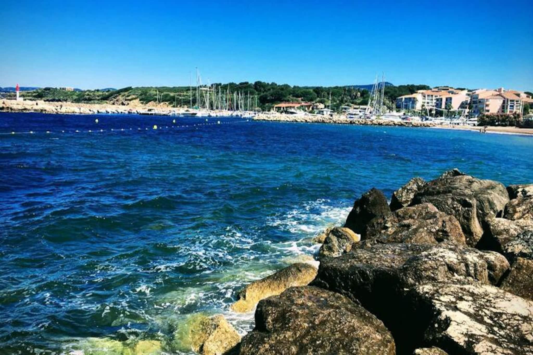 Boost your seaside vacation in a beautiful 32m² apartment located in a peaceful, wooded residence in Six-Fours-les-Plages. This accommodation is perfect for up to 4 people, offering a bedroom with a double bed, a cabin area with bunk beds, and a spacious living room. A magnificent sea-view balcony adds to the charm of the apartment, allowing you to unwind and enjoy the surrounding beauty. Bed linen and towels are available for an additional cost, with tourist taxes and a deposit collected on-site. The apartment's fantastic location places you just 500m from the beaches, offering direct access to the sea. Nearby, you'll find the vibrant town of Six-Fours-les-Plages, offering a selection of cafes, markets, and shops. Explore local attractions such as the beautiful calanques, as well as nearby destinations like Sanary-sur-Mer, Bandol, and Le Castellet. For outdoor enthusiasts, hiking, cycling, and water sports are available in the surrounding area. Inside, the apartment features a well-equipped kitchen, a beautiful bathroom, and separate WC for your convenience. Additional services include end-of-stay cleaning and disposable COVID-19 protection items. The residence also offers a swimming pool and tennis court for an extra charge, perfect for those looking to relax or stay active during their stay.