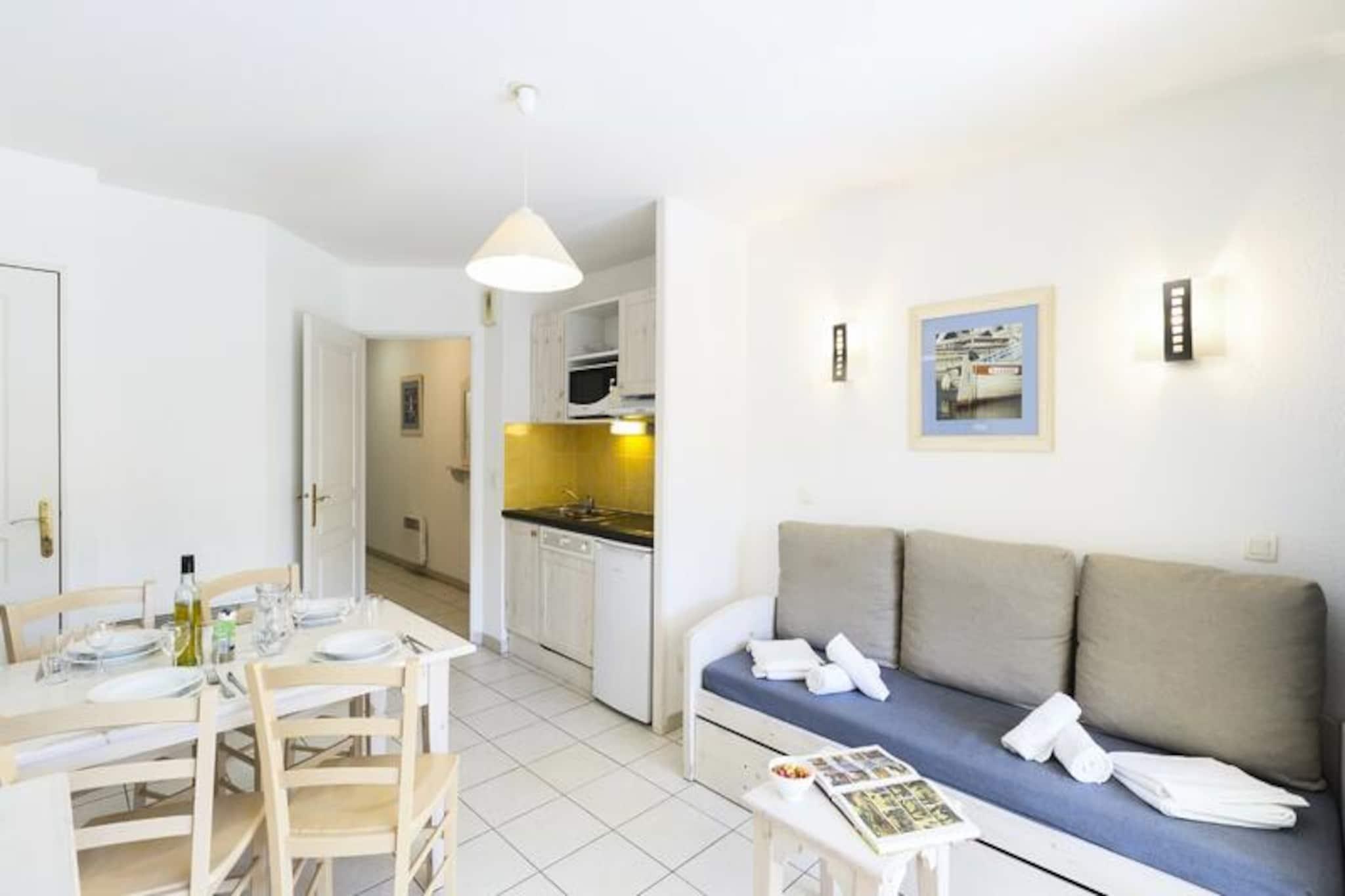 Dieses charmante Apartment in Six-Fours-les-Plages bietet einen komfortablen und einladenden Aufenthalt für bis zu 4 Personen. Es verfügt über ein Wohnzimmer mit ausziehbarer Schlafcouch, eine gemütliche Kabine mit Doppelbett und eine gut ausgestattete Küchenzeile. Die Unterkunft ist gegen einen geringen Aufpreis haustierfreundlich, sodass Ihre vierbeinigen Freunde Sie bei Ihrem Urlaub am Meer begleiten können. Ein Badezimmer mit WC ist ebenfalls vorhanden. Bettwäsche und Handtücher werden gestellt. In der gesamten Unterkunft steht Ihnen kostenfreies WLAN zur Verfügung, sodass Sie während Ihres Besuchs stets in Verbindung bleiben. Das Apartment liegt nur 350 m vom Strand und 1,5 km vom Stadtzentrum entfernt und bietet einfachen Zugang zu einer Vielzahl nahegelegener Sehenswürdigkeiten. Erkunden Sie die feinen Sandstrände, Jachthäfen und geschützten Wälder, die Six-Fours-les-Plages zu einem beliebten Reiseziel in der Provence machen. Mit Cafés, Restaurants und Märkten in der Nähe können Sie lokale mediterrane Küche und frische Produkte genießen. Die Residenz liegt eingebettet in eine grüne Umgebung und ist somit ein idealer Ausgangspunkt für die Erkundung der Mittelmeerküste zwischen Bandol und Toulon. Das Apartment verfügt über zusätzliche Annehmlichkeiten, die Ihren Aufenthalt bereichern, darunter einen privaten Balkon oder eine Terrasse. Sie können den beheizten Außenpool genießen, der saisonal geöffnet ist, oder im Planschbecken entspannen. Kostenlose Außenparkplätze stehen zur Verfügung, außerdem gibt es überdachte Parkplätze für zusätzlichen Komfort. Zu den optionalen Leistungen gehören ein Frühstücksbuffet, ein Babybett (auf Anfrage) und ein Endreinigungspaket.