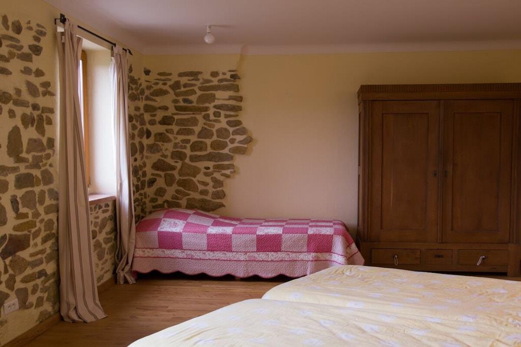 Das Haus Syrah auf Domaine La Flotte bietet Platz an 10 Personen, kann aber bis zu 15 oder 20 Personen ausgebreitet werden wenn man eins oder zwei der Nachbarhäuser hinzufügt. Haus Syrah liegt in der Mitte des Hauptgebäudes, es hat 4 Schlafzimmer, jeweils mit eigenem Badezimmer. Die daneben liegenden Häuser werden nicht vermietet (damit jeder seine Ruhe hat), nur die zwei Häuser jeweils am Ende des Gebäudes, die ihre Terrasse aber auf der Seite haben. Von der großen Terrasse aus (geschützt von grünen Hecken) haben Sie Blick auf das Grundstück, den Pool und die Berge. Der kleine Pool (rund, 6 m Durchmesser) ist geeignet zum Auffrischen, im großen See von Montbel (etwa 15 Min. fahren) kann man schwimmen und Wassersport betreiben. Vom domaine aus kann man schöne Wanderungen machen (ausgeschilderte Wege).