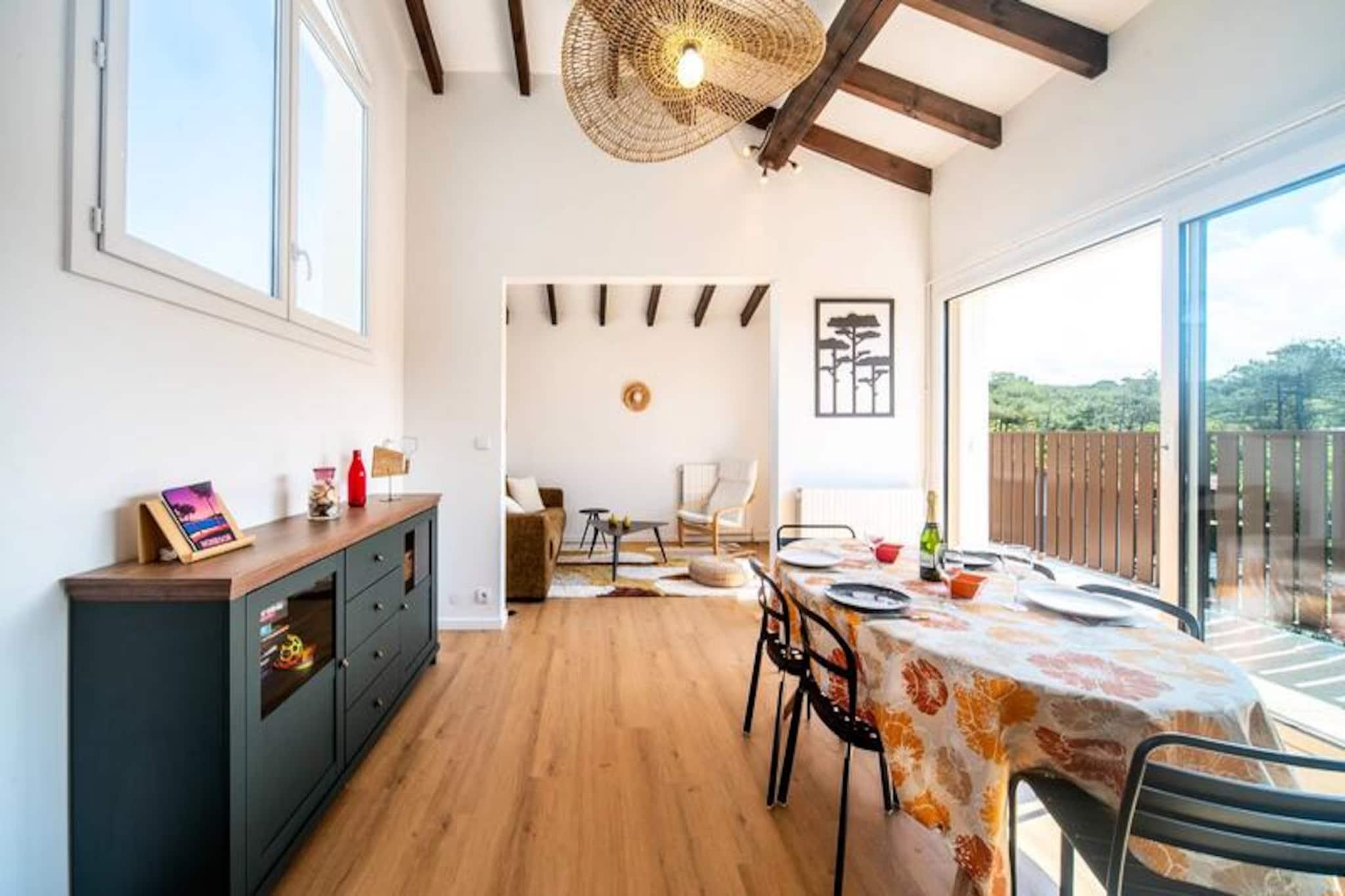 Wo die rhythmischen Wellen des Atlantiks auf die ruhigen Strände von Hossegor treffen, bietet dieses charmante Maisonette-Apartment einen einzigartigen Rückzugsort am Meer. Im obersten Stockwerk der San Michele Residence gelegen, bietet es einen atemberaubenden Blick auf die Dünen und ist nur wenige Schritte vom bewachten Strand Gravière entfernt. Stellen Sie sich vor, wie Sie mit dem Rauschen des Meeres erwachen, Ihren Morgenkaffee auf dem nach Osten ausgerichteten Balkon genießen oder die Sonne auf der privaten 25 m² großen Terrasse tanken. Dies ist die perfekte Oase für alle, die Ruhe und die belebende Energie des Meeres suchen. Das Apartment ist durchdacht gestaltet und bietet Platz für bis zu fünf Gäste. Das Wohnzimmer öffnet sich zum Balkon und schafft so einen hellen und luftigen Raum zum Entspannen. Die Küche ist komplett mit modernen Geräten ausgestattet, darunter ein Gasherd, ein Geschirrspüler, ein Kühl-/Gefrierschrank, ein Backofen und eine Mikrowelle, sodass die Zubereitung von Mahlzeiten zum Kinderspiel wird. Die Schlafmöglichkeiten umfassen ein gemütliches Schlafzimmer mit Etagenbetten, eine Galerie mit einem Einzelbett und ein Hauptschlafzimmer mit Doppelbett und eigenem Duschbad. Zusätzliche Annehmlichkeiten wie Waschmaschine, beheizter Handtuchhalter und Babyausstattung sorgen für einen komfortablen Aufenthalt für Familien. Die Lage ist unschlagbar: Der lebhafte Strand von Gravière liegt direkt gegenüber und bietet beaufsichtigtes Schwimmen sowie unzählige Möglichkeiten zum Surfen oder Strandspaziergang. Erkunden Sie den nahegelegenen See, die lokalen Märkte und die charmanten Cafés, die Hossegor zu einem beliebten Reiseziel machen. Ein privater Parkplatz im Obergeschoss bietet zusätzlichen Komfort, und kostenloses WLAN hält Sie in Verbindung. Ob Sie eine ruhige Auszeit oder einen aktiven Strandurlaub suchen – dieses Apartment ist der perfekte Ausgangspunkt für unvergessliche Erinnerungen am Meer. Lassen Sie sich das ganze Jahr über von der Schönheit Hossegors verzaubern, mit den Dünen und dem Meer als Kulisse.