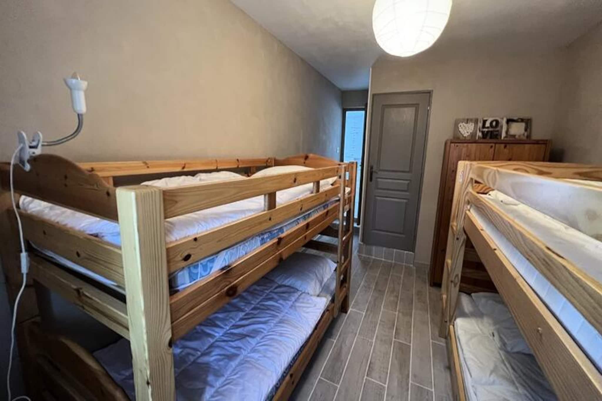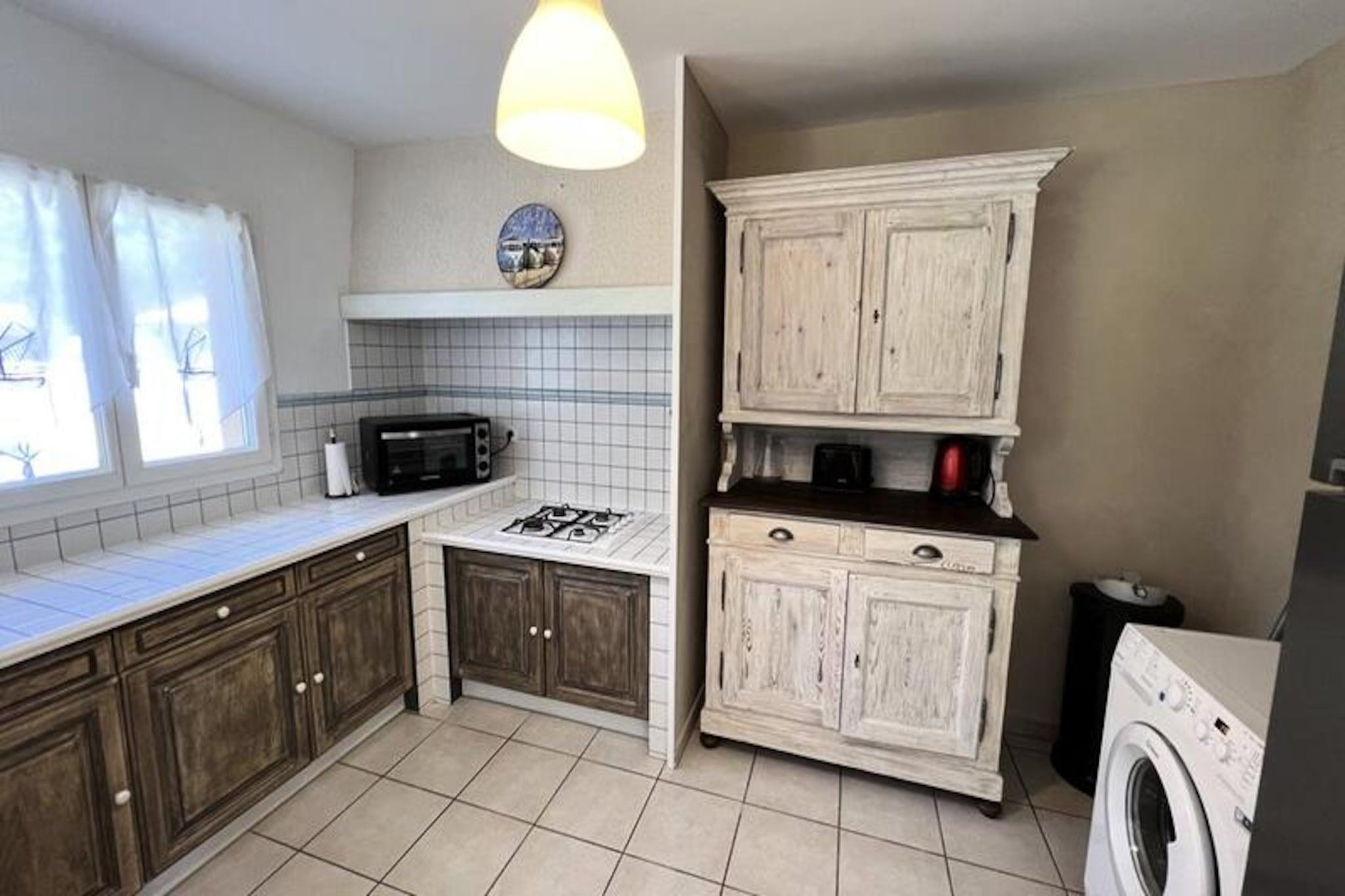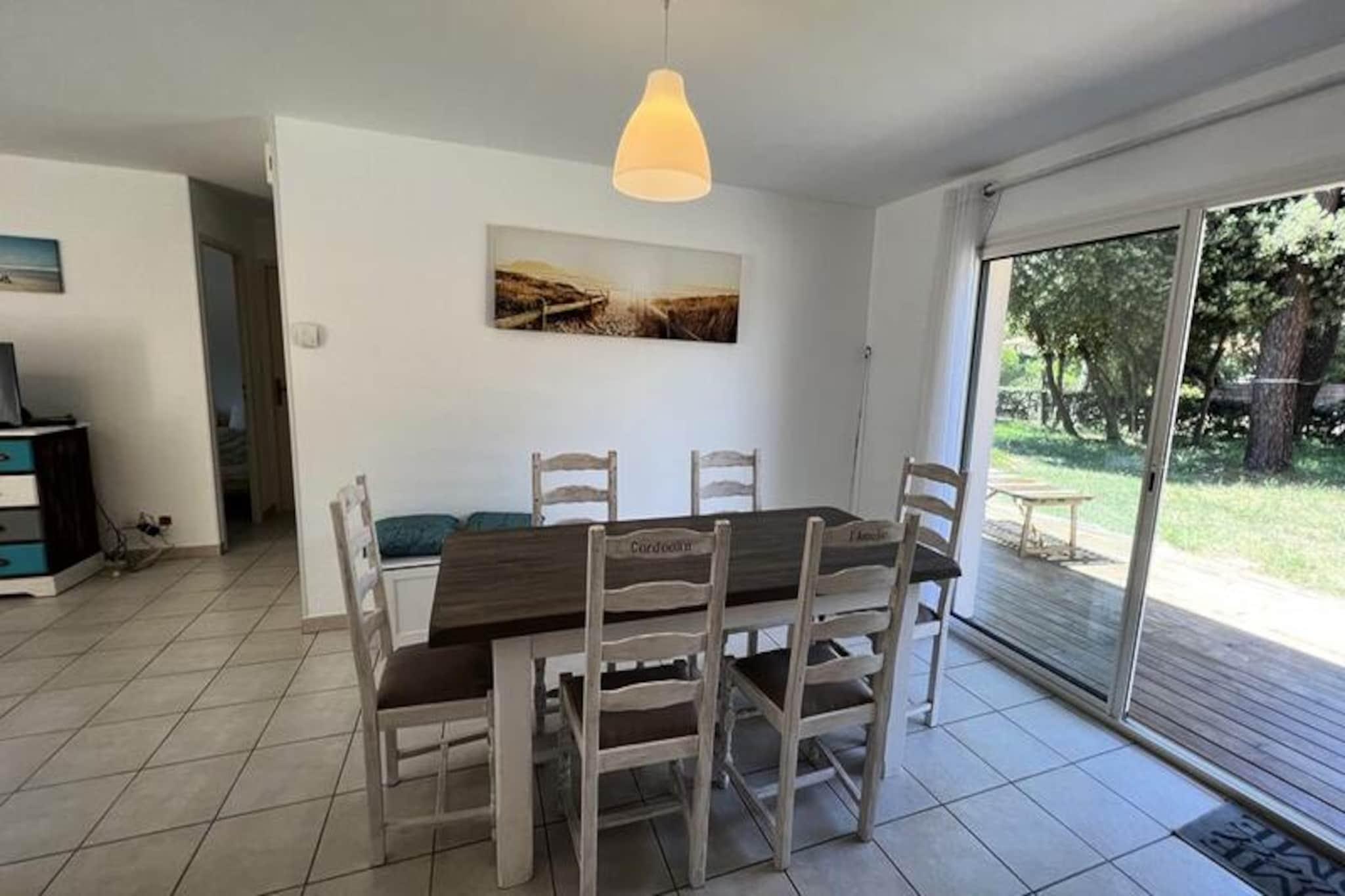 Eine charmante Villa erwartet Sie im Herzen der französischen Landschaft, umgeben von üppigem Grün und Ruhe. Dieses einladende Anwesen ist ideal für Familien oder Gruppen, die einen friedlichen Rückzugsort mit allem Komfort suchen. Stellen Sie sich vor, wie Sie vom Gesang der Vögel geweckt werden und Ihren Morgenkaffee im weitläufigen Garten genießen, wo die Sonne durch die Bäume fällt und eine friedliche Atmosphäre zum Entspannen und für Aktivitäten im Freien schafft. Ob Sommerurlaub oder gemütliche Winterauszeit – diese Villa bietet den idyllischen Rahmen für unvergessliche Erinnerungen. \n\nIm Inneren erwartet Sie ein heller und luftiger Wohnbereich mit einem komfortablen Wohnzimmer und Essbereich, ideal zum gemeinsamen Beisammensein nach einem erlebnisreichen Tag. Die offene und voll ausgestattete Küche macht die Zubereitung von Mahlzeiten zum Kinderspiel, und die drei Schlafzimmer bieten für jeden Bedarf das Richtige. Zwei Schlafzimmer verfügen über Doppelbetten (160 cm und 140 cm), und das dritte ist mit vier Etagenbetten sowie eigenem Duschbad und WC perfekt für Kinder geeignet. Ein separates Badezimmer und WC sorgen für zusätzlichen Komfort, und das Haus ist bestens für kleine Kinder ausgestattet. Treten Sie hinaus und entdecken Sie das weitläufige, 1092 m² große, umzäunte und bewaldete Grundstück. Hier können Sie auf Liegestühlen entspannen, Mahlzeiten im Freien mit dem Grill genießen oder einfach die natürliche Schönheit der Umgebung auf sich wirken lassen. Das Anwesen bietet zudem private Parkplätze, die Ihnen während Ihres Aufenthalts Komfort und Sicherheit garantieren. Die Villa liegt in unmittelbarer Nähe zu lokalen Sehenswürdigkeiten und Einrichtungen und ist somit der ideale Ausgangspunkt, um den Charme der Region zu erkunden. Ob Sie nahegelegene Strände und malerische Dörfer besuchen oder Outdoor-Abenteuer erleben möchten – hier finden Sie alles, was Sie für einen perfekten Urlaub benötigen. Machen Sie diese bezaubernde Villa zu Ihrem zweiten Zuhause, wo Entspannung und Entdeckungen Hand in Hand gehen.