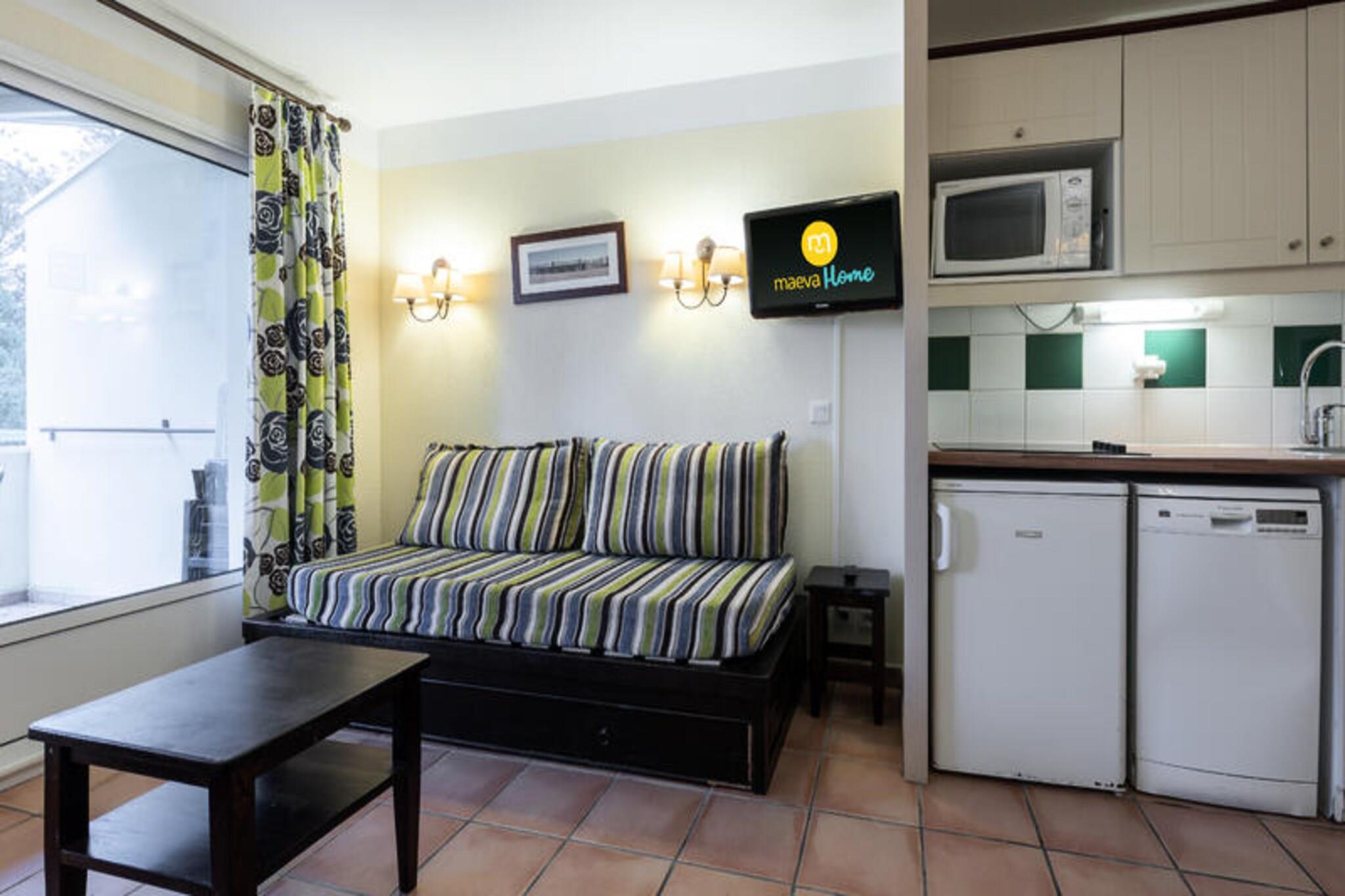 Dieses Apartment mit einem Schlafzimmer (36 m²) ist Teil der Residenz Le Domaine du Golf de Pinsolle in Soustons, Landes. Das Apartment eignet sich perfekt für einen Kurzurlaub für bis zu 5 Personen und verfügt über eine Terrasse mit Blick auf den Wald und Zugang zu einem beheizten Außenpool (geöffnet von Mitte Juni bis Mitte Oktober). Haustiere sind erlaubt (es können zusätzliche Gebühren anfallen). Die Residenz liegt am Rande eines Golfplatzes, nur einen Kilometer vom See Étangs marins und nicht weit von ausgedehnten Sandstränden entfernt. Während das Apartment selbst keinen direkten Zugang zum Strand hat, bietet die Umgebung gegen Aufpreis zahlreiche Outdoor-Aktivitäten (Golf, Tennis, Reiten). Die Stadt Soustons bietet Wanderwege und eine wunderschöne Landschaft. Das Apartment verfügt über ein Wohnzimmer mit zwei Schlafsofas (für 3 Personen), eine Küche, ein Schlafzimmer mit einem Doppelbett, ein Badezimmer mit Badewanne und Dusche, ein separates WC und kostenlose Parkplätze im Freien. WLAN-Zugang, Bettwäsche, Handtücher und die Endreinigung sind gegen eine zusätzliche Gebühr verfügbar.