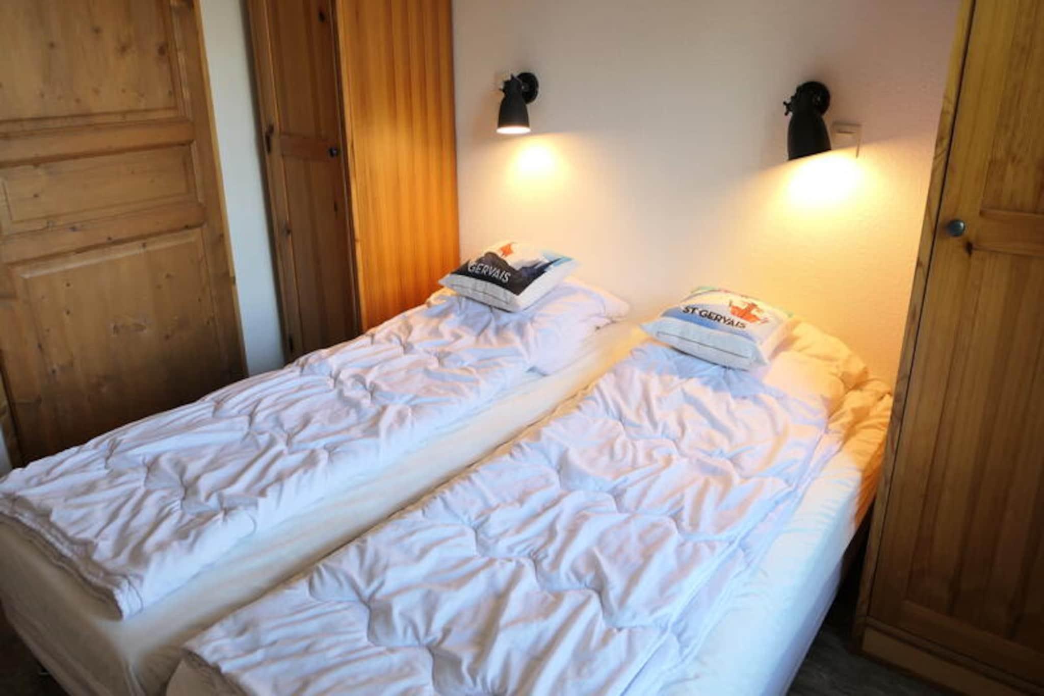 Mit dem majestätischen Mont Blanc im Hintergrund bietet dieses charmante Apartment in der Grand Panorama Residence einen idyllischen Rückzugsort in den Alpen von Saint-Gervais. Nur 50 Meter von der Seilbahn Saint-Gervais entfernt, gelangen Sie direkt in das weitläufige Skigebiet Evasion Mont-Blanc – perfekt für Wintersportbegeisterte. Im Sommer lädt der beheizte Außenpool zum Entspannen unter der Bergsonne ein und bietet eine Oase für Abenteuer das ganze Jahr über. Dank der Nähe zum Ortskern (nur 800 Meter entfernt) sind Sie nie weit von Bäckereien, Geschäften und Restaurants entfernt und genießen hier Komfort und Ruhe zugleich. \n\nDieses durchdacht gestaltete 44 m² große Apartment bietet bequem Platz für bis zu sechs Gäste und ist somit ideal für Familien oder Freundesgruppen. Es befindet sich im 4. Stock und verfügt über zwei nach Norden ausgerichtete Balkone mit herrlichem Blick auf die umliegenden Gipfel. Im Inneren erwartet Sie ein gemütliches Wohnzimmer mit Schlafsofa, Fernseher und Essbereich. Die voll ausgestattete Küche bietet moderne Geräte wie Cerankochfeld, Mikrowelle, Geschirrspüler und sogar ein Fondue-Set für authentische Alpenabende. Die Schlafmöglichkeiten umfassen ein Schlafzimmer mit zwei Einzelbetten, eine Kabine mit Etagenbetten und zusätzliche Schlafplätze im Wohnzimmer. Zwei Badezimmer, eines mit Badewanne und das andere mit Dusche, sorgen für Komfort für alle Gäste. \n\nDie Unterkunft bietet außerdem praktische Annehmlichkeiten wie eine Garage, einen Skiraum und optionale Services wie WLAN und Bettwäscheverleih. Ob Sie unberührte Pisten hinabsausen, malerische Wanderwege erkunden oder einfach den Charme von Saint-Gervais genießen möchten – dieses Apartment ist der perfekte Ausgangspunkt für unvergessliche Bergerlebnisse. Mit seiner Kombination aus Komfort, Bequemlichkeit und atemberaubender Umgebung lädt es Sie ein, das Beste der französischen Alpen zu erleben.