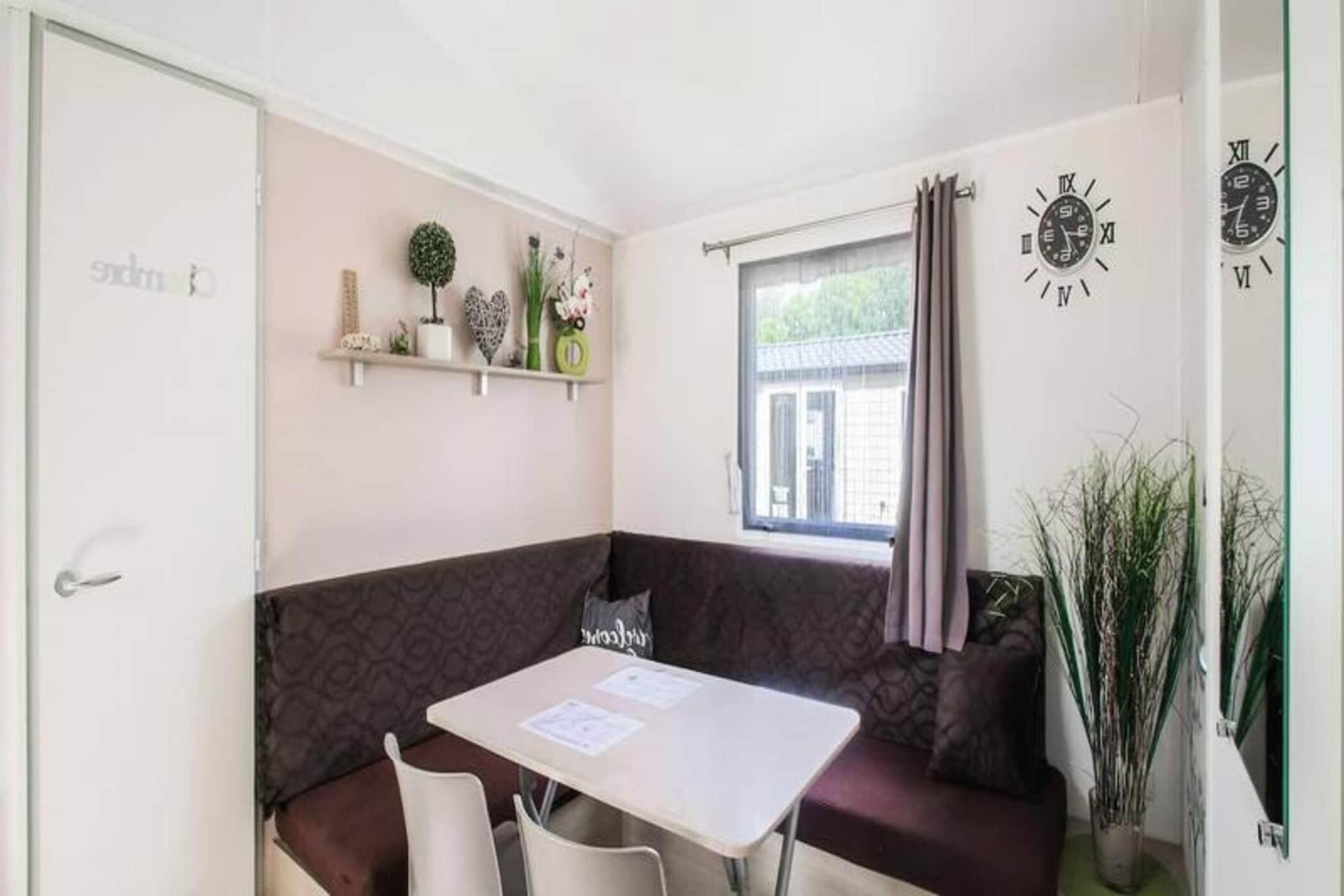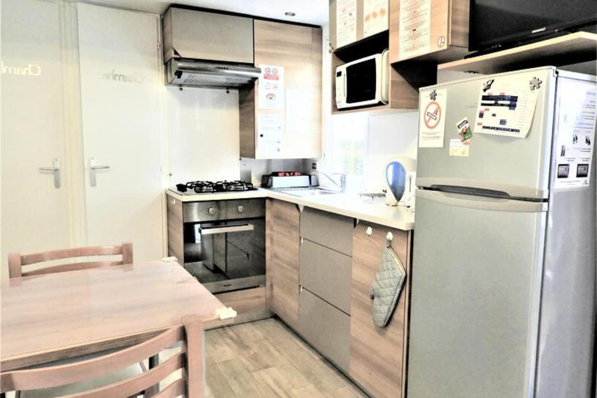 U heeft toegang tot 2 campings voor activiteiten: - Aquatische complexen met peuterbaden, glijbanen, glijhellingen, zwembaden. - Een binnenzwembad (verwarmd). - Aquagym, fitness- en cardioruimte. - Wellnessruimte met lichaamsverzorging, jacuzzi, sauna, hamam, massages. - Buitenspeelplaatsen voor kinderen. - Activiteiten en sporttoernooien gedurende de dag. - Videogamekamers, biljart, fietsverhuur ter plaatse. - Bowlingbaan, tafeltennis, voetbal, volleybal, basketbal, tennisbaan, uitleen van bordspellen en sportartikelen (met borg). - 3 kinderclubs vanaf 1 jaar. - Thema-avonden (cabaret, dans, karaoke). - Toegang tot gratis WIFI in bars, betalen in de stacaravan. - Supermarkt (kleine kruidenierswinkel in het hoogseizoen), broodwinkel, afhaalmaaltijden. - Pizzeria, restaurant. - Bar bij het zwembad met gigantisch scherm. *Betaalde badges zijn vereist voor toegang tot de infrastructuur van de 2 campings. 1 woonkamer, 1 keuken, 3 slaapkamers, 1 badkamer, 1 apart toilet en gedeeld zwembad. Inrichting woonkamer: 1 tafel en 6 stoelen en 1 tv. Keukenapparatuur: koelkast, kookplaat, oven, magnetron, waterkoker, koffiezetapparaat, broodrooster... Kamerfaciliteiten: 2 slaapkamers met 2 eenpersoonsbedden en 1 slaapkamer met 1 tweepersoonsbed. Uitrusting van de doucheruimte: 1 douche met toilet. Terrasuitrusting: een tafel met 8 stoelen en 2 ligstoelen. Ruimte voor een auto op de staanplaats. Oppervlakte: 38 m². De voordelen van deze accommodatie: gemeubileerd terras, gemeenschappelijk zwembad, gelegen op het zuidwesten, gasbarbecue, tv... Wifi-toegang - Inbegrepen bij de bars. Te betalen in de stacaravan. Borg (extra) - Een borg van 850€ wordt bij aankomst gevraagd. Toeristenbelasting (meerprijs) - Het bedrag van de toeristenbelasting bedraagt ??0,65€ per dag/pers. Gratis voor onder de 18 jaar.