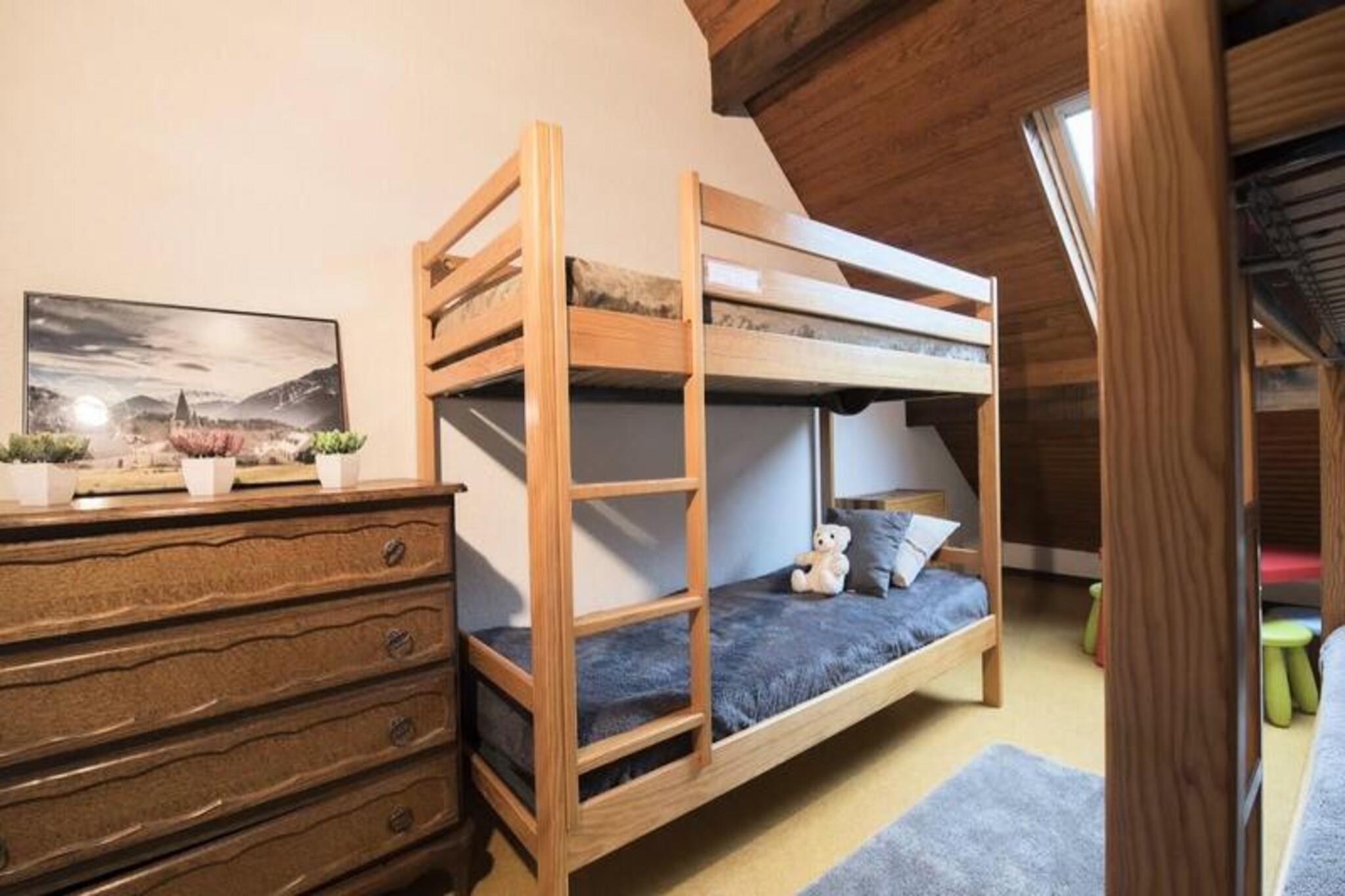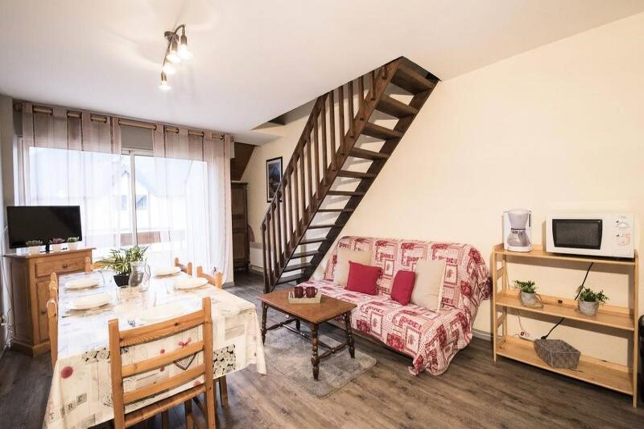 This spacious 45m² duplex apartment accommodates up to 8 people and is perfect for families or groups. On the first level, you'll find a large living room with a dining table, a new 2-seater BZ sofa, and a flat-screen TV, along with a kitchenette and a sunny south-facing balcony. The first floor also includes a separate bathroom and toilet. Upstairs, there are two bedrooms: one with a double bed and another with 2 sets of bunk beds and a play area for children. The apartment is pet-free, and optional services like a cleaning package and towel kit are available upon request. Ideally located in the heart of Saint Lary Soulan, this apartment is just a 2-minute walk from the thermal baths and the gondola, providing quick access to the slopes. Everything you need for a great vacation is within walking distance, including local restaurants, bars, and shops. The central location ensures you can enjoy the vibrant atmosphere of the village while being close to outdoor activities like snowshoeing and skiing. The apartment features a well-equipped kitchenette, ideal for preparing meals during your stay. In addition, it includes essential amenities like heating, a ski locker for your gear, and private parking for added convenience. Optional WiFi box rental is available for those needing internet access during their stay.