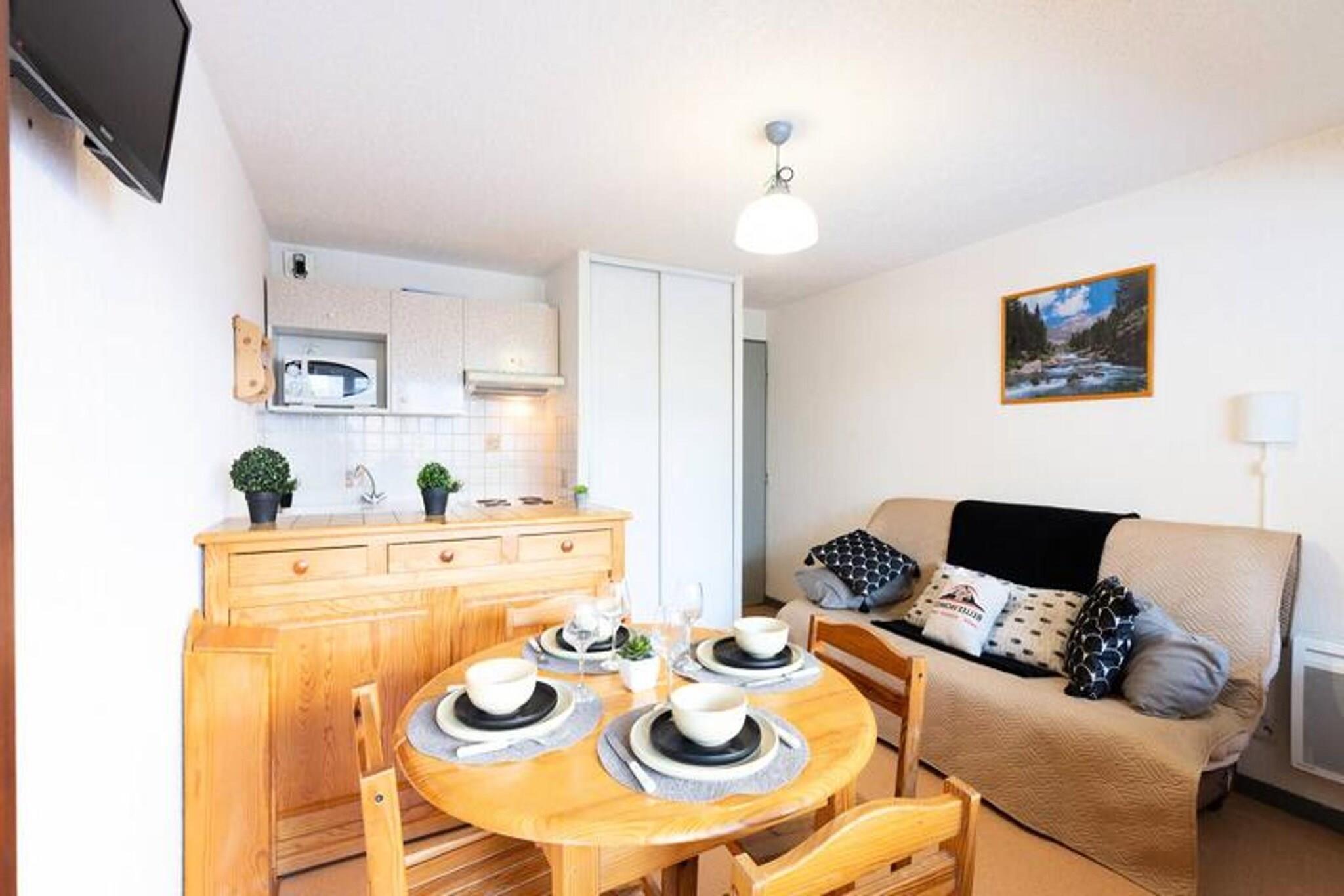 This well-appointed apartment is ideal for up to 6 guests, featuring a comfortable double bed, two single bunk beds, and a sofa bed in the living area. It is located on the first floor with a sunny south-facing balcony/terrace to enhance your stay. The property is pet-free, ensuring a clean and pleasant environment. Additional services such as cleaning, sheet rentals, and towel kits are available for your convenience. The apartment is situated close to the center of Saint Lary Soulan, with easy access to shops, cafes, and local amenities. A free shuttle service at the foot of the residence provides direct access to the cable car and new gondola in the thermal baths sector, offering seamless access to the Pla d'Adet slopes. Whether you're here for skiing or exploring the town, everything you need is within easy reach. The apartment includes a kitchenette open to the living area, equipped with essential appliances for meal preparation. The separate bathroom and toilet offer added privacy and convenience. For your comfort, the accommodation also features private parking and a ski locker, making your stay even more hassle-free while you enjoy the mountains.