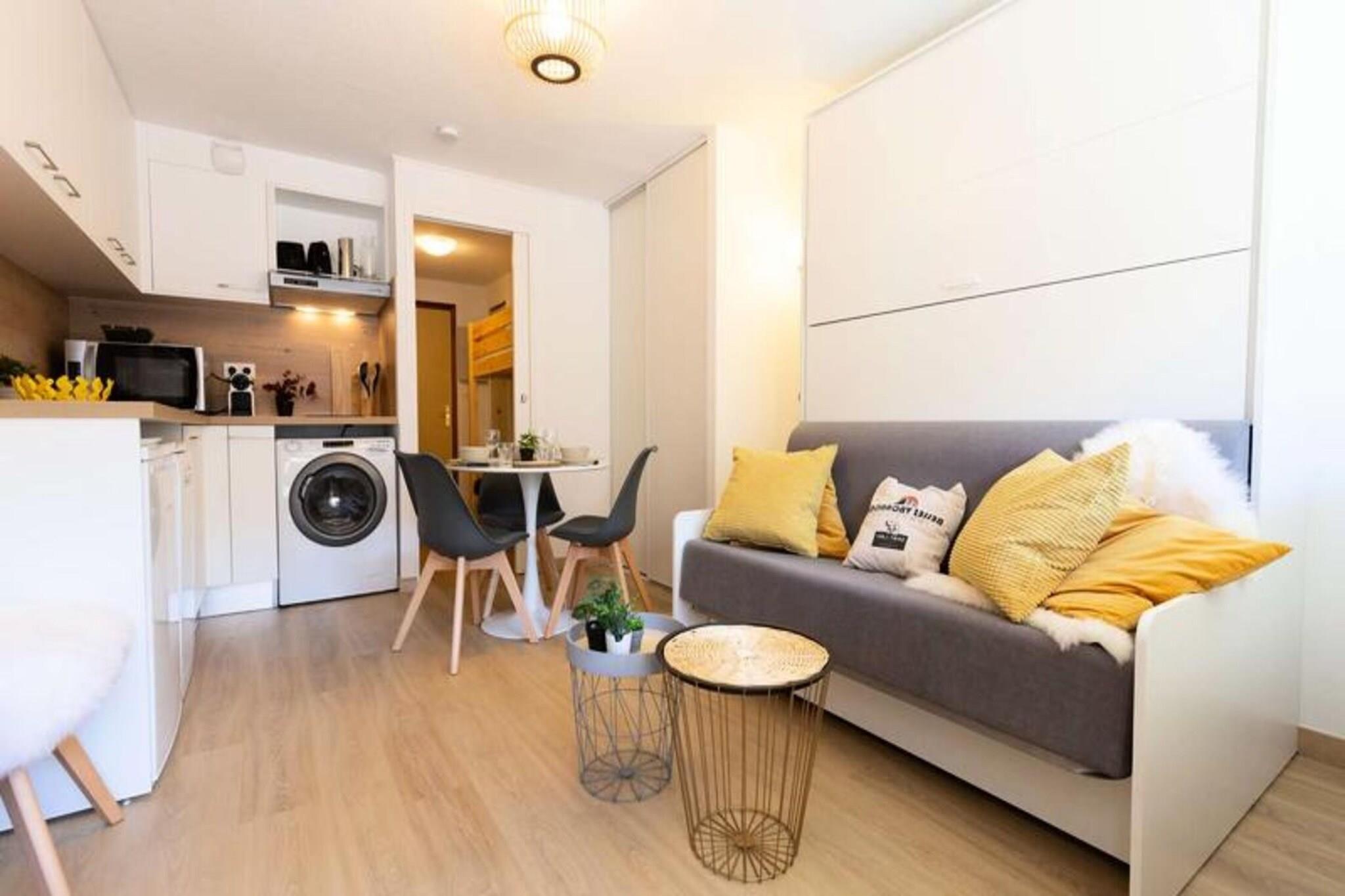 This cozy studio apartment accommodates up to 4 people, featuring two bunk beds in the hallway and a double fold-down bed in the main living area. The apartment is not pet-friendly, ensuring a peaceful environment for all guests. It is equipped with a television and has a ski locker for your convenience, making it an ideal choice for winter sports enthusiasts. Located just a short walk from local shops and the cable car, this apartment offers easy access to all the essential amenities. A free shuttle stop is conveniently located in front of the residence, providing direct access to the cable car and the new gondola in the thermal baths sector, granting easy access to the Pla d'Adet slopes. Visitors will also find nearby cafes, restaurants, and markets, perfect for exploring the local culture. The apartment features an equipped kitchenette with essential appliances, including a mini-oven and microwave, so you can prepare your meals comfortably. The separate bathroom and toilet add convenience and privacy. For added comfort, the apartment offers options for Wi-Fi box rental, and there is also a cleaning package and sheet rentals available upon request.