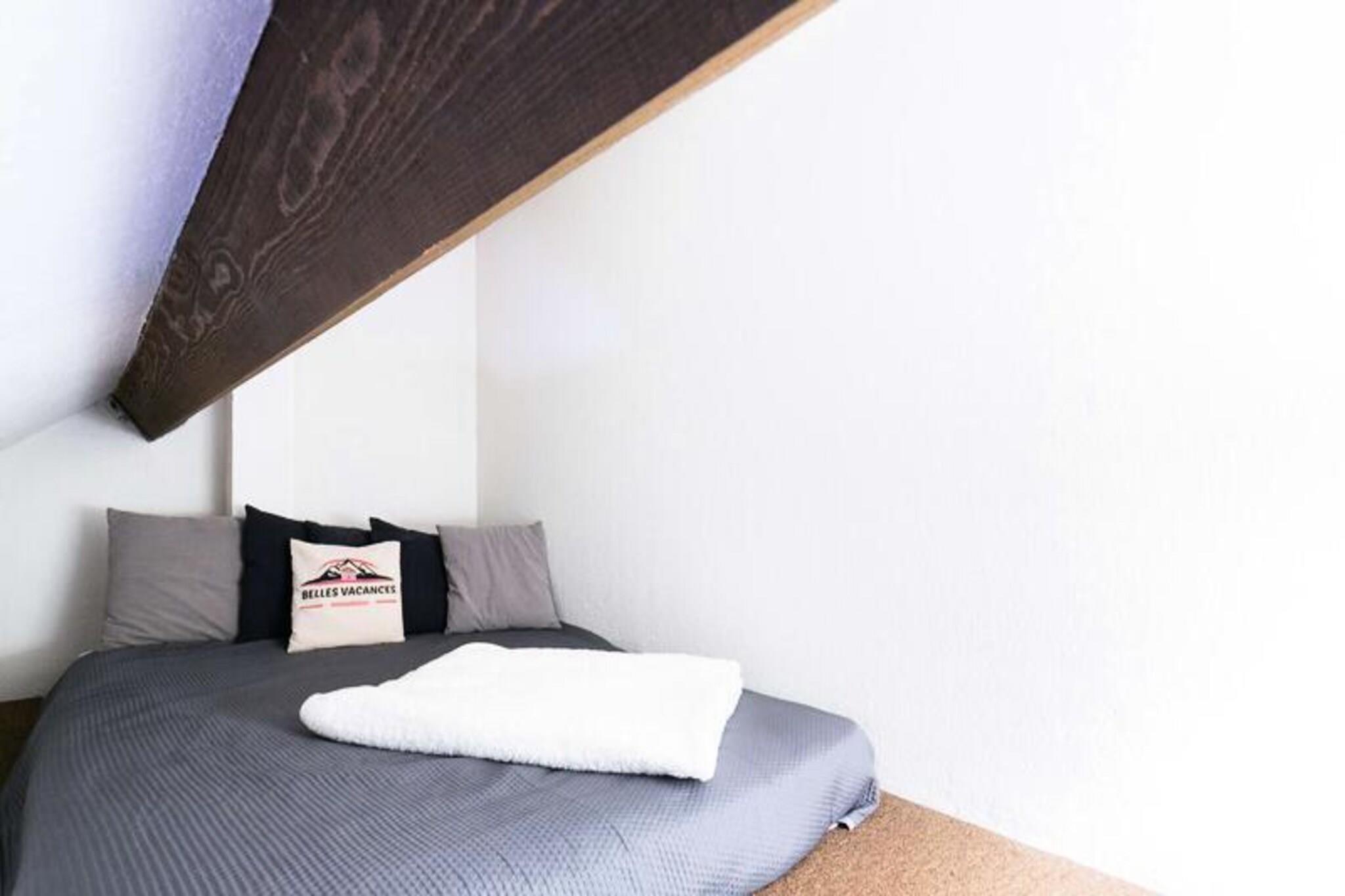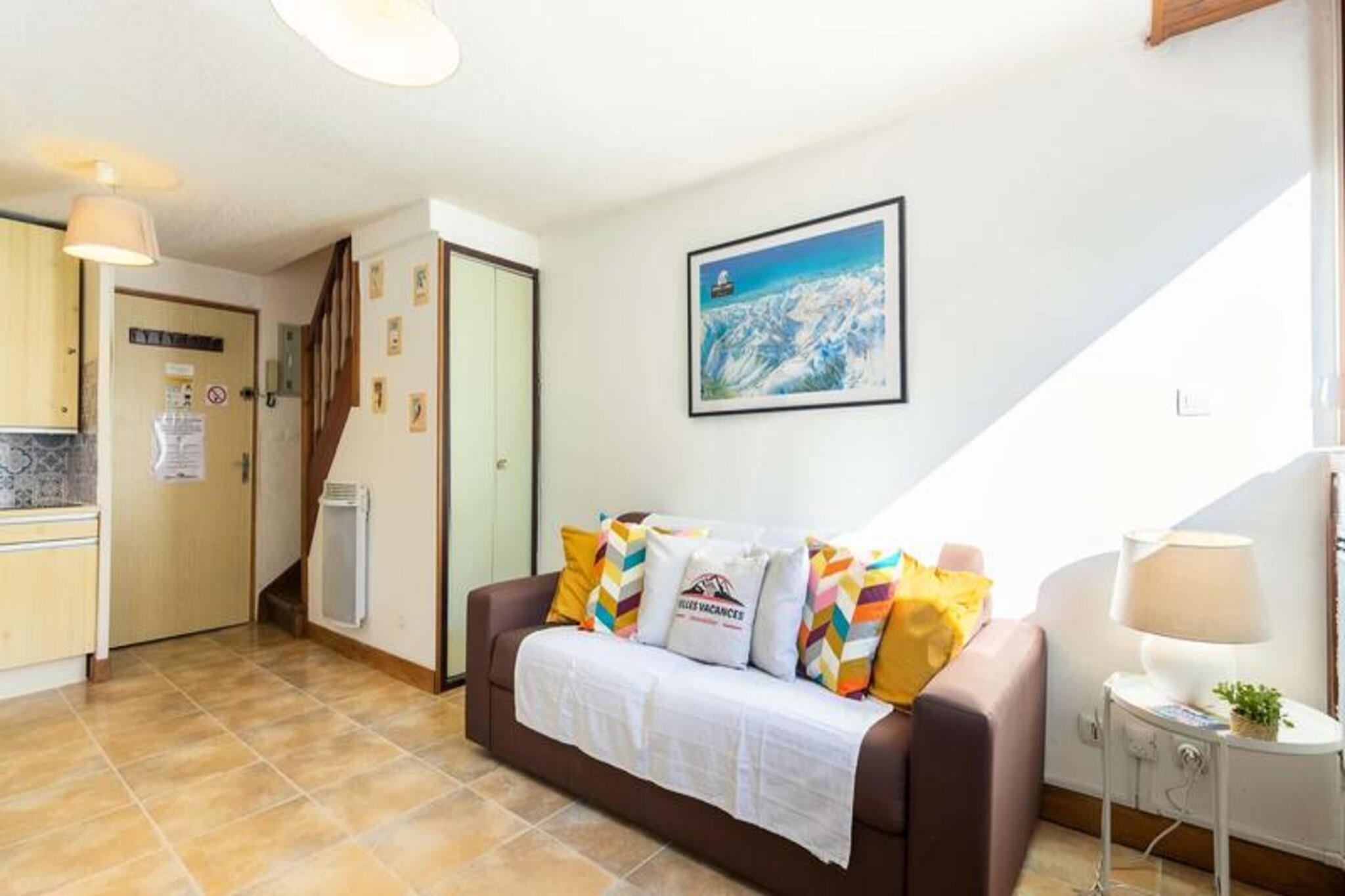 This cozy duplex apartment is ideal for 4 people, featuring a comfortable living area with a double sofa bed and TV. The upstairs bedroom is furnished with 2 single beds, perfect for small families or friends. While the apartment is not pet-friendly, it offers essential amenities such as heating, a bathroom with a toilet and sink, and a wardrobe in the entrance for your convenience. The apartment also includes a ski locker for your gear. Situated close to the village center, this apartment offers easy access to the local shops, cafes, and markets, where you can explore local goods and enjoy mountain hospitality. The cable car is also nearby, allowing you to quickly access the slopes. With municipal parking available just outside, you can park your vehicle with ease during your stay. The apartment boasts a fully equipped kitchenette with a ceramic hob, electric oven, and microwave, providing everything you need to prepare meals at your convenience. The living area opens onto a balcony with east-facing views, perfect for enjoying the fresh mountain air.