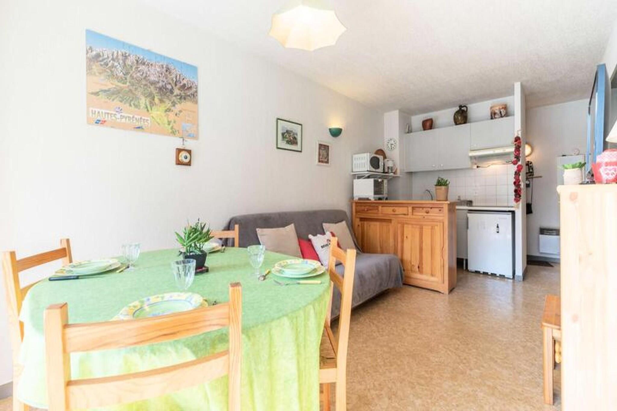 This charming apartment is ideal for up to 4 guests, offering a cozy and comfortable stay. The bedroom features a comfortable double bed, while the second sleeping area includes a convertible sofa. It is not pet-friendly, ensuring a peaceful environment. The apartment also includes a private parking space, so you can leave your car safely parked during your stay. Additional services such as sheet rentals, towel kits, and Wi-Fi box rentals are available for your convenience. Conveniently located in a serene and green environment, the apartment is just a short walk from the heart of Saint Lary Soulan, where you’ll find a variety of shops, cafes, and markets. The area is also home to the renowned thermal baths and Sensoria district, making it an ideal spot for relaxation. The free shuttle stop nearby provides easy access to the ski slopes, with the gondola and cable car offering quick transport to the mountain. The apartment’s bright living room opens onto a balcony, providing the perfect space to relax. A fully equipped kitchen is open to the living area, featuring a dining table that comfortably seats 4. The kitchen is complete with modern amenities, including a microwave and dishwasher. The bathroom is functional with a separate WC for added convenience. With its ideal location, comfortable amenities, and peaceful atmosphere, this apartment is perfect for your mountain getaway.