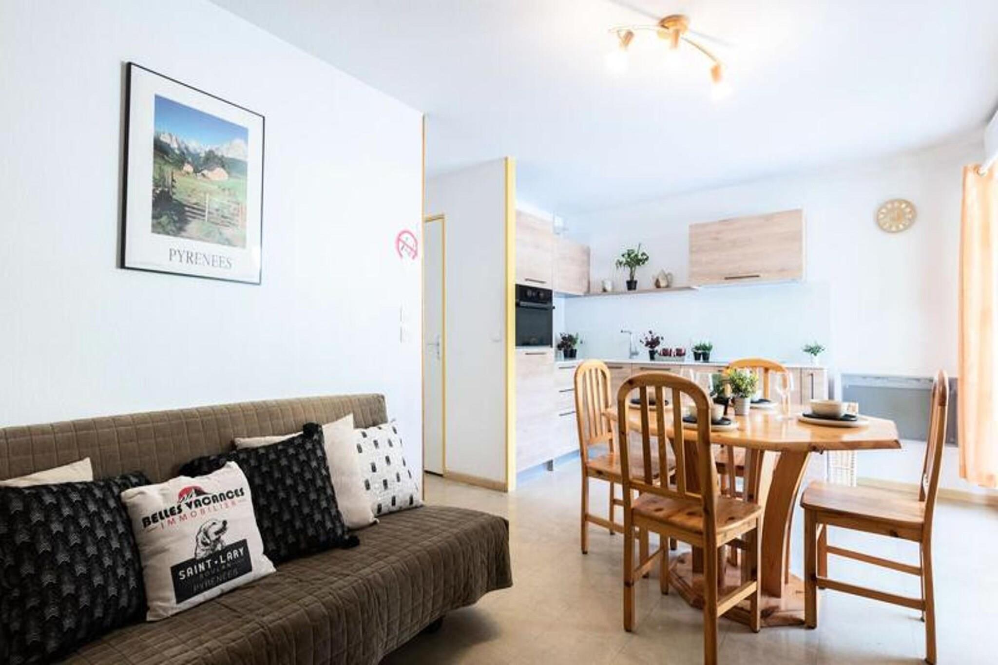Dieses geräumige Apartment befindet sich im 1. Stock eines gut gelegenen Wohnhauses und bietet bequem Platz für bis zu 7 Personen. Es verfügt über zwei Schlafzimmer mit Doppelbetten, eine Kabine mit einem Einzelbett und ein Wohnzimmer mit einem Schlafsofa und einem Fernseher. Das Apartment verfügt über einen Balkon mit Westausrichtung, der den Gästen eine atemberaubende Aussicht ermöglicht. Die Unterkunft ist nicht haustierfreundlich, sodass allen Gästen eine ruhige und komfortable Umgebung geboten wird. Für zusätzlichen Komfort stehen Ihnen außerdem ein Skiraum und ein Fahrradraum zur Verfügung. Der Außenparkplatz Nr. 14 ist für Ihren Aufenthalt inklusive. Die Wohnung ist ideal gelegen und bietet einfachen Zugang zu nahe gelegenen Sehenswürdigkeiten, darunter das Stadtzentrum von Saint Lary und verschiedene lokale Cafés und Geschäfte. Am Fuße der Residenz verkehrt bequem ein kostenloser Shuttle, der Sie direkt zu den Pisten sowie zur Seilbahn und Gondel im Thermalbadbereich bringt. Egal, ob Sie sich für Skifahren, Schneeschuhwandern oder andere Bergaktivitäten interessieren, nur wenige Schritte von Ihrer Haustür entfernt finden Sie zahlreiche Möglichkeiten für Abenteuer. Das Apartment verfügt über eine ausgestattete Küchenzeile, die sich ideal für die Zubereitung von Mahlzeiten während Ihres Aufenthalts eignet. Der Waschraum verfügt für Ihren Komfort über eine Dusche, ein Waschbecken und eine separate Toilette. Zu den weiteren Annehmlichkeiten gehört die Vermietung einer WLAN-Box sowie die Möglichkeit, für zusätzlichen Komfort ein Handtuchset und Bettwäsche zu mieten. Die Residenz ist mit einer Heizung ausgestattet, die für eine gemütliche Atmosphäre während Ihres Aufenthalts sorgt. Egal, ob Sie einen ruhigen Rückzugsort oder einen Ausgangspunkt für Aktivitäten in den Bergen suchen, dieses Apartment bietet alles, was Sie für einen angenehmen Urlaub benötigen.