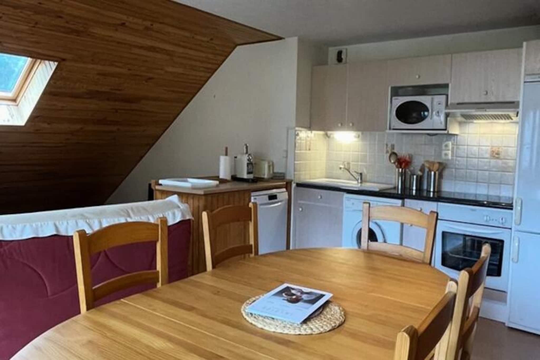 Hoch über dem malerischen Pyrenäendorf Saint-Lary-Soulan bietet dieses helle und geräumige Apartment einen ruhigen Rückzugsort mit atemberaubendem Bergblick. Ob Sie einen aktiven Urlaub oder eine erholsame Auszeit suchen – der Charme der französischen Pyrenäen umgibt Sie auf Schritt und Tritt. Genießen Sie vom sonnigen Balkon aus die Schönheit der Alpenlandschaft bei einer Tasse Kaffee am Morgen oder entspannen Sie nach einem erlebnisreichen Tag. Die Unterkunft bietet die perfekte Balance aus Komfort und Bequemlichkeit für Familien oder Freundesgruppen. \n\nIm Inneren verfügt das Apartment über zwei große Schlafzimmer mit Doppelbetten und viel Stauraum, die erholsame Nächte für bis zu sechs Gäste garantieren. Das einladende Wohnzimmer, lichtdurchflutet dank seiner Südausrichtung, bietet ein gemütliches Schlafsofa und direkten Zugang zum Balkon. Eine voll ausgestattete Küchenzeile mit modernen Geräten wie Geschirrspüler, Waschmaschine, Kühl-/Gefrierkombination, Backofen, Mikrowelle, Induktionskochfeld und Nespresso-Kaffeemaschine lädt zum Kochen und Genießen ein. Der sonnige Balkon mit Gartenmöbeln lädt zum Genießen von Mahlzeiten oder Aperitifs ein, während Sie die umliegenden Gipfel und das Dorf bewundern. \n\nDieses Apartment befindet sich in der Wohnanlage LES PORTES DU SOLEIL und bietet bequemen Zugang zu Geschäften, einem Winter-Shuttlebus, einem Skiraum und einem Parkplatz. Ob Sie die unberührten Pisten hinunterfahren, die üppigen Wanderwege erkunden oder einfach nur inmitten einer atemberaubenden Landschaft entspannen möchten – alles, was Sie brauchen, ist in unmittelbarer Nähe. Die Nichtraucherunterkunft ist sorgfältig gepflegt. Bettwäsche und Reinigungsservice sind optional verfügbar. \n\nEntdecken Sie den Zauber von Saint-Lary-Soulan, wo die majestätische Schönheit der Pyrenäen und das lebendige Dorfleben unvergessliche Erinnerungen schaffen. Von aufregenden Outdoor-Abenteuern bis hin zu ruhigen Momenten auf dem Balkon – dieses Apartment ist Ihr Tor zu einem außergewöhnlichen Urlaubserlebnis.