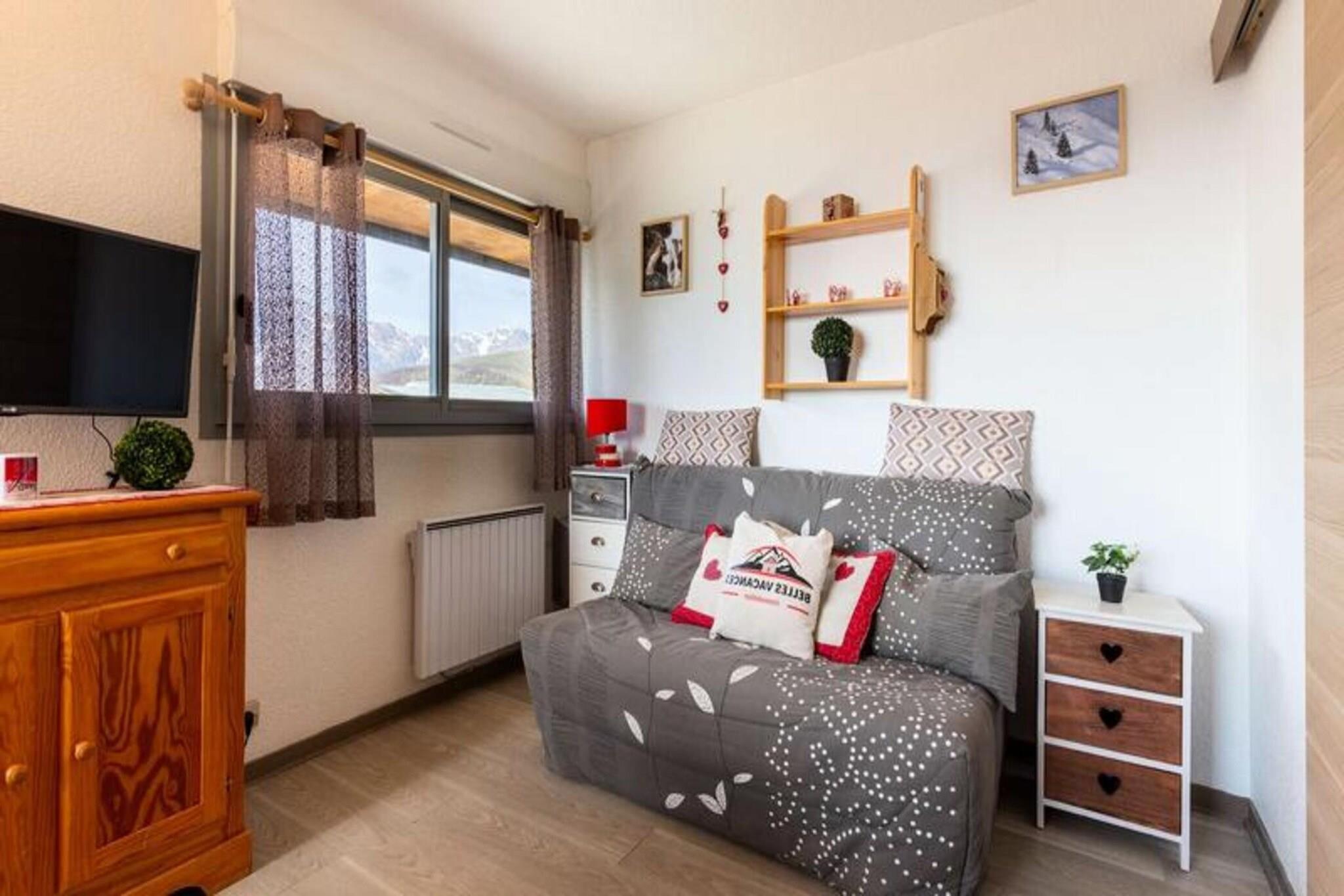 Dieses gemütliche Apartment ist ideal für eine Gruppe oder Familie mit bis zu vier Personen und bietet direkten Zugang zu den Pisten, sodass Sie Ihre Zeit in den Bergen optimal nutzen können. Ein großes Fenster bietet einen atemberaubenden Blick auf die Pyrenäen und erfüllt den Raum mit natürlichem Licht und Ruhe. Das Anwesen ist sorgfältig für einen komfortablen Aufenthalt konzipiert und verfügt über eine Heizung, die für Wärme und Entspannung sorgt. Bitte beachten Sie, dass Haustiere nicht gestattet sind, um eine saubere und ruhige Umgebung für alle Gäste zu gewährleisten. Nur 100 Meter von den Pisten entfernt ist dieses Anwesen ein Traumziel für Ski- und Snowboardbegeisterte. Im Umkreis von 300 Metern finden Sie eine Auswahl an Cafés, Restaurants und Geschäften, die lokale Köstlichkeiten und praktische Optionen für Ihren Aufenthalt bieten. Es erwarten Sie Outdoor-Abenteuer mit Aktivitäten wie Schneeschuhwandern, Motorschlittenfahren und Canyoning, die alle von zertifizierten Profis organisiert werden. Die lebhafte Umgebung sorgt dafür, dass egal, ob Sie Entspannung oder Abenteuer suchen, für jeden etwas dabei ist. Das Apartment verfügt über eine praktische und gut ausgestattete Küchenzeile, die sich perfekt für die Zubereitung von Mahlzeiten nach einem Tag voller Outdoor-Aktivitäten eignet. Ein eigenes Badezimmer mit Dusche, Waschbecken und Toilette sorgt für Komfort und Bequemlichkeit. Der Wohnbereich ist ein gemütlicher Rückzugsort, wo Sie entspannen und die Aussicht auf die atemberaubende Bergkette genießen können. Mit einfachem Zugang zu nahegelegenen Sehenswürdigkeiten und allen wichtigen Annehmlichkeiten ist dieses Anwesen eine ausgezeichnete Wahl für einen unvergesslichen Bergurlaub.