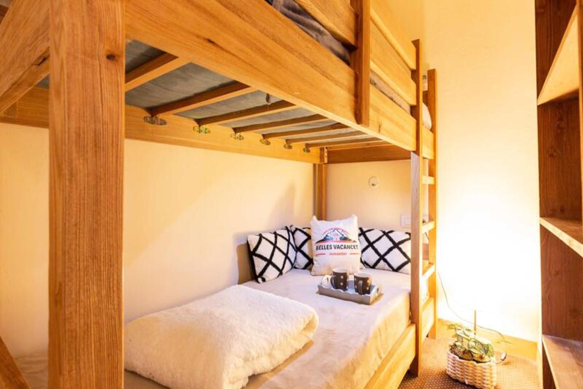 Dieses geräumige, 78 m² große Maisonette-Apartment bietet einen komfortablen Aufenthalt für bis zu 10 Gäste und verfügt über 3 Schlafzimmer und 1 Kabine. Im Erdgeschoss befinden sich ein Schlafzimmer mit 2 Etagenbetten, ein Wohnzimmer mit ausziehbarem 2-Sitzer-Schlafsofa und TV sowie eine voll ausgestattete Küche. Im Obergeschoss befinden sich zwei Schlafzimmer mit jeweils einem Doppelbett und ein Flur mit zusätzlichen Etagenbetten. Mit einem Badezimmer auf jeder Ebene sorgt das Apartment für ausreichend Platz und Komfort. Die Unterkunft ist nicht haustierfreundlich, so dass allen Gästen eine saubere und ruhige Umgebung geboten wird. Den Gästen stehen ein überdachter Parkplatz und ein Skiraum zur Verfügung. Das Apartment liegt im Herzen von Saint Lary Soulan, nur 200 Meter vom Thermo Ludique Centre und den Thermalbädern entfernt, ideal zum Entspannen nach einem aktiven Tag. Die neue Seilbahn, die einen einfachen Zugang zum Skifahren bietet, ist nur 300 Meter entfernt. Gäste können die lebendige Atmosphäre des Dorfes mit seiner Vielzahl an Geschäften, Cafés und Restaurants genießen, die alle zu Fuß erreichbar sind. Die Küche des Apartments ist komplett mit einem Cerankochfeld, einer Mikrowelle, einem Geschirrspüler und einem Kühl-/Gefrierschrank ausgestattet und eignet sich daher perfekt für die Zubereitung von Mahlzeiten. Der sonnige Balkon bietet mit Gartenmöbeln einen ruhigen Ort zum Entspannen, während die Badezimmer sowohl Bequemlichkeit als auch Komfort bieten. Zu den weiteren Annehmlichkeiten gehören ein Skiraum zur Aufbewahrung Ihrer Ausrüstung und sichere überdachte Parkplätze, damit Sie während Ihres Aufenthalts beruhigt sein können.