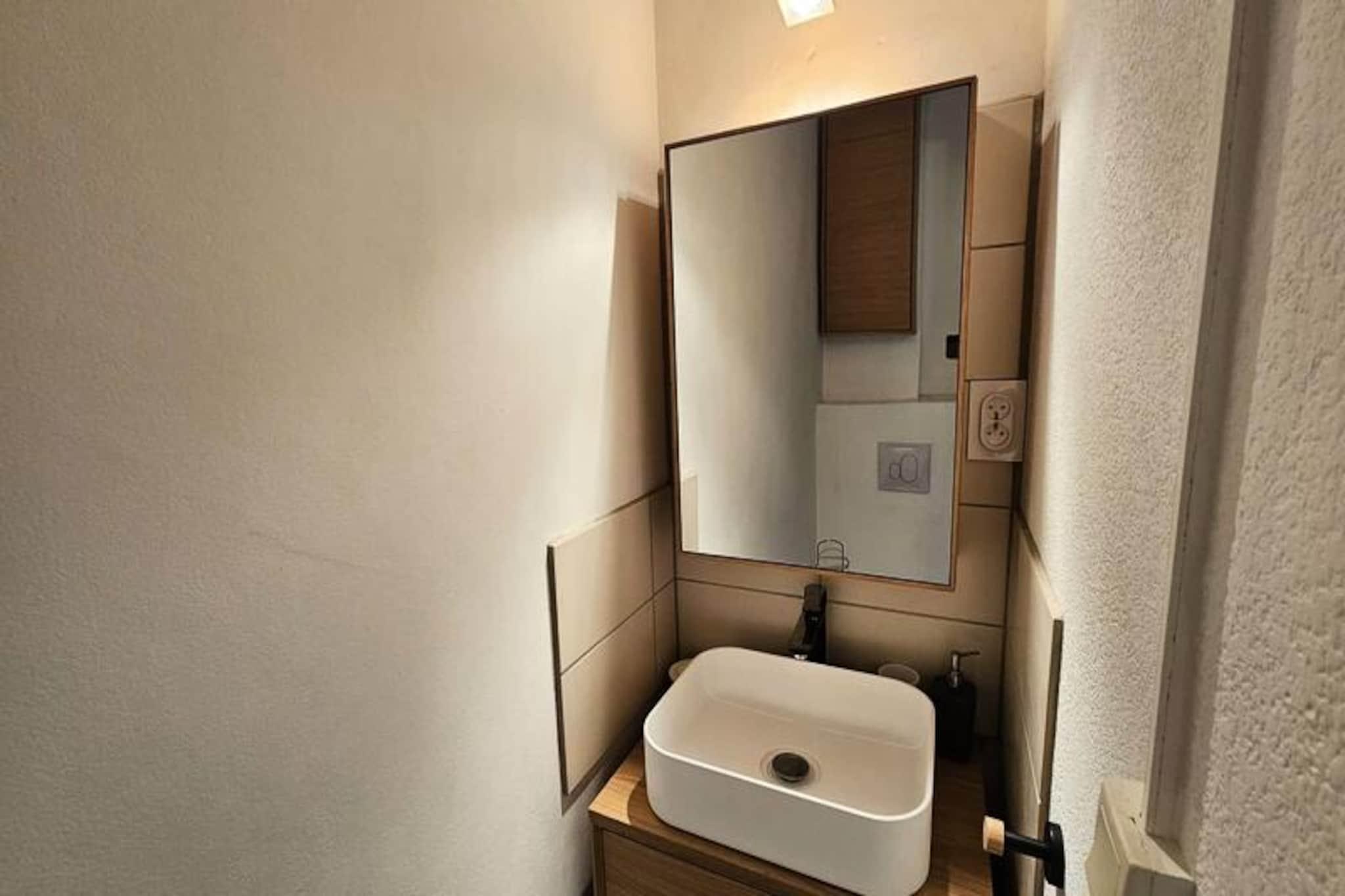 Im Herzen des malerischen Dorfes Saint-Mandrier bietet dieses moderne Studio eine Oase der Ruhe an der Côte d’Azur. Umgeben vom sanften Charme des Mittelmeers ist dieses Refugium im vierten Stock ideal für Paare oder Alleinreisende, die Ruhe und Komfort suchen. Stellen Sie sich vor, wie Sie mit der sanften Meeresbrise erwachen und Ihre Tage damit verbringen, die lebendige Kultur der Region zu entdecken oder einfach am Pool zu entspannen. Diese Unterkunft bietet Ihnen eine friedliche Oase und ist gleichzeitig in unmittelbarer Nähe zur atemberaubenden Küste. Das Studio ist durchdacht gestaltet und bietet maximalen Komfort und Funktionalität. Es verfügt über eine voll ausgestattete Küche mit allem Notwendigen, einen gemütlichen Wohnbereich mit einem 160 cm breiten Klappbett und ein Badezimmer mit viel Stauraum. Der Deckenventilator sorgt an warmen Sommertagen für eine angenehme Kühle. Zur weiteren Ausstattung gehören eine Waschmaschine, ein Kühlschrank, eine Mikrowelle, eine Kaffeemaschine und ein Fernseher, sodass Sie sich sofort wie zu Hause fühlen können. Ein Gemeinschaftsparkplatz innerhalb der sicheren Anlage trägt zusätzlich zu Ihrem Komfort bei. Für alle, die ihre Freizeit aktiv gestalten möchten, bietet die Unterkunft einen Swimmingpool (gegen Wochengebühr) und einen Tennisplatz (kostenlos). Die nahegelegene Küste lädt mit ihren unberührten Stränden, malerischen Häfen und idyllischen Wanderwegen zum Entdecken ein. Dank seiner zentralen Lage ist Saint-Mandrier der ideale Ausgangspunkt, um die Côte d’Azur zu erkunden – von den lebhaften Straßen Toulons bis zu den idyllischen Inseln, die nur eine kurze Fährfahrt entfernt liegen. Ob Sie am Pool entspannen, die natürliche Schönheit des Mittelmeers entdecken oder die lokale Küche genießen möchten: Dieses Studio bietet den perfekten Rahmen für einen unvergesslichen Urlaub. Buchen Sie noch heute Ihren Aufenthalt und erleben Sie den Zauber von Saint-Mandrier.