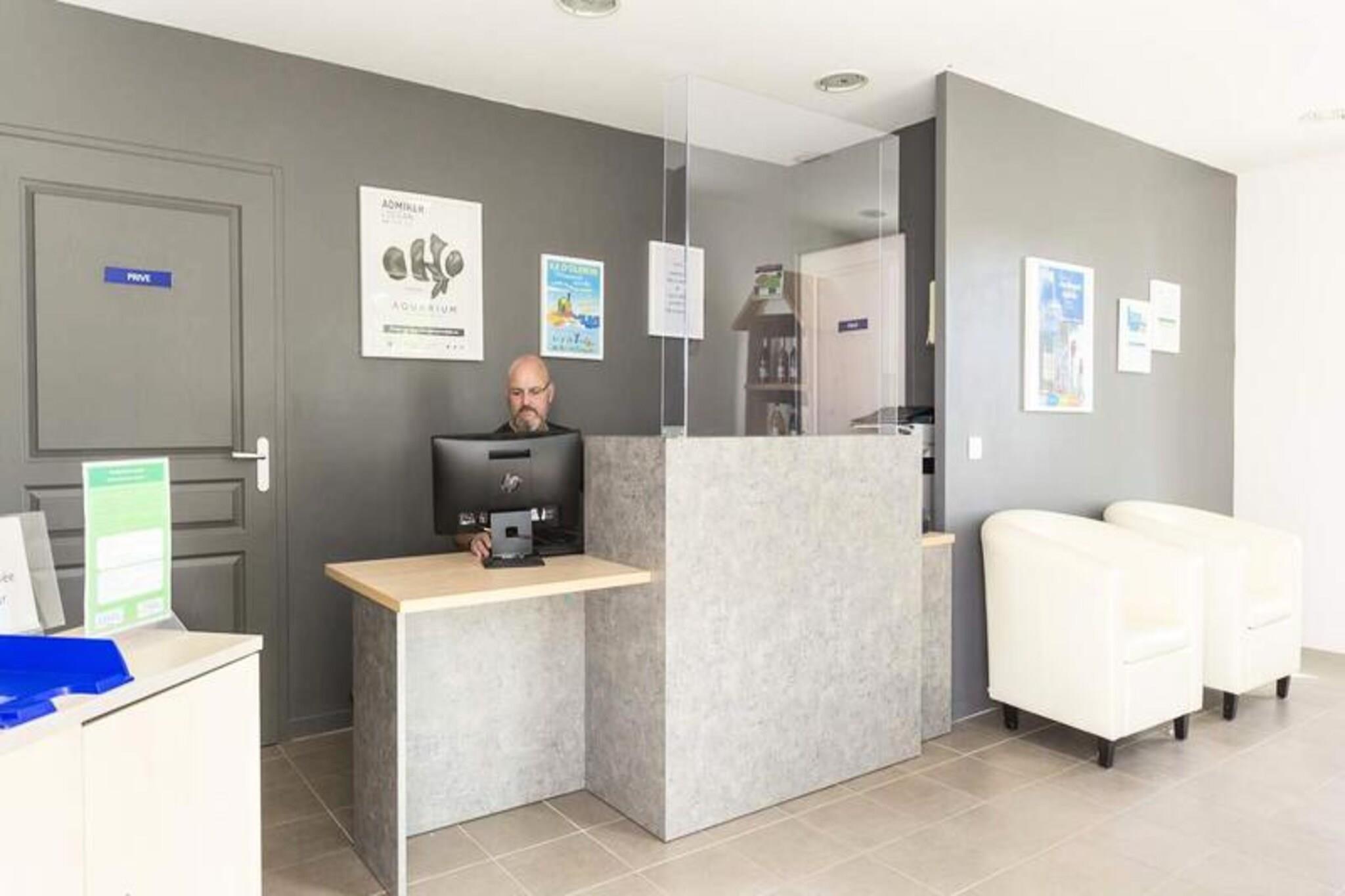 Kommen Sie und entdecken Sie den ganzen Charme der Île d'Oléron in der Résidence Odalys Terre Marine Völlig neu gelegen, 3 km vom Stadtzentrum von Saint Pierre d'Oléron und 1200 m von den Stränden entfernt. Sie werden alles genießen, was diese Touristeninsel so bezaubernd macht: ihre Fischerdörfer, ihre Wälder, ihre Strände, ihren Sonnenschein, ihre Freizeiteinrichtungen ... Die Residenz verfügt über einen beheizten Außenpool mit Planschbecken, der bis Ende September geöffnet ist, und einen Multisportbereich. In der Nähe finden Sie viele Ausflugsideen: das Château d'Oléron, Fort Boyard, der Leuchtturm Chassiron, die Austernzuchtstätte Fort Royer... 3-Zimmer-Maisonette für 6 Personen. Wohnzimmer mit 2 Ausziehbetten. Ausgestattete Küche. Schlafzimmer mit Doppelbett und Kabinenschlafzimmer mit 2 Etagenbetten. Separates Duschbad und WC. WLAN-Zugang – inklusive Haustiere erlaubt – (muss bei der Buchung angegeben werden): 70 EURO/Tier/Aufenthalt (7 Nächte und mehr) – 15 EURO/Nacht (weniger als 7 Nächte) Barbecue - Miete für 5 EURO / Tag - auf Anfrage, zahlbar vor Ort Kaution (zusätzlich) - 300 Babyset – (Bett + Hochstuhl + Badewanne): 9 €/Tag € 35 EURO/Aufenthalt Bettwäsche - inklusive Badezimmerwäsche (Frotteehandtuch + Badelaken): 10 EURO/Wechsel/Bett Endreinigung – inklusive (außer Küchenbereich und Geschirr) Parkplatz – eingezäunter Außenbereich – kostenlos bei Reservierung Schwimmbad – beheizter Außenbereich mit Planschbecken von Mitte April bis Ende September Kurtaxe (zusätzliche Gebühr) - € Bezahlung vor Ort gemäß den geltenden Tarifen (+ Ökobeitrag) Fernsehen - inklusive