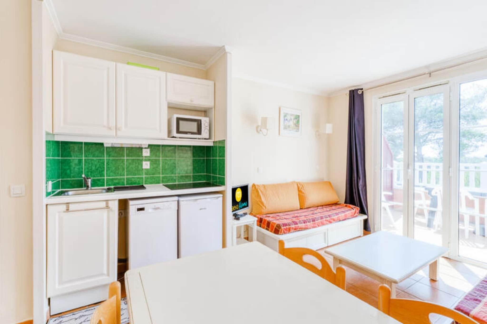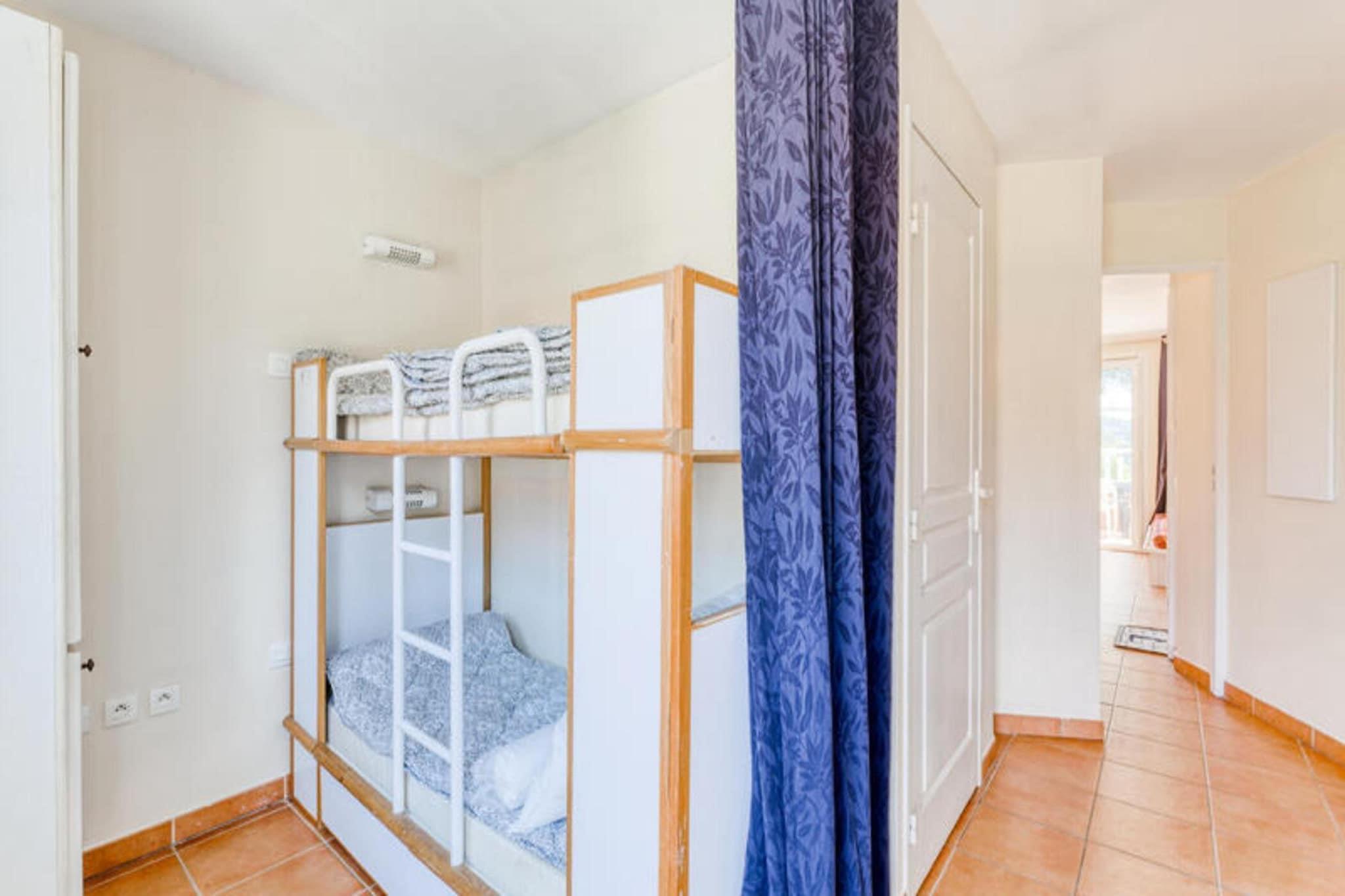 In der Nähe eines ruhigen Sees und der wunderschönen Mittelmeerküste gelegen, ist dieses gemütliche Apartment perfekt für einen erholsamen Urlaub. Mit einem bequemen Schlafsofa im Wohnbereich und Etagenbetten im Kabinenbereich bietet es Platz für bis zu vier Gäste und ist somit ideal für Familien oder kleine Gruppen. Das Apartment verfügt über einen privaten Balkon mit malerischem Waldblick, der zum Entspannen einlädt. Gäste können ihre Haustiere mitbringen und ein privater Pool exklusiv für die Bewohner sorgt für einen erfrischenden Kurzurlaub. Bequeme Parkplätze stehen in der Nähe zur Verfügung. Diese Unterkunft bietet einfachen Zugang zu lokalen Sehenswürdigkeiten, da Bars, Geschäfte, Restaurants und Grünflächen nur einen kurzen Spaziergang entfernt sind. Eine Bäckerei, eine Apotheke und ein Caterer in der Nähe befinden sich im Umkreis von 150 Metern, so dass alle Ihre Bedürfnisse bequem erfüllt werden können. Gäste können in den Nahverkehrszug einsteigen, um weitere Annehmlichkeiten und Aktivitäten zu erkunden und so einen unvergesslichen Aufenthalt in dieser pulsierenden Region zu gewährleisten. Das Apartment verfügt über eine moderne Küche im amerikanischen Stil, die mit einem Esstisch ausgestattet ist und sich ideal zum Zubereiten von Mahlzeiten eignet. Ein gepflegtes Badezimmer mit eigenem WC trägt zum Komfort bei. Optionales WLAN, Wäscheverleih und Reinigungsservice sorgen für Komfort, während die ruhige Umgebung einen ruhigen Urlaub unter der Sonne des Mittelmeers verspricht.