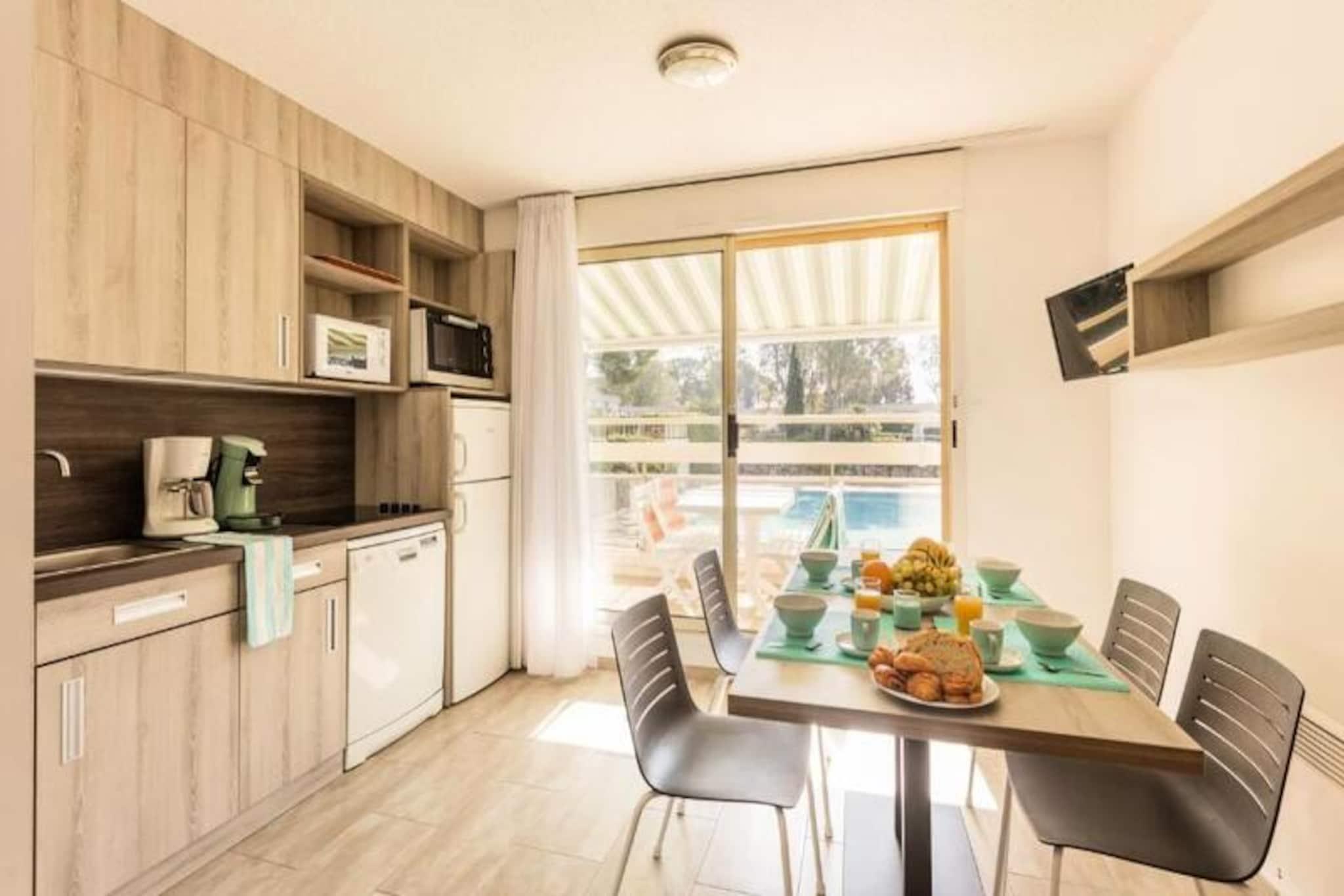 In een groene omgeving ligt de Résidence Pierre & Vacances La Corniche d'Or ligt vlakbij het landgoed Santa Lucia, op 300 meter van een charmante kleine baai en op ongeveer 1,5 km van een fijn zandstrand. Winkels liggen op 500 meter afstand en een bakkerij bevindt zich tegenover het hotel. Deze volledig gerenoveerde residentie bestaat uit 7 kleine gebouwen van 2 verdiepingen. Het heeft een onverwarmd buitenzwembad geopend van april tot begin oktober met solarium, een jeu de boulesbaan en een tafeltennistafel. Er is een wellnesscentrum in de buurt voor totale rust tijdens uw verblijf. Saint-Raphaël, een voormalig vissersdorpje, wordt gewaardeerd om het milde klimaat en de schoonheid van de kustlijn: een prachtige uitnodiging voor excursies. Woonkamer met 2 slaapbanken met onderschuifbed. Uitgeruste kitchenette. Slaapgedeelte met tweepersoonsbed. Aparte doucheruimte en toilet. Terras. Wifi-toegang - gratis in de residentielounge - extra in de accommodatie Huisdieren toegestaan ??- Wij verwelkomen uw huisdieren op vertoon van het paspoort van het dier: EURO 55/verblijf/dier. Babypakket - Babyspullen te reserveren bij de receptie. Het pakket wordt u aangeboden voor EURO 40,-/week of EURO 30,-. voor een kort verblijf van 1 tot 6 nachten. Boek tegelijk met uw accommodatie ook het Babypakket: 1 opklapbaar babybedje met 1 hoeslaken en 1 kinderstoel (vanaf 6 maanden) Let op: afhankelijk van beschikbaarheid. Het bed is zorgvuldig gekozen om comfort en veiligheid voor uw kind te garanderen. Het voldoet aan de norm NF-EN 716 met betrekking tot opklapbedden voor kinderen, die aanbeveelt om geen tweede matras aan het bed toe te voegen om elk risico op verstikking te voorkomen. Het matras wordt daarom niet meegeleverd met het opklapbed. Beddengoed - Inclusief: hoeslaken/laken, laken of dekbedovertrek en kussensloop Badkamerlinnen - Inclusief: 1 handdoek en 1 badhanddoek/persoon Eindschoonmaak - van 40 tot 55 euro; afhankelijk van het type appartement (behalve keuken en afwas) Parkeren - gratis onoverdekt, voor de woning Zwembad - Inbegrepen. onverwarmd buiten Toeristenbelasting (meerprijs) - Ter plaatse te betalen volgens het geldende tarief Televisie - Inbegrepen
