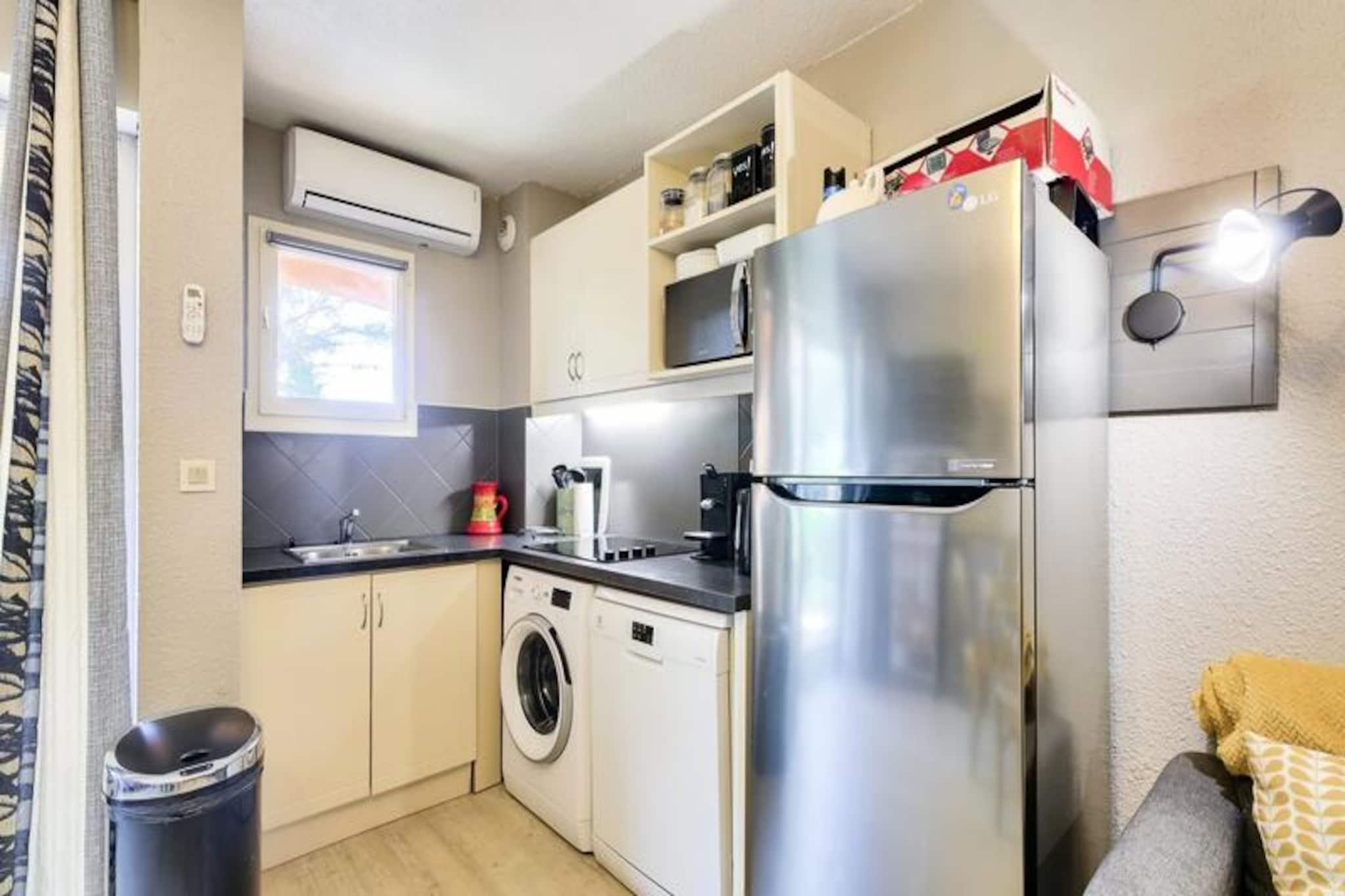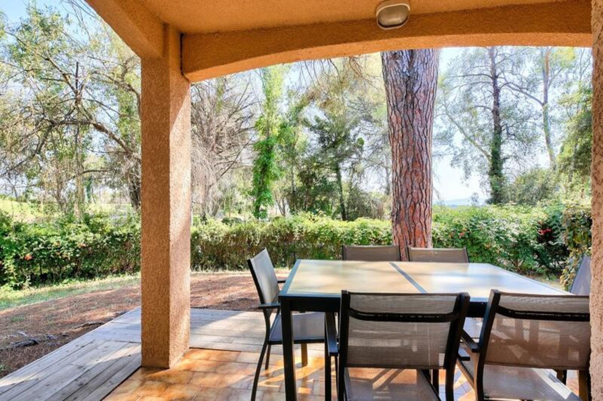 Dieses charmante, 48 m² große Apartment im Erdgeschoss bietet einen ruhigen Rückzugsort mit privatem Garten und Terrasse. Es verfügt über zwei Schlafzimmer – eines mit einem Doppelbett und das andere mit zwei Einzelbetten – sowie ein Wohnzimmer mit einem Schlafsofa. Die Wohnung ist mit Klimaanlage, TV und kostenlosen Parkplätzen im Freien ausgestattet. Haustiere sind erlaubt (gegen Aufpreis) und am Ende Ihres Aufenthalts ist ein obligatorischer Reinigungsservice erforderlich. Das Apartment liegt nur 6 km vom Zentrum von Saint-Raphaël entfernt und in der Nähe lokaler Sehenswürdigkeiten. Genießen Sie den 400 m² großen Swimmingpool und das Kinderbecken in der Residenz oder erkunden Sie den nahe gelegenen 18-Loch-Golfplatz, sechs Tennisplätze und den Wellnessbereich (nach Reservierung). Die schönen Strände sind nur 15 Autominuten entfernt und das Dorfzentrum mit Cafés, Restaurants und Märkten liegt nur einen kurzen Spaziergang von der Residenz entfernt. Das Apartment verfügt über eine Küche im amerikanischen Stil, zwei Badezimmer (Badewanne und Dusche) und ein separates WC. Genießen Sie Ihre Mahlzeiten auf der Terrasse mit Blick auf den Wald oder entspannen Sie im Garten. Zusätzliche Dienstleistungen wie WLAN und Wäscheverleih sind gegen Aufpreis verfügbar. Die Residenz bietet außerdem einen Gemeinschaftspool, der von Mai bis Oktober beheizt ist.