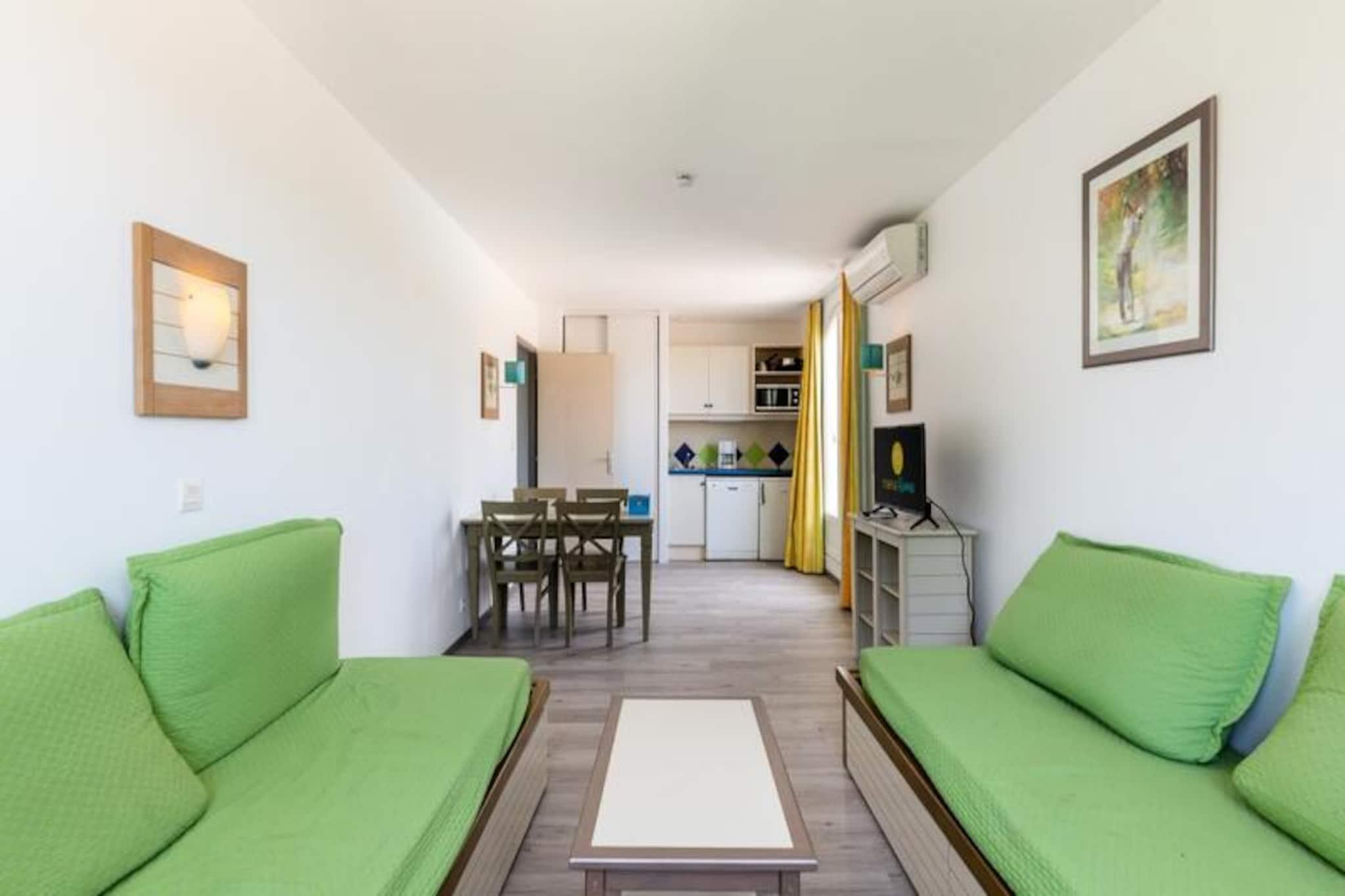 Diese charmante Ferienwohnung liegt in einer ruhigen dörflichen Umgebung und bietet einen gemütlichen Rückzugsort mit modernen Annehmlichkeiten. Die Einheit verfügt über ein Wohnzimmer mit zwei Schlafsofas, einem Esstisch mit vier Stühlen und einem voll ausgestatteten Küchenbereich. Es gibt ein Schlafzimmer mit einem Doppelbett, ein Badezimmer mit Badewanne und WC sowie einen privaten Balkon mit einem Tisch, vier Stühlen und einem Liegestuhl. Die Wohnung ist klimatisiert, verfügt über einen Fernseher und bietet Stauraum, was sie zu einem komfortablen Ausgangspunkt für Ihren Urlaub macht. Haustiere sind willkommen und WLAN ist je nach Verfügbarkeit gegen Aufpreis verfügbar. Das Anwesen liegt ideal, nur 6 km vom Herzen von Saint-Raphaël, einem charmanten alten Fischerdorf, entfernt. Die Residenz liegt nur wenige Gehminuten vom 18-Loch-Golfplatz Estérel (400 m), sechs Tennisplätzen und verschiedenen Spielhallen entfernt. Gäste können die atemberaubende 36 Kilometer lange Mittelmeerküste erkunden oder lokale Spas und Märkte besuchen. Die Residenz bietet außerdem einfachen Zugang zu den etwa 15 Autominuten entfernten Stränden und bietet so eine perfekte Mischung aus Entspannung und Abenteuer. Neben dem fantastischen Außenpool verfügt die Residenz über einen Wellnessbereich (nach Reservierung) und eine Snackbar, die im Juli und August geöffnet ist. Das Apartment verfügt über eine voll ausgestattete Küche und einen möblierten Balkon mit Blick auf den Pool, sodass Sie die schöne Umgebung genießen können. Für ein Auto pro Unterkunft steht je nach Verfügbarkeit ein kostenfreier Parkplatz zur Verfügung.