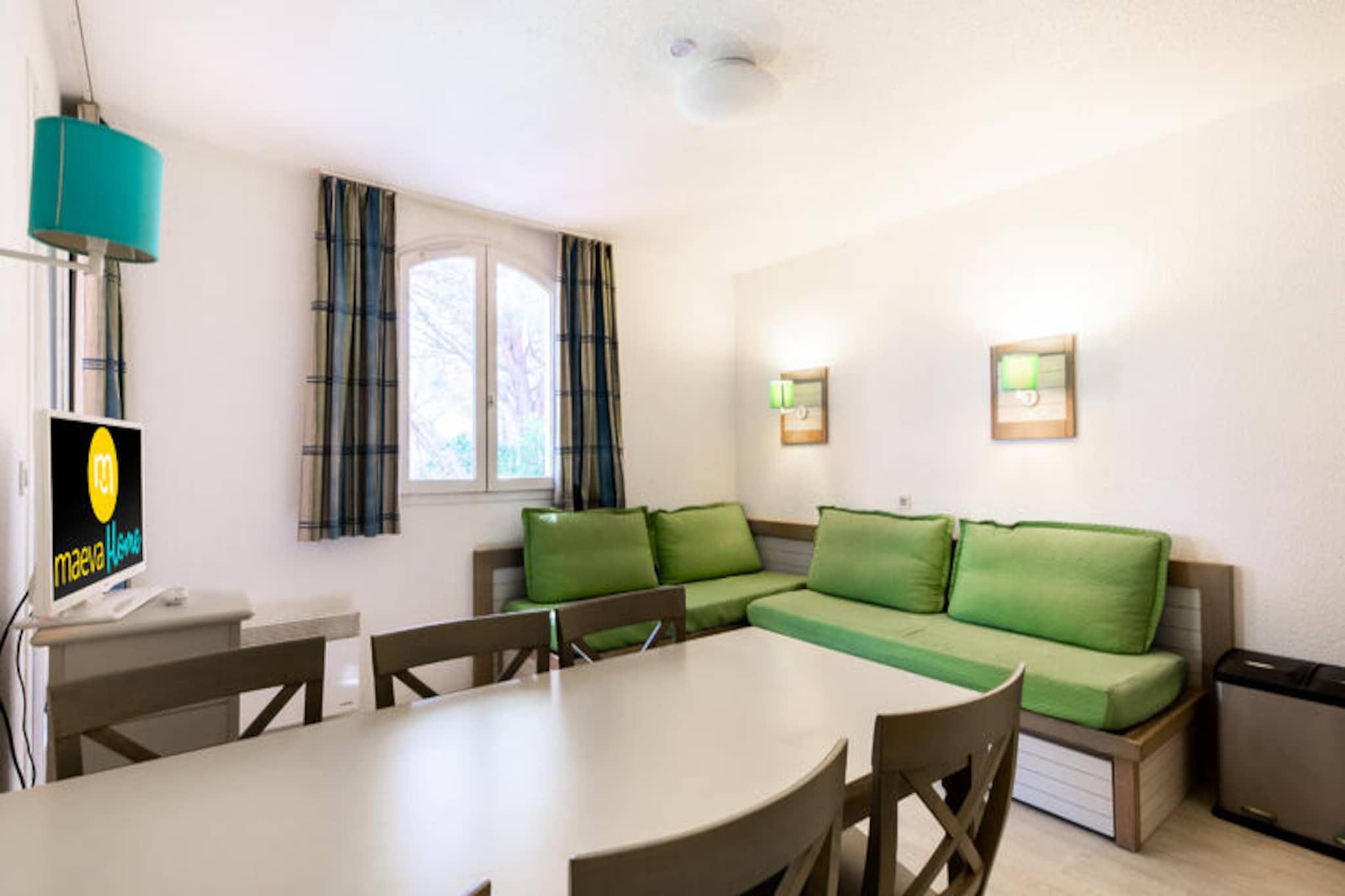 Dieses gemütliche Apartment bietet einen ruhigen Rückzugsort mit einem Doppelbett im Schlafzimmer, Etagenbetten im Kabinenbereich und einem ausziehbaren Schlafsofa. Es ist haustierfreundlich, es können jedoch zusätzliche Gebühren anfallen. Der nach Osten ausgerichtete Balkon bietet einen ruhigen Blick auf den Wald und lädt zum Entspannen ein. Bettwäsche und Handtücher sind gegen Aufpreis erhältlich und die Unterkunft verfügt auch über einen kostenlosen Parkplatz. Dieses Apartment liegt nur 6 km vom Zentrum von Saint-Raphaël entfernt und in der Nähe von örtlichen Cafés, Märkten und Geschäften. Der 18-Loch-Golfplatz Estérel und sechs Tennisplätze sind nur 400 Meter entfernt und die Mittelmeerküste ist nur eine kurze Autofahrt entfernt. Gäste können auch den Wellnessbereich (nach Reservierung) und die Außenpools nutzen, die sich ideal zum Entspannen nach einem erlebnisreichen Tag eignen. Im Inneren verfügt das Apartment über eine Küche im amerikanischen Stil, einen Esstisch und ein gepflegtes Badezimmer mit Dusche und eigenem WC. Die Residenz bietet eine Reihe zusätzlicher Dienstleistungen, darunter kostenlose Parkplätze, Fernseher und Zugang zu Gemeinschaftseinrichtungen wie einem beheizten Außenpool. Bitte beachten Sie, dass eine obligatorische Endreinigungsgebühr anfällt und WLAN gegen Aufpreis verfügbar ist.