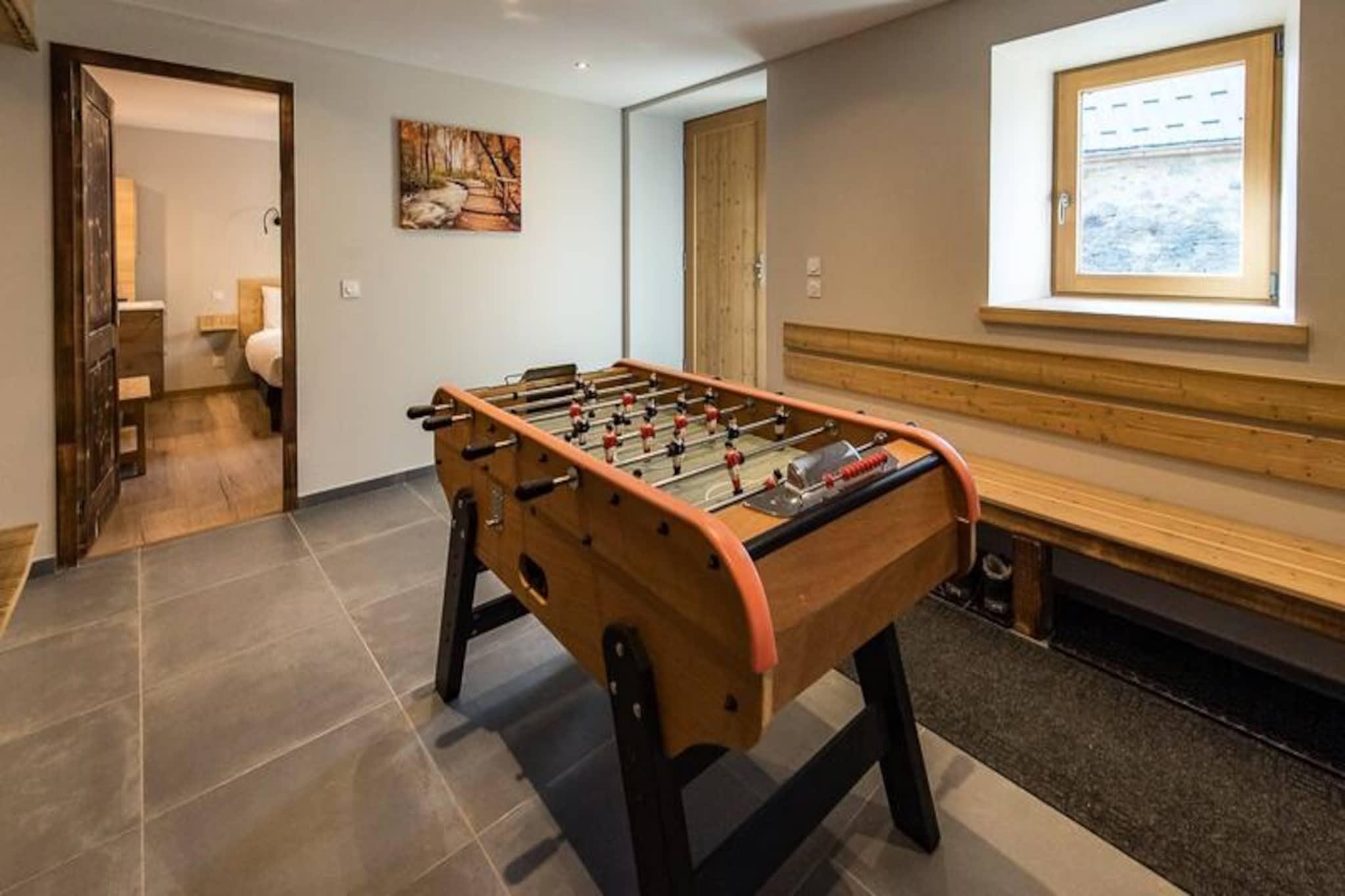 Inmitten des malerischen Charmes von Saint Sorlin d'Arves lädt Sie das Chalet La Parenthèse zu einem perfekten Alpenurlaub ein. Gelegen in der ruhigen Gegend von Pierre Aigée, vereint dieses Chalet rustikale Eleganz mit modernem Komfort und bietet atemberaubende Ausblicke auf die umliegenden Gipfel. Ob Sie im Winter zum Skifahren oder im Sommer zum Wandern kommen – die Lage des Chalets ermöglicht Ihnen einen einfachen Zugang zu allen Abenteuern, die die französischen Alpen zu bieten haben. Ein kostenloser Shuttlebus, der nur 50 Meter oberhalb des Chalets hält, bringt Sie direkt zu den Pisten und sorgt so für einen reibungslosen und stressfreien Urlaub. Treten Sie ein und entdecken Sie eine Oase der Wärme und Entspannung. Im Erdgeschoss befinden sich ein Skiraum mit Skischuhtrocknern, ein Waschraum und ein gemütliches Doppelzimmer mit eigenem Waschbecken und Ankleidebereich. Entspannen Sie sich nach einem aufregenden Tag auf der Piste im Whirlpool oder verbringen Sie gesellige Stunden mit der Familie am Tischfußballtisch. Im ersten Stock erwartet Sie ein großzügiger, offener Wohnbereich mit Essbereich und einer voll ausgestatteten Küche – ideal für die Zubereitung herzhafter Mahlzeiten. Ein großer Balkon und eine nach Norden ausgerichtete Terrasse bieten sonnige Plätze, um die alpine Atmosphäre zu genießen. Im Obergeschoss befinden sich drei charmante Doppelzimmer, ein Schlafsaal mit acht Einzelbetten, ideal für Kinder, und luxuriöse Badezimmer für höchsten Komfort. \n\nSaint Sorlin d'Arves ist das Tor zu unvergesslichen Erlebnissen. Von aufregenden Skipisten bis hin zu malerischen Wanderwegen – die Region bietet Abenteurern und Naturliebhabern gleichermaßen etwas. Der nahegelegene städtische Parkplatz und die Partnerschaft des Chalets mit lokalen Skidiensten machen die Organisation unkompliziert, sodass Sie sich ganz auf Ihre Urlaubserinnerungen konzentrieren können. Mit Skipässen, die Ihnen direkt ans Haus geliefert werden, und Ermäßigungen auf den Ausrüstungsverleih beginnt Ihr Urlaub mit Ihrer Ankunft. \n\nDas Chalet La Parenthèse ist mehr als nur eine Unterkunft; es ist ein Rückzugsort, an dem wertvolle Momente mit Familie und Freunden Wirklichkeit werden. Lassen Sie die Schönheit der Alpen und die Gemütlichkeit dieses Chalets einen Urlaub schaffen, den Sie für immer in Erinnerung behalten werden.