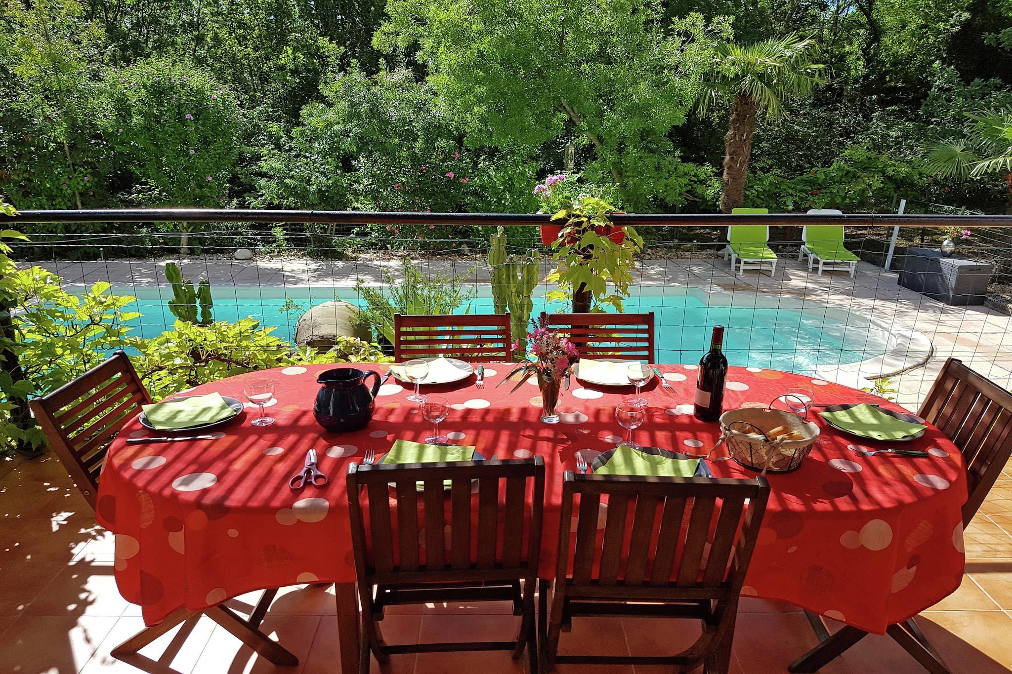 Dieses freistehende Ferienhaus im ruhigen Dorf Saint-Brès bietet einen ruhigen Rückzugsort im Herzen des Gard, nahe der Grenze zur Ardèche. Umgeben von bewaldeten Hügeln liegt das Anwesen auf einem großen, umzäunten Grundstück und verfügt über einen privaten Swimmingpool, Tischtennisplatten und eine Schaukel – perfekt für Familien oder Freunde, die Entspannung und Spaß im Freien suchen. Der grüne Garten und die geräumige Terrasse bieten eine atemberaubende Aussicht und eine ruhige Umgebung für sommerliche Grillabende. Das Haus ist elegant, makellos und gepflegt. Entspannen Sie nach einem erfrischenden Bad auf einer Sonnenliege oder genießen Sie eine Mahlzeit auf der schattigen Terrasse. Die Lage ist ideal, um die Cevennen und die Ardèche zu erkunden: von Wandern und Kanufahren bis hin zu Weintouren und Museen. Zu den Sehenswürdigkeiten zählen der Pont d’Arc (30 km), die Grotte de La Cocalière (4 km) und der berühmte Pont du Gard (40 km). Nahegelegene Städte wie St. Ambroix (3 km) und Anduze (37 km) bieten Charme und Kultur. Dieses preisgekrönte Anwesen verspricht einen unvergesslichen Aufenthalt. Strom (150 kWh pro Woche) ist inklusive, bei zusätzlichem Verbrauch. Das Laden von Elektro- oder Hybridfahrzeugen ist nicht gestattet. Ob Sie die Natur erkunden oder am Pool entspannen – diese Villa ist der perfekte Ausgangspunkt, um Südfrankreich zu entdecken.