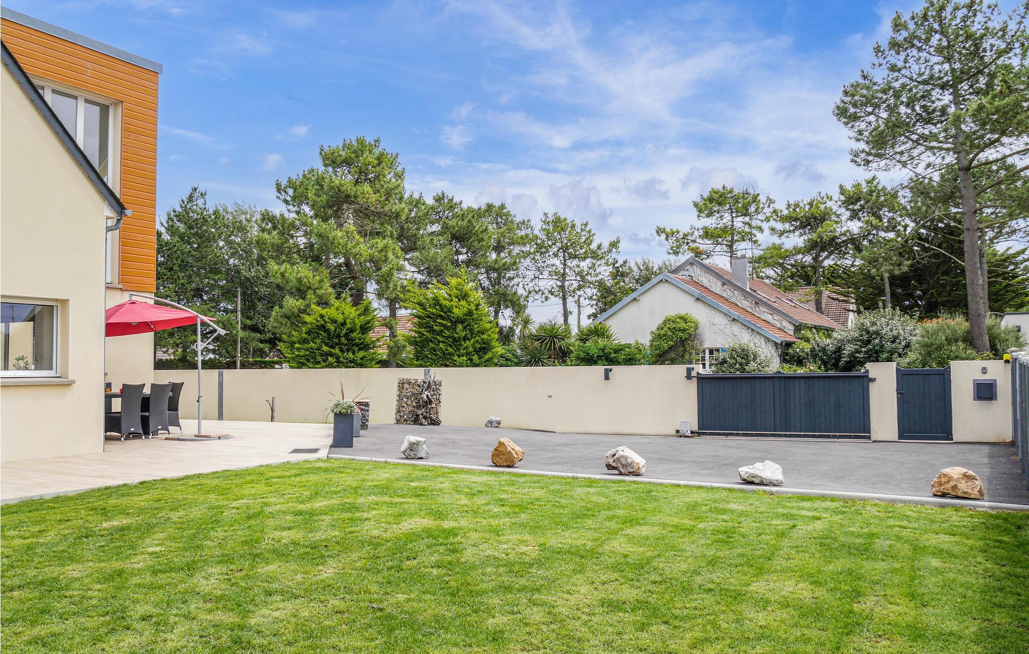 Eine weitläufige und sonnenverwöhnte Terrasse mit hochwertigen Gartenmöbeln umrandet dieses moderne und sehr komfortable Haus, das sich für einen erholsamen Urlaub bestens eignet. Nur 200 m trennen das sehr helle Ferienobjekt von einem wunderschönen, lang gestreckten, feinen Sandstrand. Saint-Germain-sur-Ay, das sich bis hin zum Staatsforst von Lessay erstreckt, lädt zu sehr schönen Spaziergängen ein. Beobachten Sie dabei die grasenden Schafherden auf den Salzwiesen und kosten Sie anschließend einige der wohlschmeckendsten Austern aus dem Ärmelkanal. Nach Agon-Coutainville mit seinem Golfplatz und seinem Kasino sind es 30 km, und nach nur weiteren 20 km erreichen Sie Utah Beach. Gelegen an den Toren der Halbinsel Cotentin gibt Ihnen dieses sehr angenehme Feriendomizil die Möglichkeit, sowohl von den Sandstränden, dem Naturpark von Cotentin und Bessin mit seinem herrlichen Marschland, den Landungsstränden der Alliierten als auch von einem Tagesausflug ab Carteret (25 km) auf die Jersey-Insel problemlos zu profitieren. An kühleren Tagen bzw. im Winter sorgt eine geothermische Heizung auf wirtschaftlich effiziente Weise für eine angenehme Raumtemperatur.