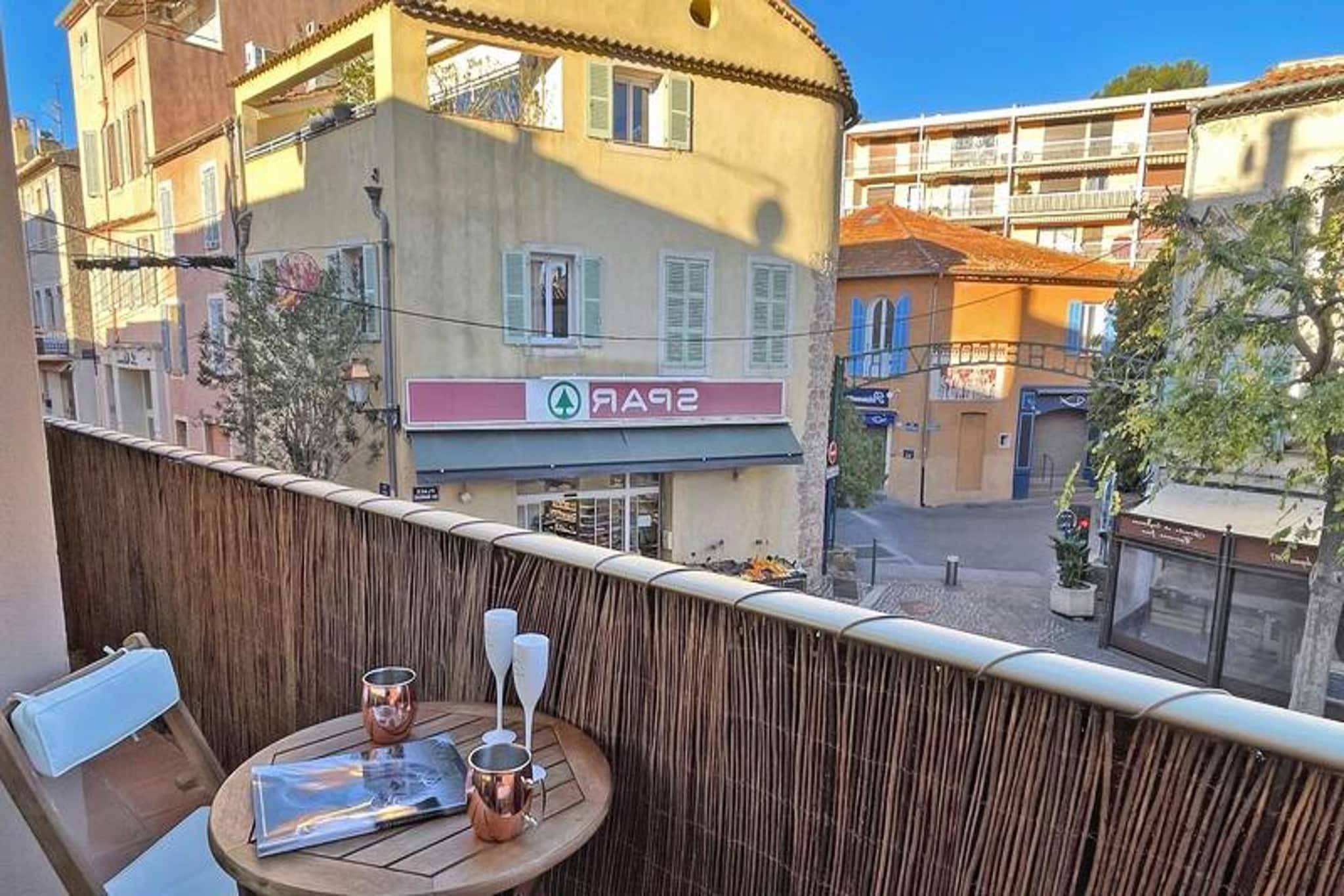 Diese charmante 50 m² große 3-Zimmer-Wohnung befindet sich im 1. Stock eines Gebäudes im Herzen der Altstadt von Sainte-Maxime mit Blick auf den Marktplatz. Es bietet Platz für bis zu 4 Personen und ist perfekt für eine Familie oder zwei Paare. Das klimatisierte Wohnzimmer verfügt über ein Sofa, einen Fernseher und einen Esstisch und bietet Zugang zu einer 7 m² großen Terrasse mit Tisch und Stühlen. Die offene Küche ist komplett ausgestattet mit Kühlschrank, Gefrierschrank, Backofen, 3-Flammen-Kochfeld, Nespresso-Kaffeemaschine, Wasserkocher, Mixer, Multifunktionsgrill, Waschmaschine und diversen Küchenutensilien, um einen komfortablen Aufenthalt zu gewährleisten. Das Apartment verfügt über zwei klimatisierte Schlafzimmer mit jeweils einem 160 cm breiten Doppelbett, Stauraum und Zugang zu einem Balkon mit Blick auf den Marktplatz. Das Badezimmer verfügt über eine Dusche im provenzalischen Stil, einen Waschtisch, einen Handtuchtrockner und ein WC. Das Apartment bietet außerdem WLAN, um in Verbindung zu bleiben. Auf Anfrage ist ein Babybett erhältlich, was es ideal für Familien mit kleinen Kindern macht. Haustiere sind nicht gestattet und in der Unterkunft ist das Rauchen im Innenbereich verboten. Die Wohnung ist günstig gelegen und bietet einfachen Zugang zu allen Annehmlichkeiten, nur wenige Schritte vom Stadtzentrum und den Geschäften entfernt. Der Strand ist nur 350 m entfernt und kostenlose öffentliche Parkplätze stehen 250 m von der Unterkunft entfernt zur Verfügung. Das Apartment ist ideal für Gäste, die gerne zu Fuß unterwegs sind, denn alles, was Sie brauchen, liegt direkt vor Ihrer Haustür. Endreinigung und Kurtaxe sind nicht im Grundpreis enthalten und es ist eine Kaution zu hinterlegen.