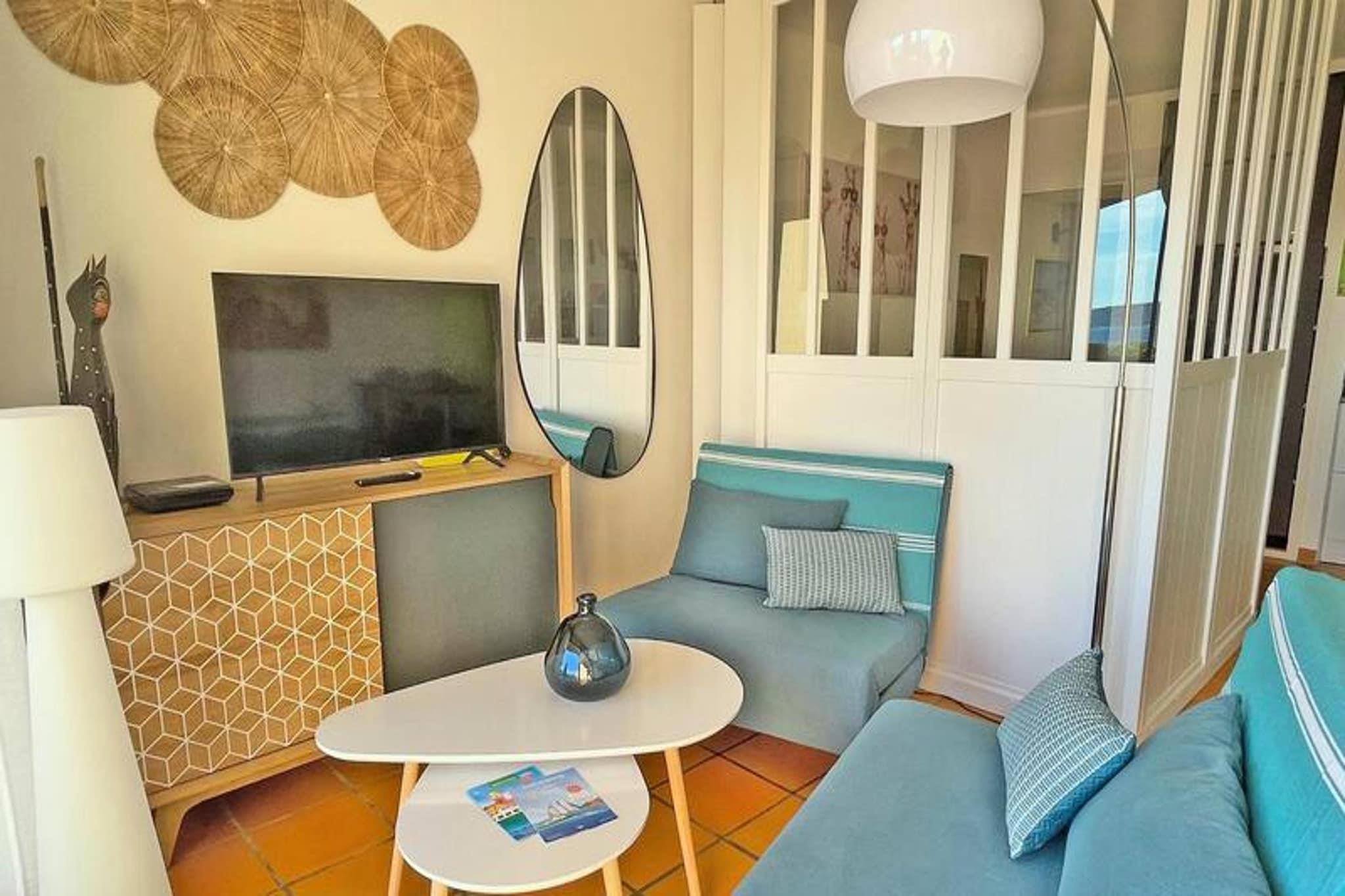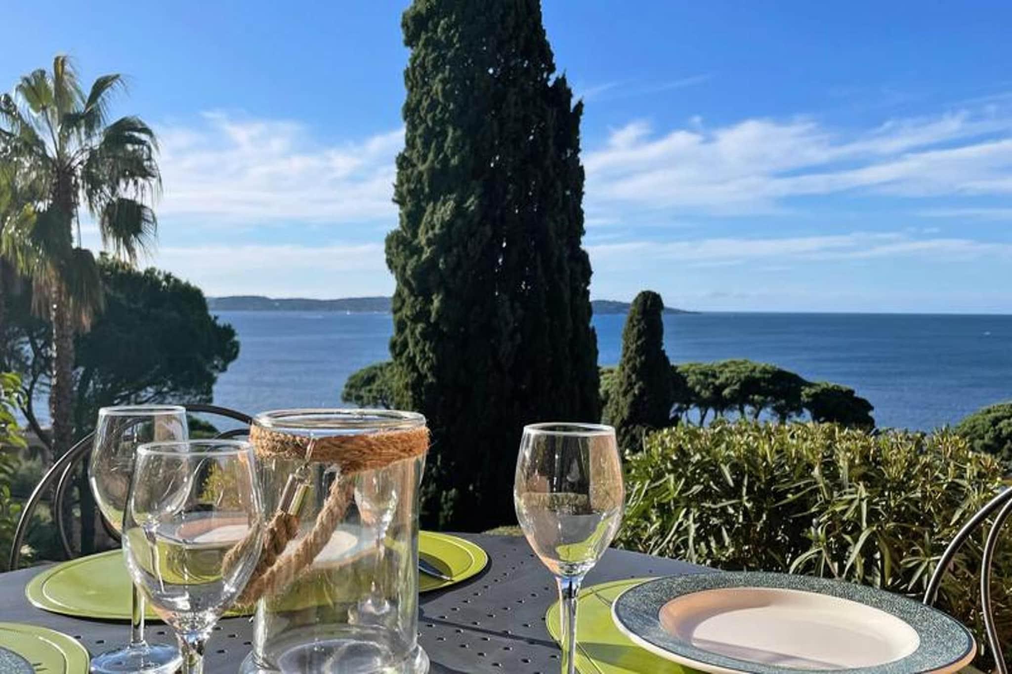 Dieses 30 m² große, klimatisierte Studio im Erdgeschoss bietet Platz für bis zu 3 Personen und bietet den perfekten Rahmen für einen erholsamen Aufenthalt. Der Hauptraum verfügt über zwei umwandelbare Sessel (100 x 190 cm), einen Flachbild-TV, einen Essbereich und Zugang zu einer Terrasse mit außergewöhnlichem Meerblick. Die offene Küche ist gut ausgestattet mit Kühlschrank, Induktionskochfeld, Backofen, Mikrowelle, Geschirrspüler, Filterkaffeemaschine, Tassimo-Maschine, Toaster und diversen Utensilien. Der klimatisierte Schlafbereich verfügt über ein bequemes Doppelbett (140x200 cm) für eine erholsame Nacht. Ein Highlight ist die Terrasse des Studios, die einen atemberaubenden Blick auf das Meer bietet und mit einem Tisch, zwei Sonnenliegen und einer Gasplancha ausgestattet ist, was sie zu einem idealen Ort zum Entspannen macht. Das Badezimmer verfügt über eine Badewanne, ein Waschbecken und ein WC. Der Zugang zum Apartment erfolgt über eine Treppe und eine Standseilbahn ermöglicht einen einfachen Zugang zum Grundstück. Für ein Fahrzeug steht ein privater Parkplatz zur Verfügung und die Gäste haben freien Zugang zum Gemeinschaftsschwimmbad (von Oktober bis Mai geschlossen). In den wärmeren Monaten (Mai bis Oktober) gibt es einen privaten Zugang zum Strand von Madrague, der nur einen kurzen Spaziergang entfernt liegt. Die Wohnung liegt 1,5 km vom Stadtzentrum und 650 m vom Strand entfernt, Geschäfte sind ebenfalls zu Fuß erreichbar. WLAN ist verfügbar und Haustiere sind auf Anfrage (gegen Aufpreis) erlaubt. Das Anwesen ist ideal für diejenigen, die die Gegend zu Fuß erkunden oder am Meer entspannen möchten. Es fallen eine Reinigungsgebühr, eine Kurtaxe und eine Kaution an. Bettwäsche und Handtücher können auf Anfrage ausgeliehen werden.