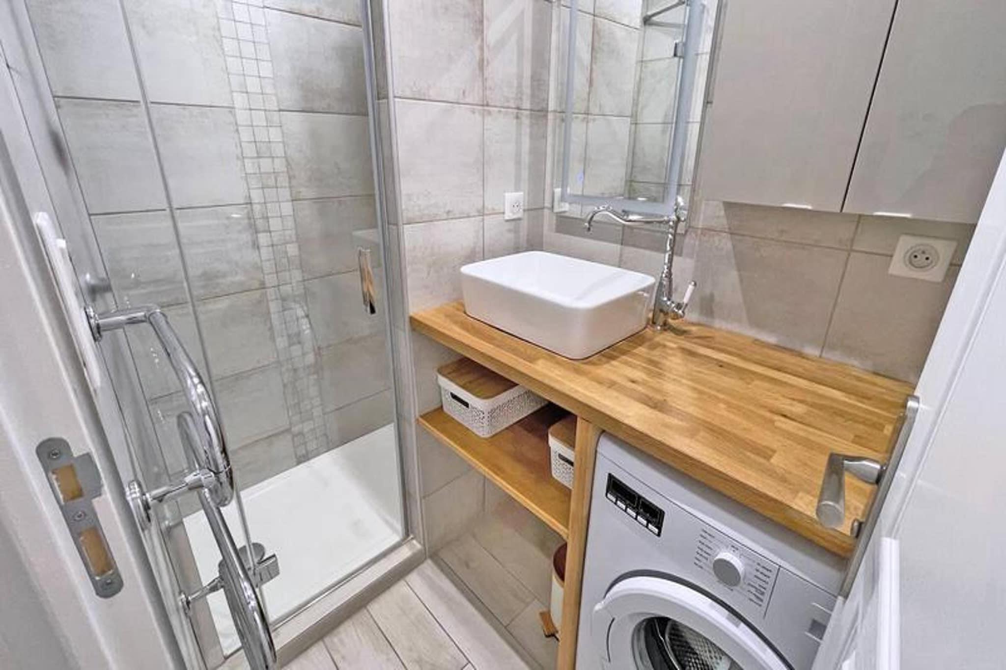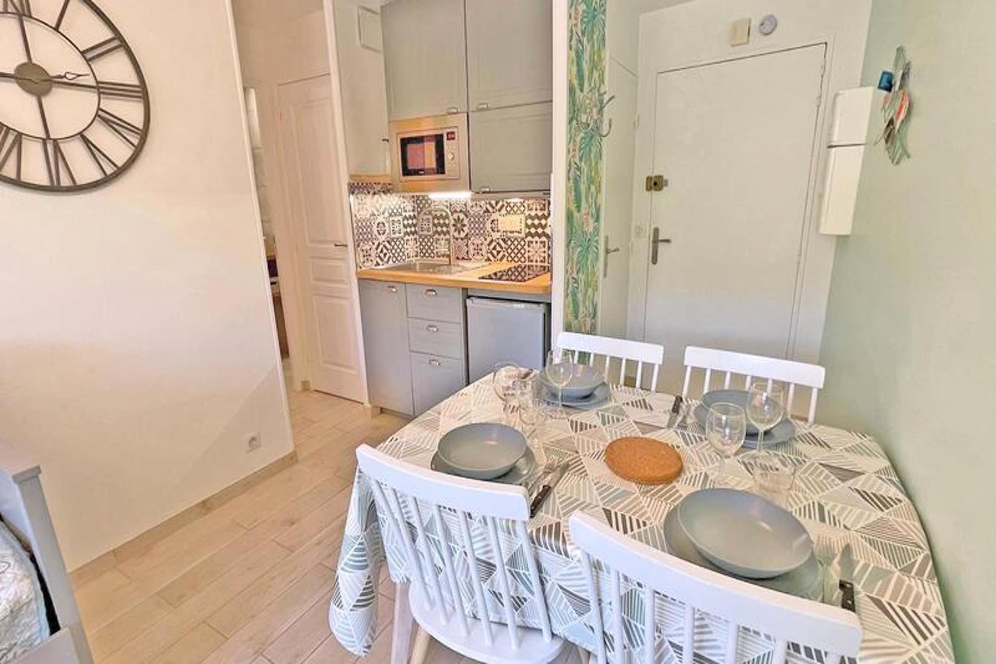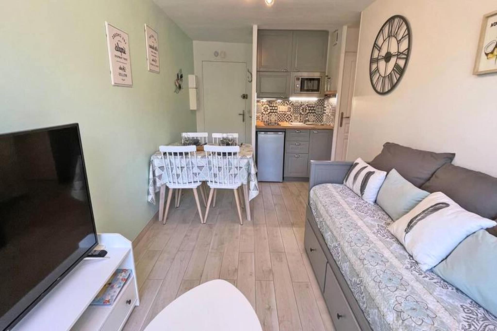 Dieses gemütliche 27m² große Apartment im 1. Stock der Résidence Golfe Bleu ist ideal für bis zu drei Gäste. Es verfügt über ein Wohnzimmer mit einer klimatisierten Sitzecke, einem ausziehbaren Schlafsofa (80 cm), einem TV und einem Esstisch mit Zugang zum Balkon. Die Küchenzeile ist mit einem Mini-Backofen, einer Mikrowelle, einem 2-Flammen-Induktionskochfeld, einer Tassimo-Kaffeemaschine und einem kleinen Kühlschrank mit Gefrierfach ausgestattet. Das Schlafzimmer verfügt über ein 140 cm breites Doppelbett, Stauraum, Klimaanlage und einen Fernseher. Das Apartment verfügt außerdem über ein Badezimmer mit Dusche und Waschmaschine sowie ein separates WC. Der 3 m² große Balkon eignet sich perfekt zum Genießen von Mahlzeiten im Freien und in der Residenz ist ein privater Parkplatz vorhanden, allerdings kann die Zufahrt durch einen Tunnel für große Fahrzeuge eng sein. Die Lage im Stadtzentrum ist nur 400 m vom Strand und 200 m von den Geschäften entfernt, was es zu einer ausgezeichneten Wahl für Erkundungstouren zu Fuß macht. Das Apartment verfügt über Klimaanlage und WLAN, Haustiere sind jedoch nicht gestattet. Zu den weiteren Annehmlichkeiten gehören sichere Parkplätze, wesentliche Kücheneinrichtungen und die Nähe zu lokalen Sehenswürdigkeiten. Dieses Apartment ist ideal für einen erholsamen Urlaub und vereint Komfort und Zweckmäßigkeit im Herzen von Sainte-Maxime.