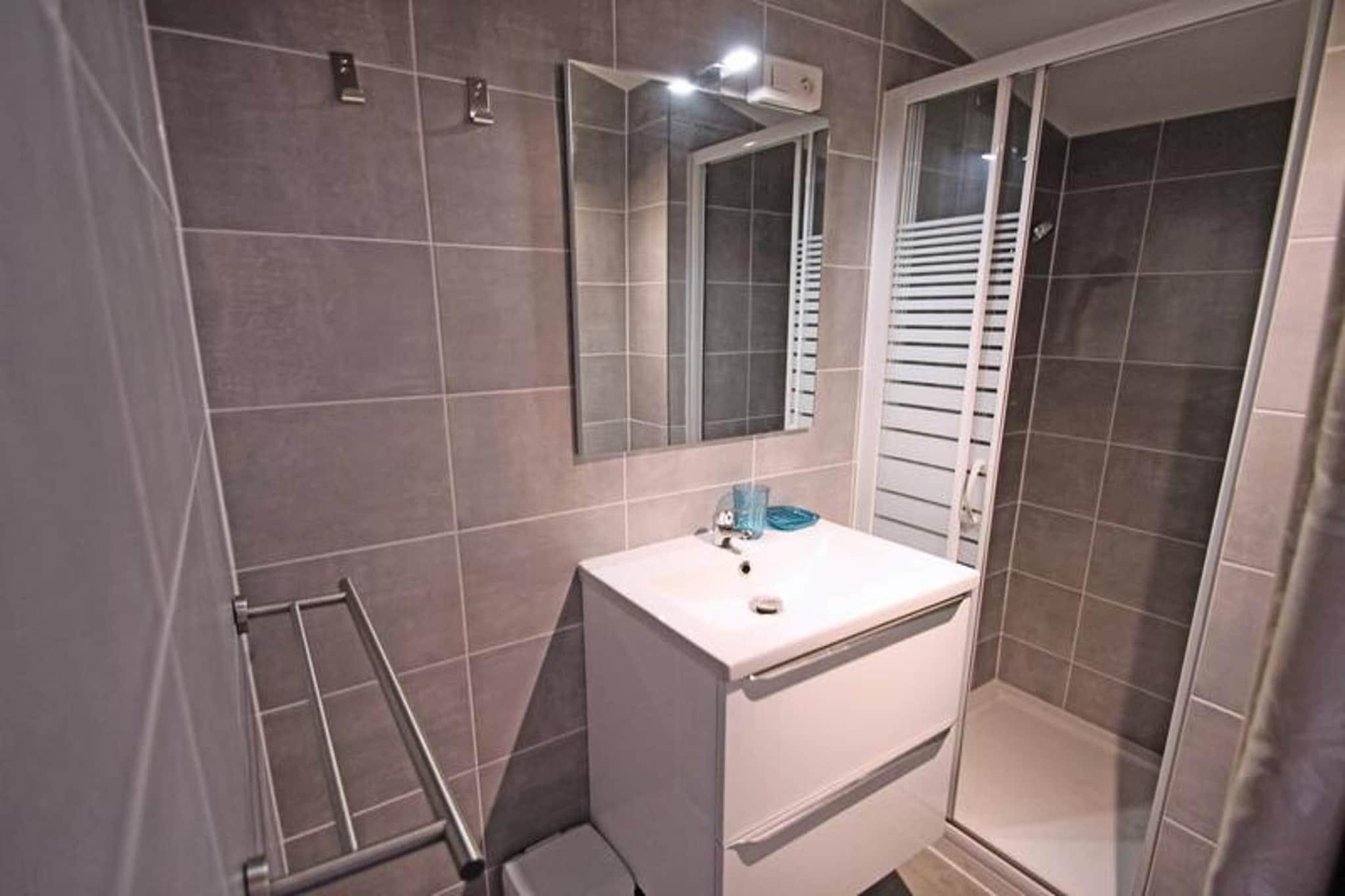 Dieses charmante Apartment mit 3 Schlafzimmern bietet Platz für bis zu 6 Gäste. Es verfügt über zwei klimatisierte Schlafzimmer, eines mit einem Doppelbett und herrlichem Meerblick und das zweite mit entweder zwei Einzelbetten oder einem Doppelbett, ebenfalls mit Meerblick. Das dritte Schlafzimmer befindet sich im Zwischengeschoss und bietet zusätzlichen Schlafplatz. Das Apartment verfügt über eine gut ausgestattete Küche, ein gemütliches Wohnzimmer mit TV und eine großzügige 8 m² große Terrasse mit Meerblick. Haustiere sind nicht erlaubt und WLAN ist im gesamten Apartment verfügbar. Das Apartment genießt eine erstklassige Lage, nur 100 Meter vom Strand entfernt, mit direktem Zugang von Mai bis Oktober. Das Stadtzentrum ist 1,2 km entfernt und bietet eine Vielzahl von Geschäften, Cafés und Restaurants. Auf dem nahegelegenen Markt, nur 1 km vom Apartment entfernt, können Sie lokale Produkte und Spezialitäten erkunden. Die Residenz verfügt außerdem über einen Gemeinschaftspool, der von Mai bis Oktober geöffnet ist und den Gästen während ihres Aufenthalts zur Verfügung steht. Die Wohnung verfügt über zwei moderne Duschräume, von denen einer über eine ebenerdige Dusche, ein Waschbecken und ein WC verfügt, wobei ein zusätzliches separates WC für den Komfort sorgt. Die voll ausgestattete Küche verfügt über einen Kühl-/Gefrierschrank, ein Cerankochfeld, eine Kaffeemaschine, einen Wasserkocher, einen Backofen, eine Mikrowelle, einen Toaster und einen Geschirrspüler. Darüber hinaus verfügt das Apartment über private Parkplätze und eine Klimaanlage für zusätzlichen Komfort.