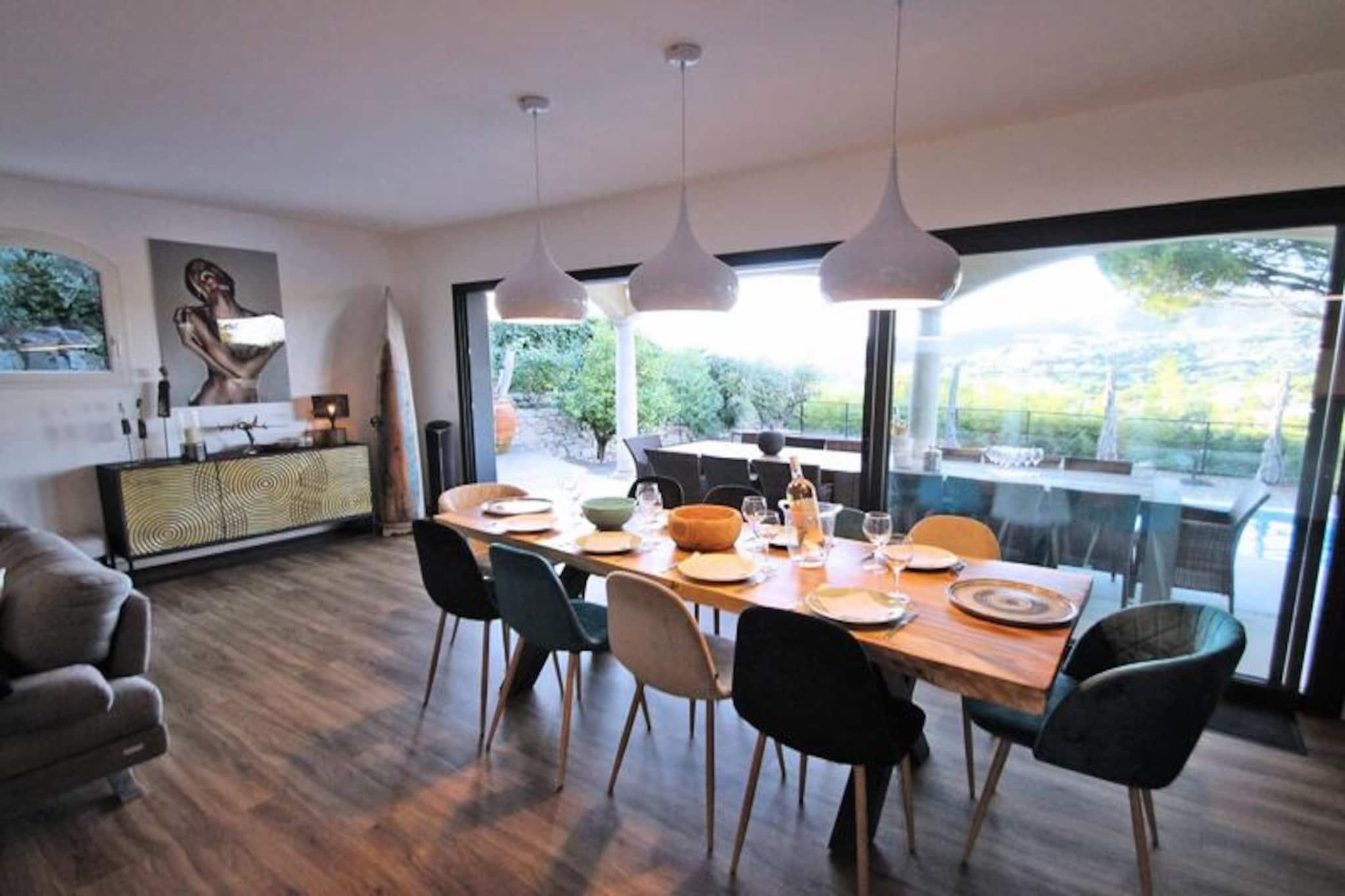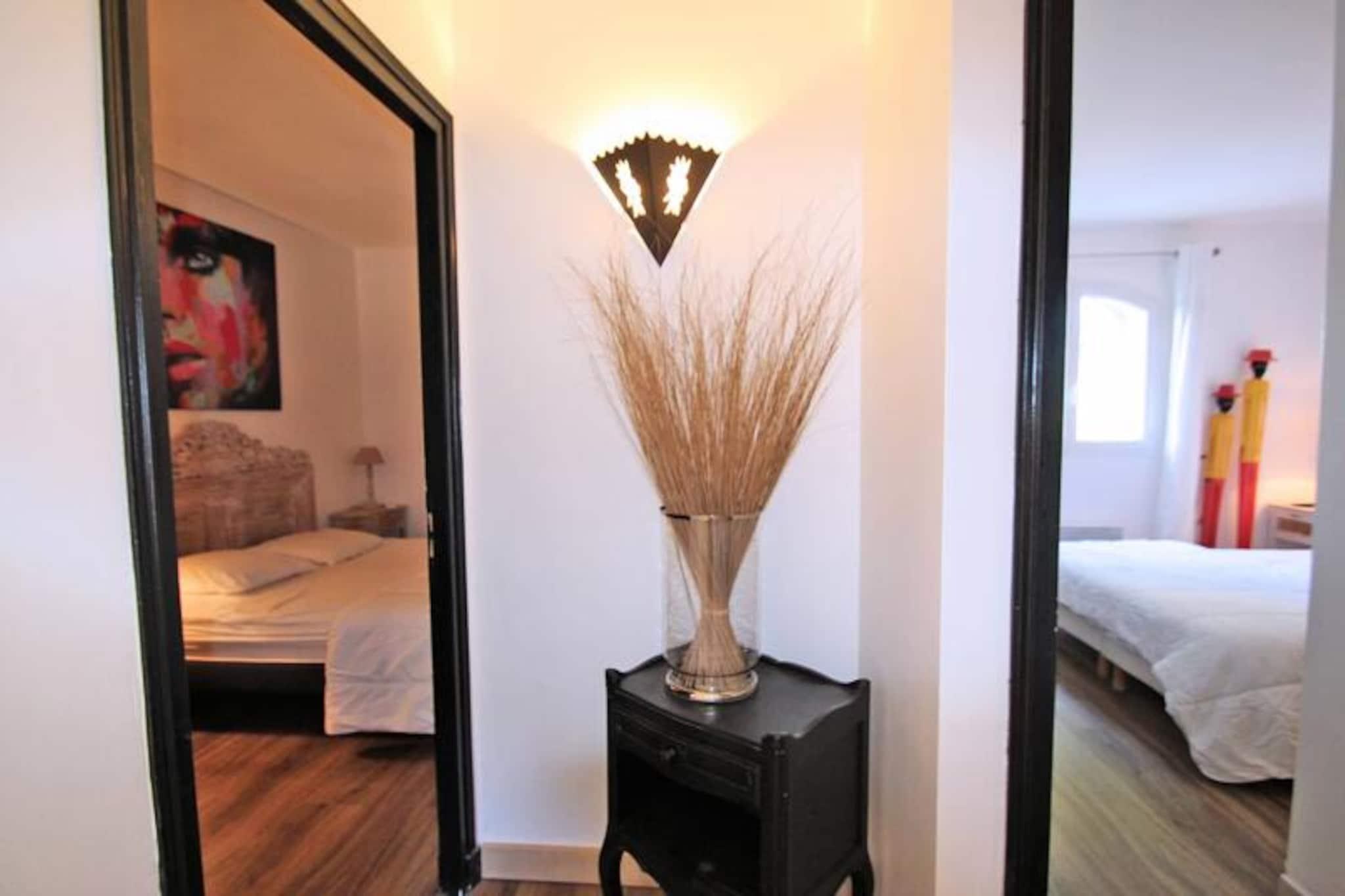 Diese geräumige Villa mit 4 Schlafzimmern bietet einen luxuriösen Aufenthalt für bis zu 8 Personen mit schicker und eleganter Einrichtung. Die klimatisierten Schlafzimmer verfügen über Doppelbetten, Fernseher und ausreichend Stauraum. Die Villa verfügt außerdem über einen hellen Wohnbereich mit zwei Sofas, einem großen Fernsehbildschirm und einem Bluetooth-Lautsprecher sowie einen Essbereich für 8 Personen. Die voll ausgestattete amerikanische Küche verfügt über moderne Geräte wie Kühlschrank, Gefrierschrank, Backofen, Mikrowelle, und Spülmaschine. Haustiere sind auf Anfrage erlaubt und es gibt einen privaten Parkplatz mit elektrischem Tor. Diese Villa liegt in einer ruhigen Wohngegend, nur 2300 Meter vom Stadtzentrum, 1600 Meter vom Strand und 1100 Meter von den örtlichen Geschäften entfernt. Gäste können nahegelegene Sehenswürdigkeiten und Restaurants genießen, während die ruhige Umgebung einen idealen Rückzugsort bietet. Der mediterrane Garten der Villa bietet schöne Außenbereiche und rund um den Swimmingpool laden verschiedene Sitzbereiche zum Entspannen ein. Das Anwesen umfasst eine gut ausgestattete Küche, zwei Badezimmer mit Duschen und Waschbecken sowie ein separates WC. Die große überdachte Terrasse eignet sich perfekt zum Essen mit Familie und Freunden und verfügt über eine Gasplancha. Der private Swimmingpool mit optionaler Heizung steht von Juni bis September zur Verfügung. Zu den weiteren Annehmlichkeiten gehören WLAN, eine Garage/Waschküche und eine Klimaanlage in der gesamten Villa.