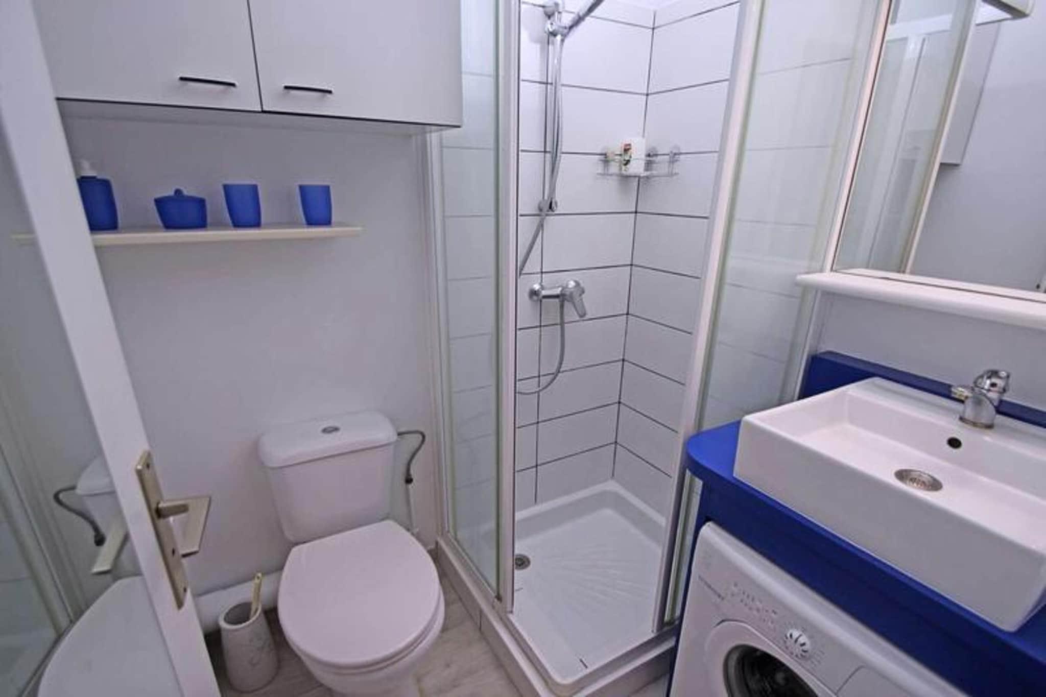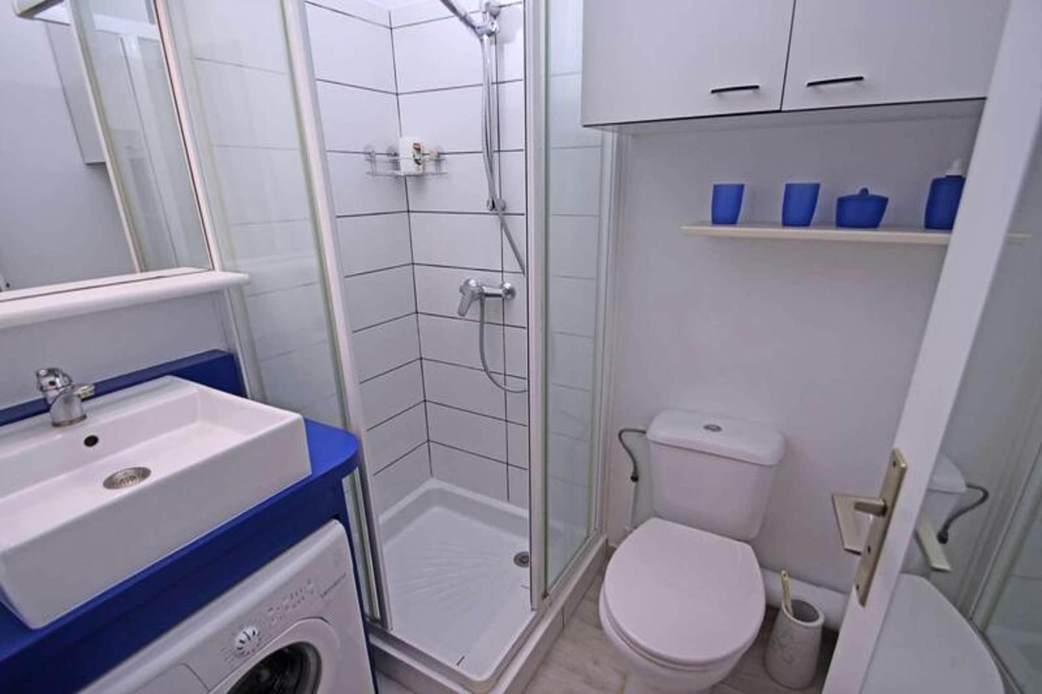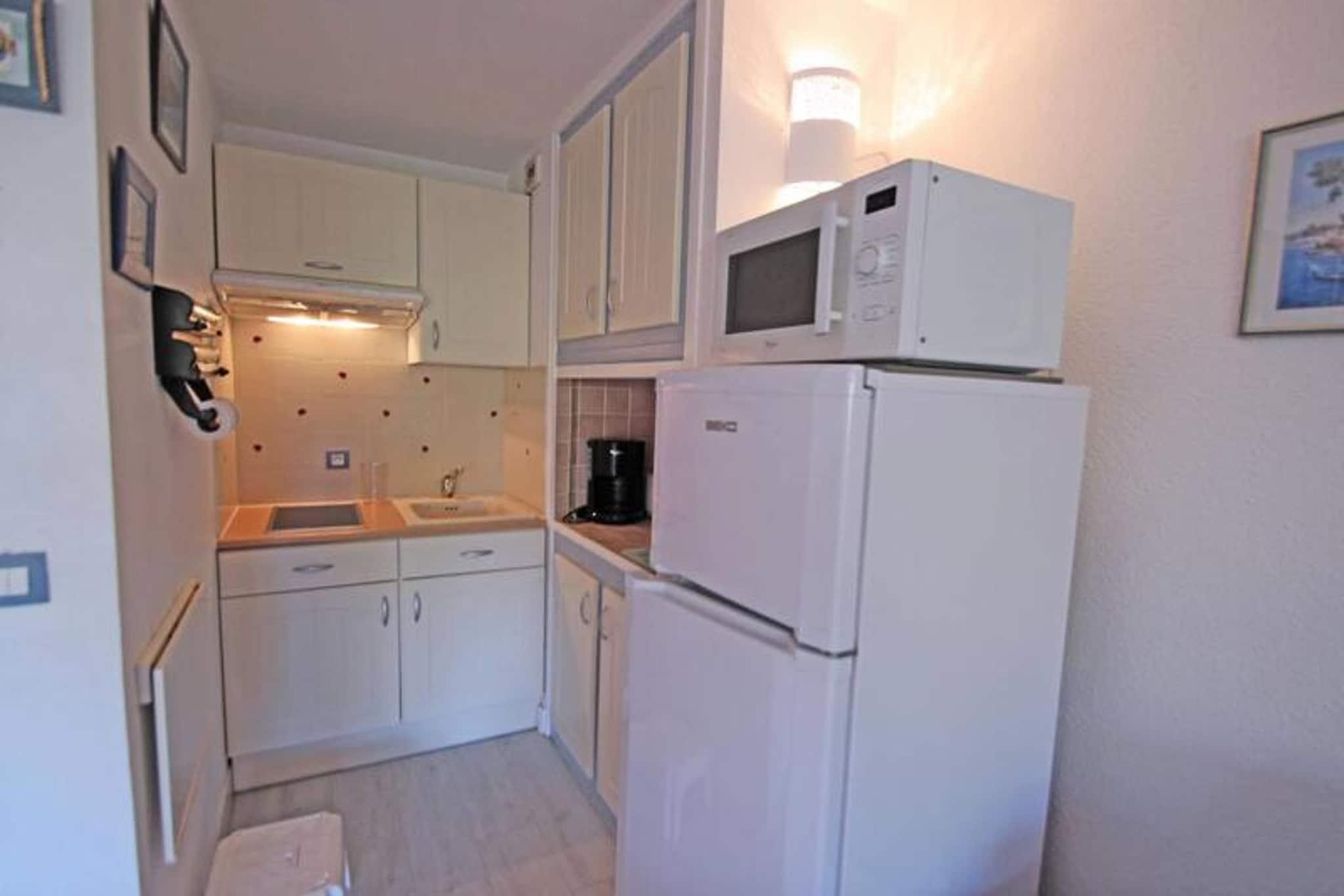 Dieses charmante, 24 m² große Studio bietet Platz für bis zu 3 Personen und bietet hervorragende Annehmlichkeiten für einen komfortablen Aufenthalt. Das Studio verfügt über ein 140 cm großes Schlafsofa im Wohnbereich mit einem Flachbild-TV und viel Stauraum. Die Küchenzeile ist mit einem 2-Flammen-Kochfeld, einem Kühlschrank mit Gefrierfach, einer Mikrowelle, einem Toaster und einer Kaffeemaschine ausgestattet. Zum Studio gehört auch ein Duschbad mit Waschmaschine und WC. Haustiere sind nicht gestattet und private Parkplätze stehen in der sicheren Residenz zur Verfügung. Das Anwesen ist ideal gelegen, nur 600 Meter vom Stadtzentrum, 500 Meter vom Strand und nur 100 Meter von den Geschäften entfernt, was es ideal für die Erkundung zu Fuß macht. Gäste können die Sehenswürdigkeiten und Restaurants in der Nähe bequem zu Fuß erreichen. Das Studio verfügt außerdem über einen Balkon mit Essmöbeln, der einen angenehmen Raum zum Entspannen bietet. Die Residenz bietet Zugang zu einem Gemeinschaftspool (von Oktober bis Mai geschlossen) und ist durch ein elektrisches Tor gesichert. Zu den weiteren Annehmlichkeiten gehören ein privater Parkplatz und grundlegende Dienstleistungen wie Küchentücher, Badezimmerteppich und Einweg-Matratzenschoner.