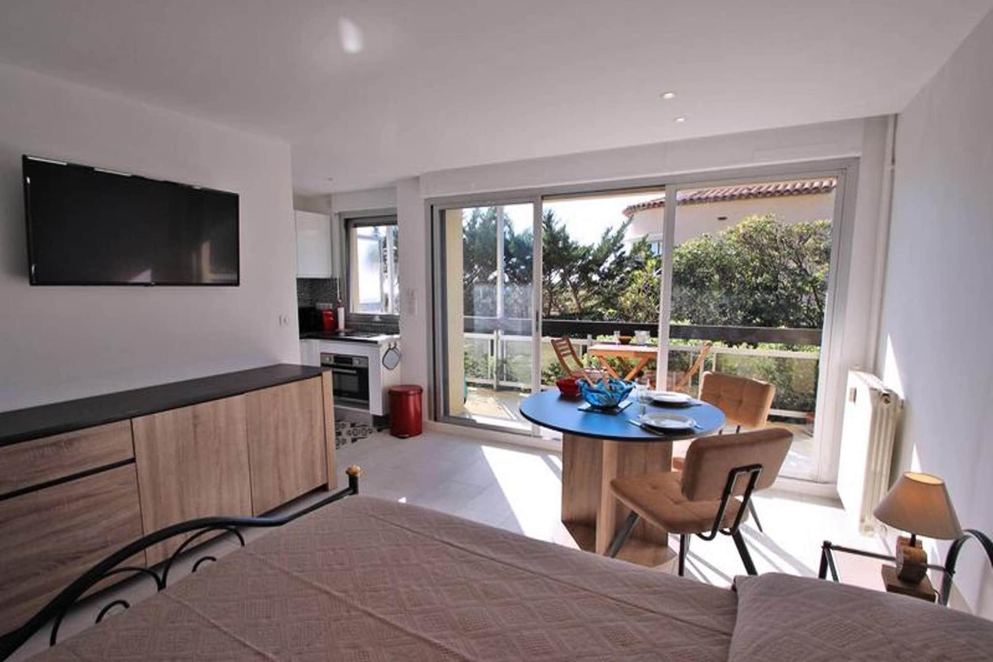 Dieses angenehme, 21 m² große Studio ist für bis zu 2 Personen konzipiert und bietet einen gemütlichen und gut eingerichteten Raum, der sich perfekt für Paare eignet. Das klimatisierte Wohnzimmer verfügt über ein 140 cm breites Doppelbett, einen Essbereich, einen Flachbild-TV und Zugang zu einer Terrasse mit Meerblick. Die offene Küchenzeile ist mit einem 4-Flammen-Induktionskochfeld, Backofen, Nespresso-Maschine, Wasserkocher, Toaster und diversen Küchenutensilien ausgestattet. Das Badezimmer verfügt über eine Dusche, einen Waschtisch und ein WC. Haustiere sind auf Anfrage willkommen und private Parkplätze stehen in der gesicherten Residenz zur Verfügung. Dieses Studio liegt nur 100 Meter vom Stadtzentrum, 20 Meter vom Strand und 50 Meter von den Geschäften entfernt und bietet einen idealen Standort, um die Gegend zu Fuß zu erkunden. Genießen Sie den Komfort nahegelegener Sehenswürdigkeiten, Restaurants und der lebendigen lokalen Szene, die alle zu Fuß erreichbar sind. Zu den weiteren Annehmlichkeiten gehört eine 7 m² große Terrasse mit Essmöbeln und einem Wäscheständer, auf der Sie den Meerblick genießen können. Das Studio bietet außerdem WLAN, Klimaanlage und grundlegende Dienstleistungen wie Küchentücher und Badezimmerteppiche. Die Residenz ist durch ein elektrisches Tor gesichert, sodass Sie während Ihres gesamten Aufenthalts beruhigt sein können.